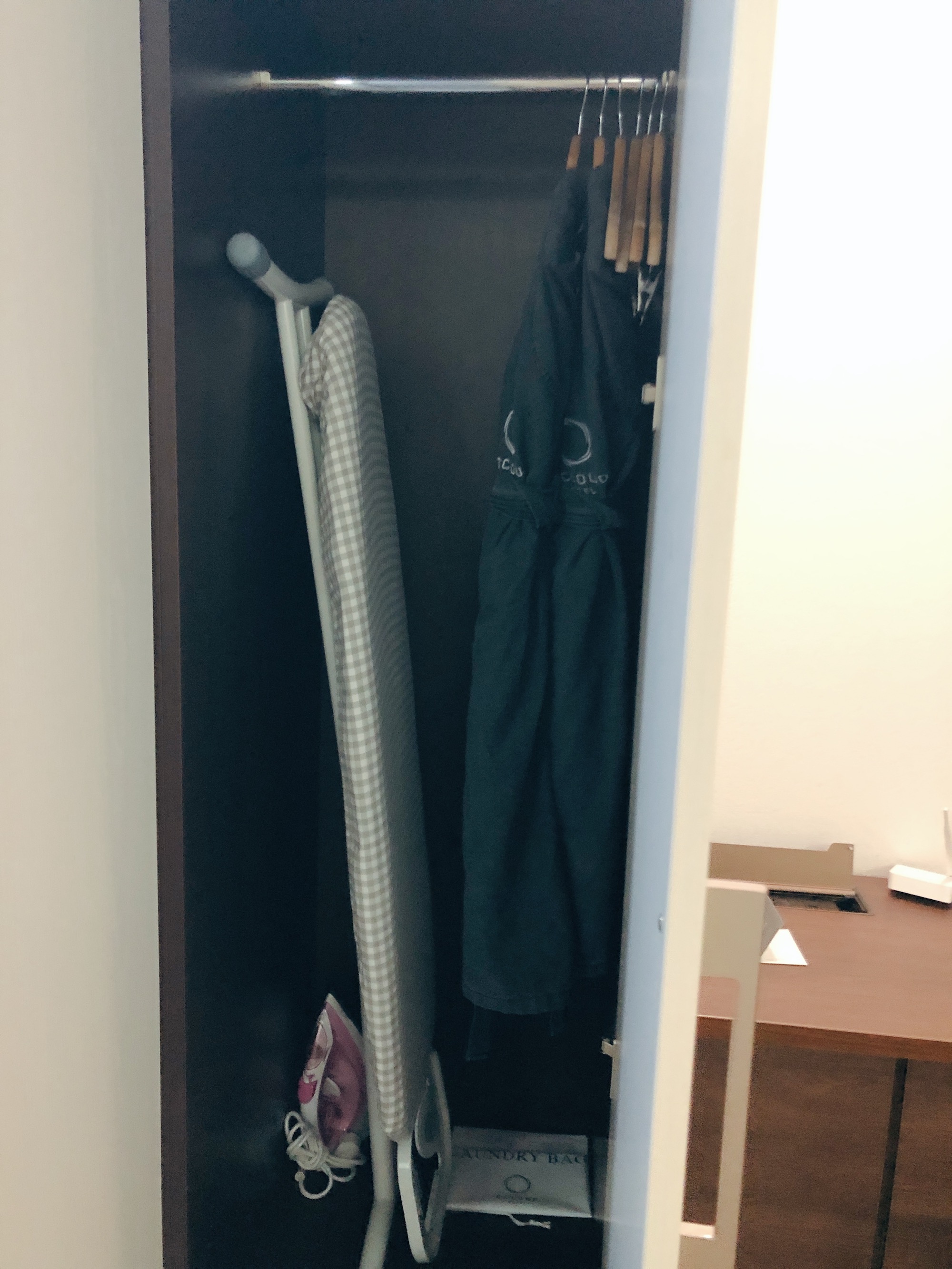 침대 옆으로는 테이블과 의자 한개가 놓여 있다. 42인치 벽걸이 티비도 붙어 있는데 위성티비 58개 채널을 시청할 수 있다고 한다. 우리는 둘다 티비보다는 유튜브 보는 것을 선호하는 편이라 티비는 한번도 켜보지 않았다.