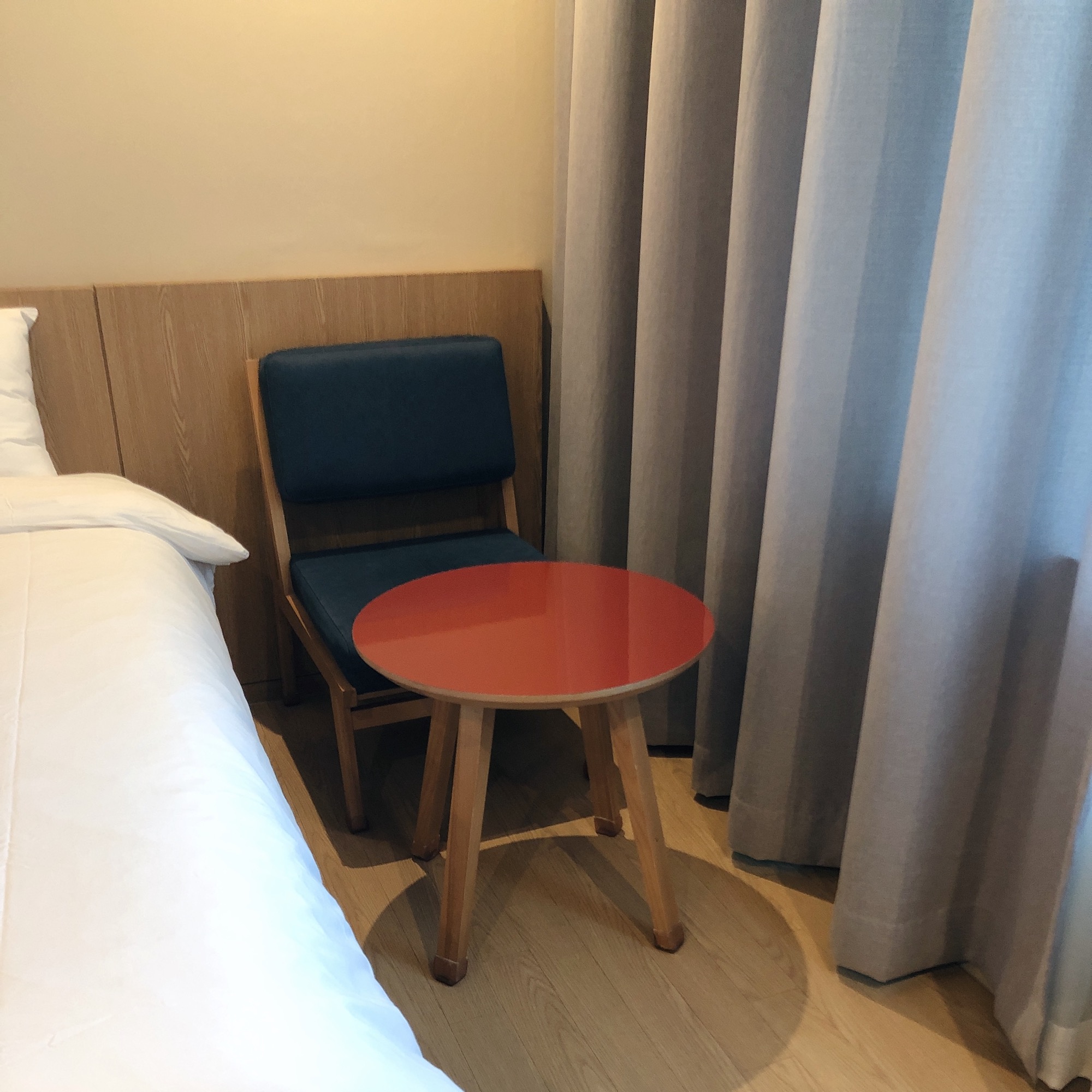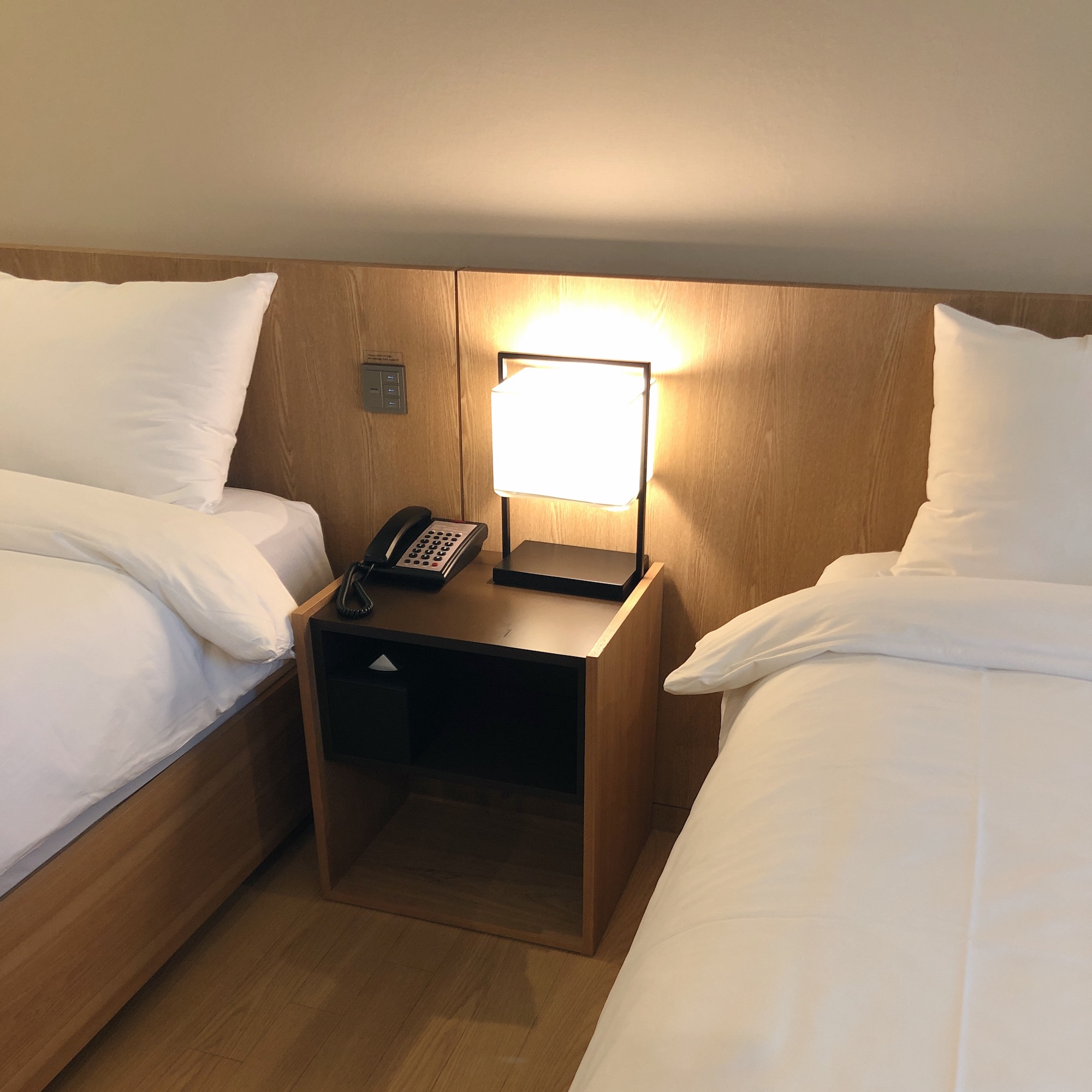 창문 옆으로는 작은 1인용 테이블이 하나 더 마련되어 있으며, 침대 사이에는 전화기와 스탠드가 놓여 있었다.