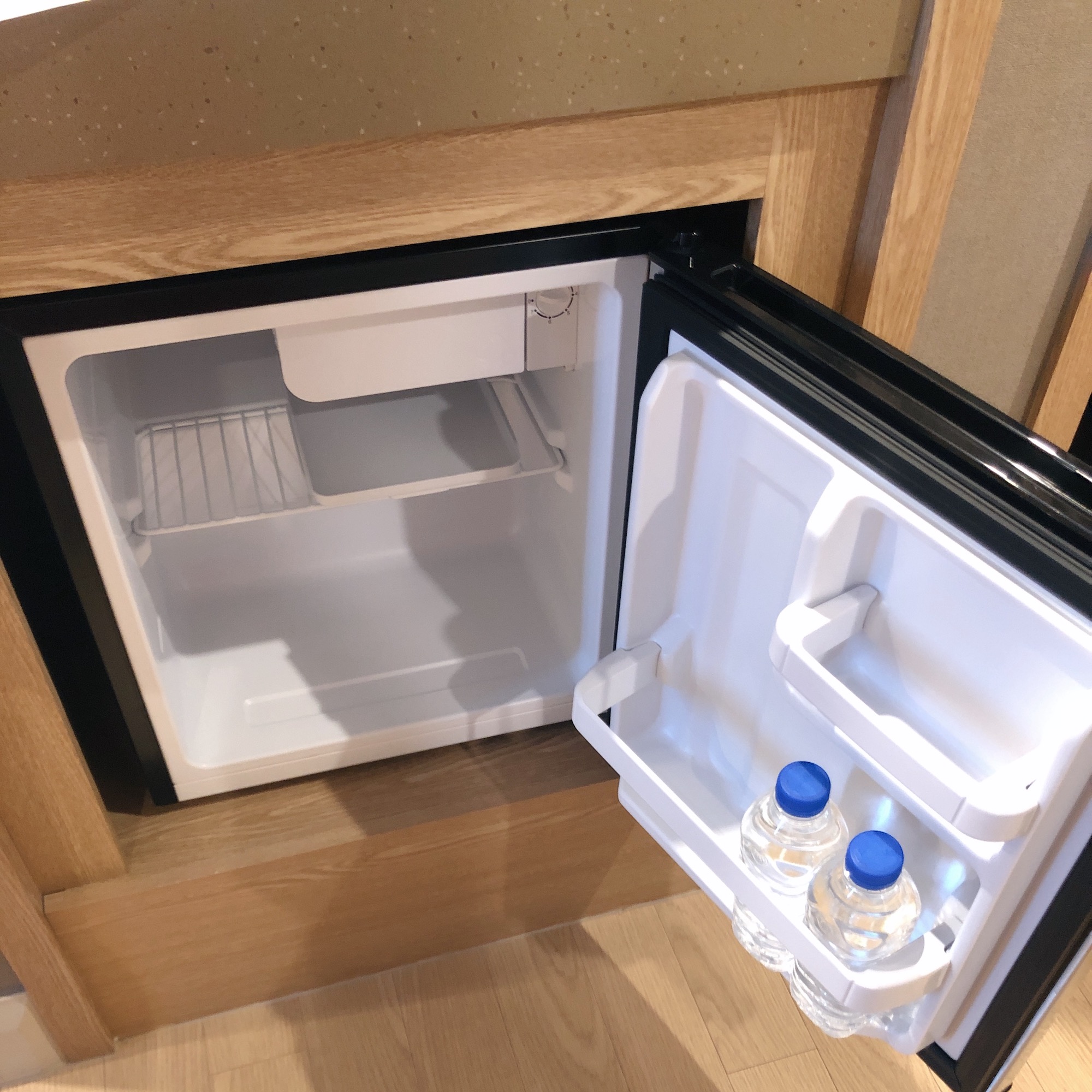 현관문 바로 옆으로는 냉장고, 옷장, 금고 등이 있고, 생수는 4병이 준비되어 있었다. 간단하게 차를 마실 수 있도록 커피포트와 컵, 빨대도 있었다.