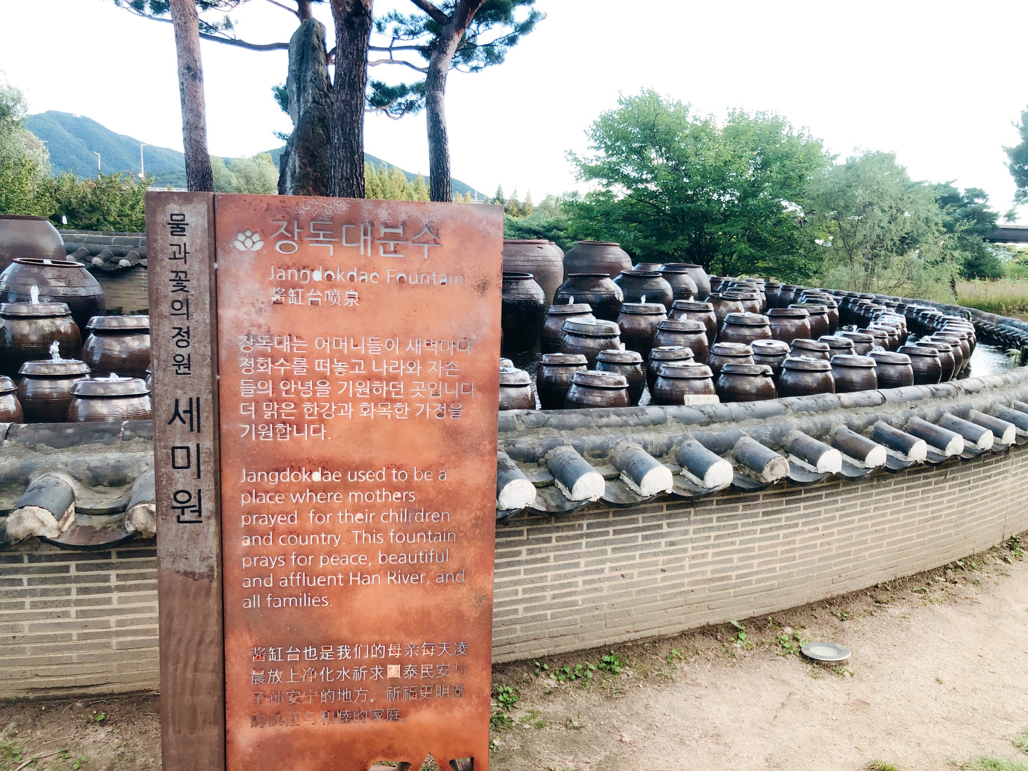 장독대는 어머니들이 새벽마다 정화수를 떠놓고 나라와 자손들의 안녕을 기원하던 곳이라고 한다. (정말...?) 더 맑은 한강과 화목한 가정을 기원하는 의미로 장독대 분수를 만들었나 보다.