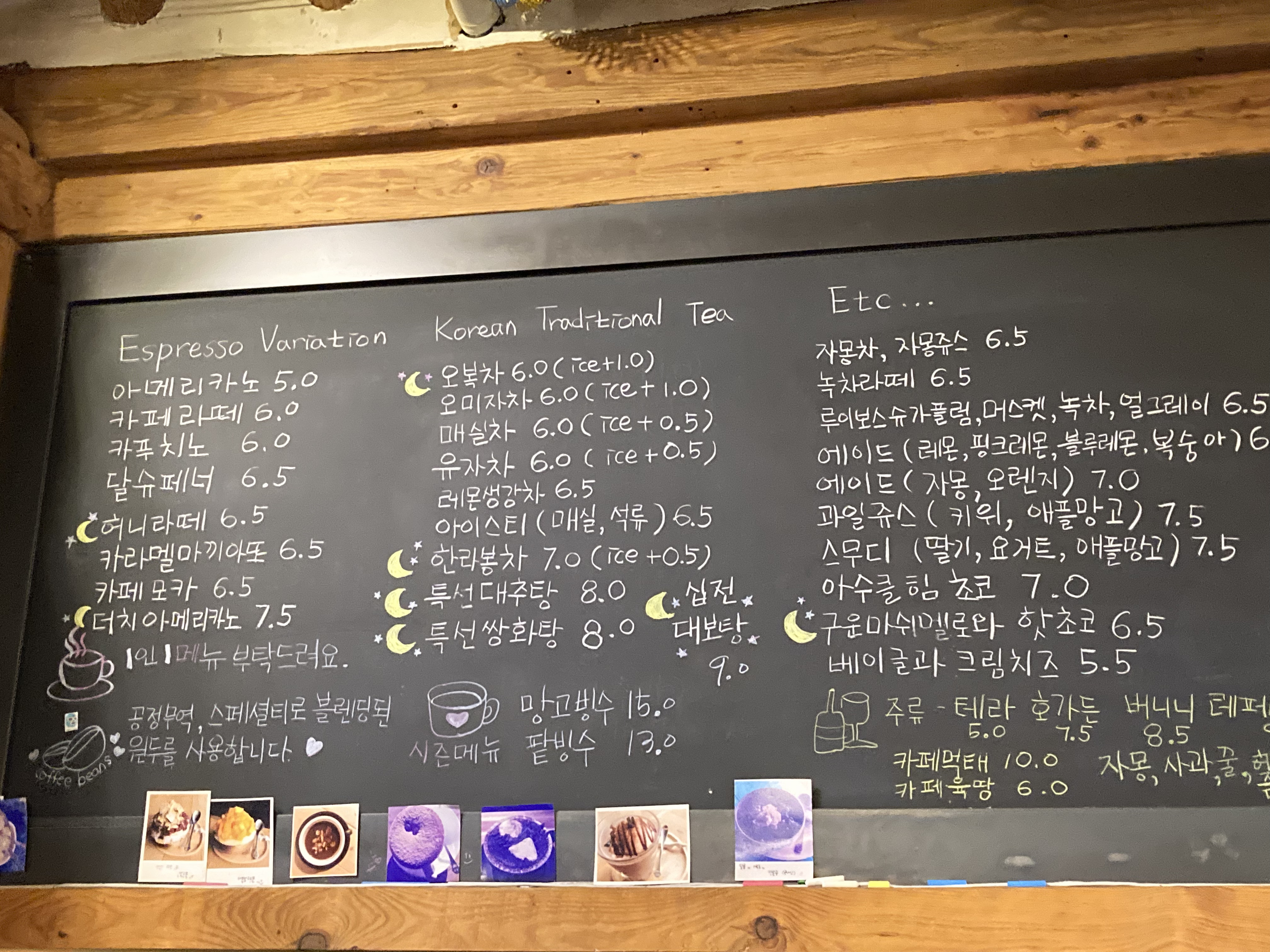 달스토리에는 아메리카노부터 스무디, 에이드까지 일반 카페에서 맛볼 수 있는 기본 음료들과 오복차, 오미자차, 매실차, 유자차, 레몬생강차 등 다양한 전통차 메뉴가 준비되어 있었다. 고민하다가 나는 특선쌍화탕, 그는 십전대보탕을 주문했다.