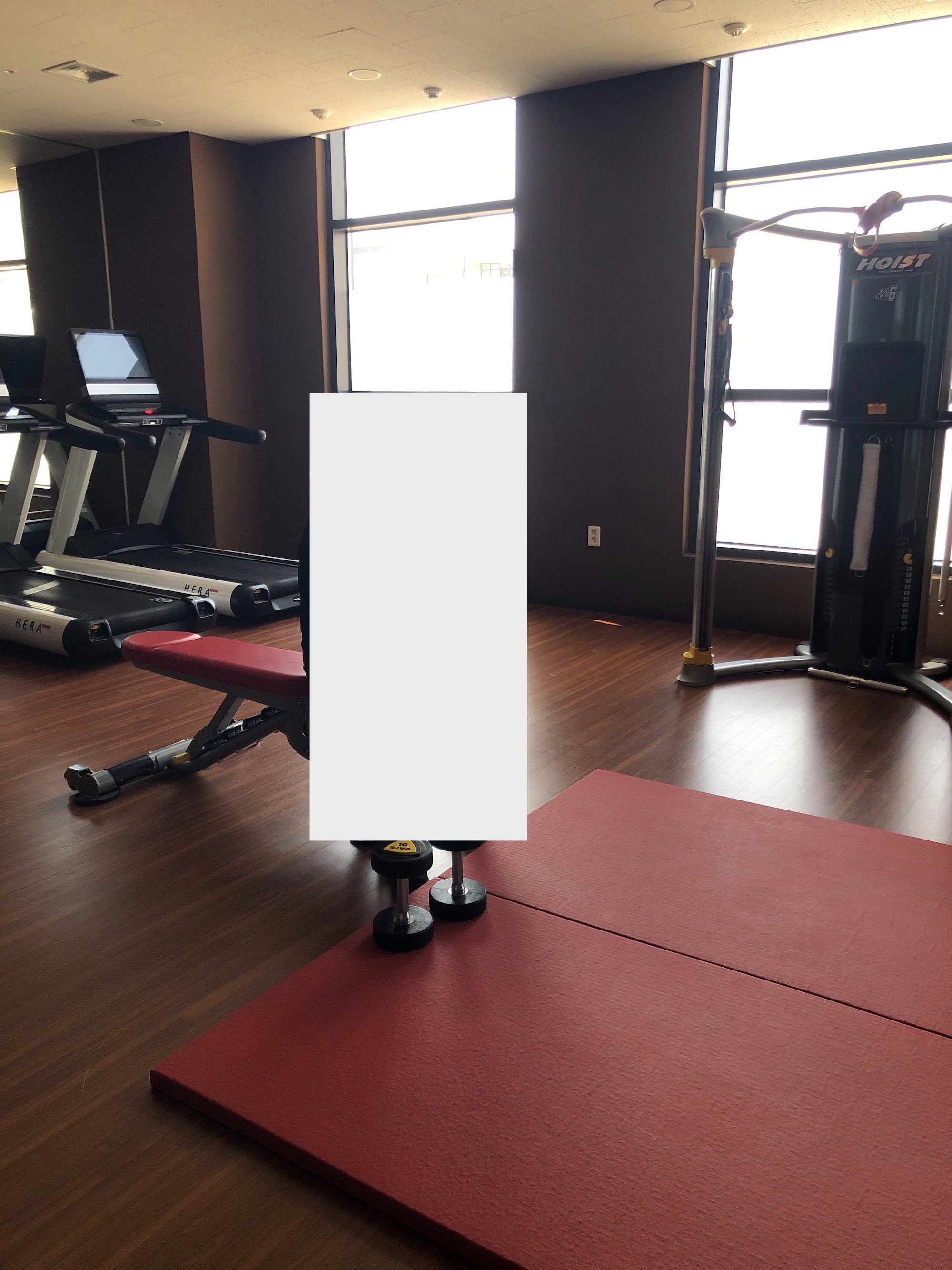 그는 열심히 운동하고 나는 열심히 사진 찍고... 양쪽에 전면 거울이 있어서 운동 자세를 체크할 수 있다는 점이 마음에 들었다. 피트니트센터에서 30분 정도 시간을 보내고 나서, 이제는 조식을 먹으러 갈 시간!