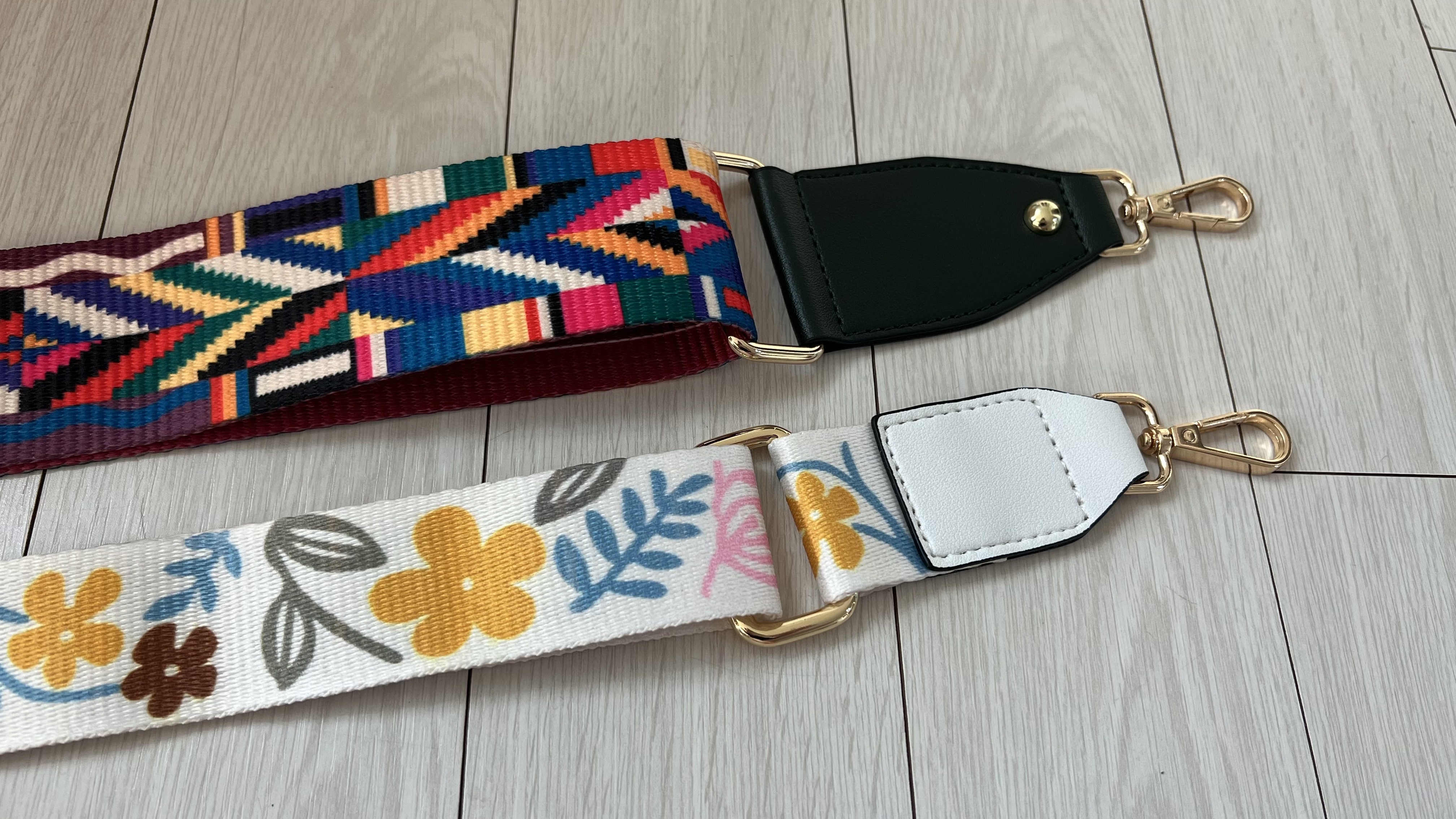 초록색 레디백에는 좀 더 진한 톤의 화려한 디자인(에스닉 그린)을, 핑크색 레디백에는 밝고 부드러운 색상의 디자인(빈티지 화이트)을 선택했다. 소재는 나일론과 가죽이 사용되었고, 끈길이를 조정할 수 있다. 구입할 때 고려했던 부분인 스트랩 두께도 4~5cm 정도로 마음에 든다.