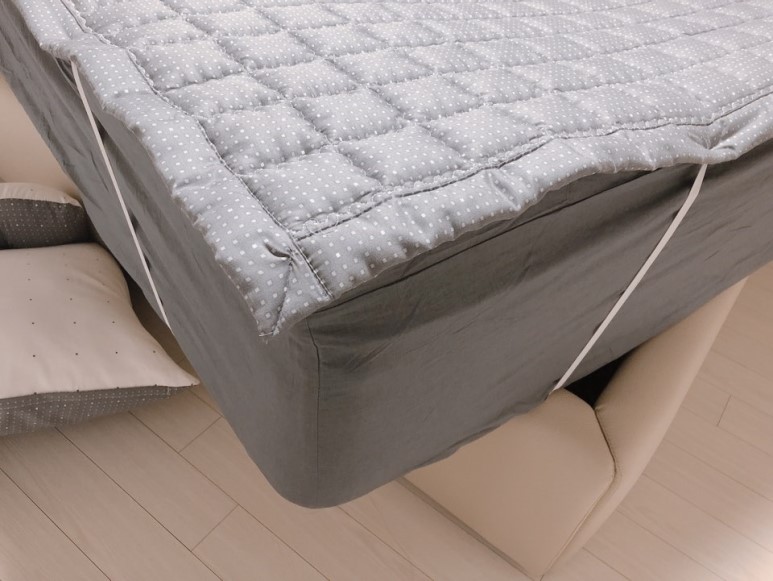 바느질을 마치고 나서 위 사진처럼 침대 매트리스에 끼워주면 된다. 확실히 예전보다 단단하게 고정되어, 자고 일어나도 매트가 밀리지 않을 것 같았다.
