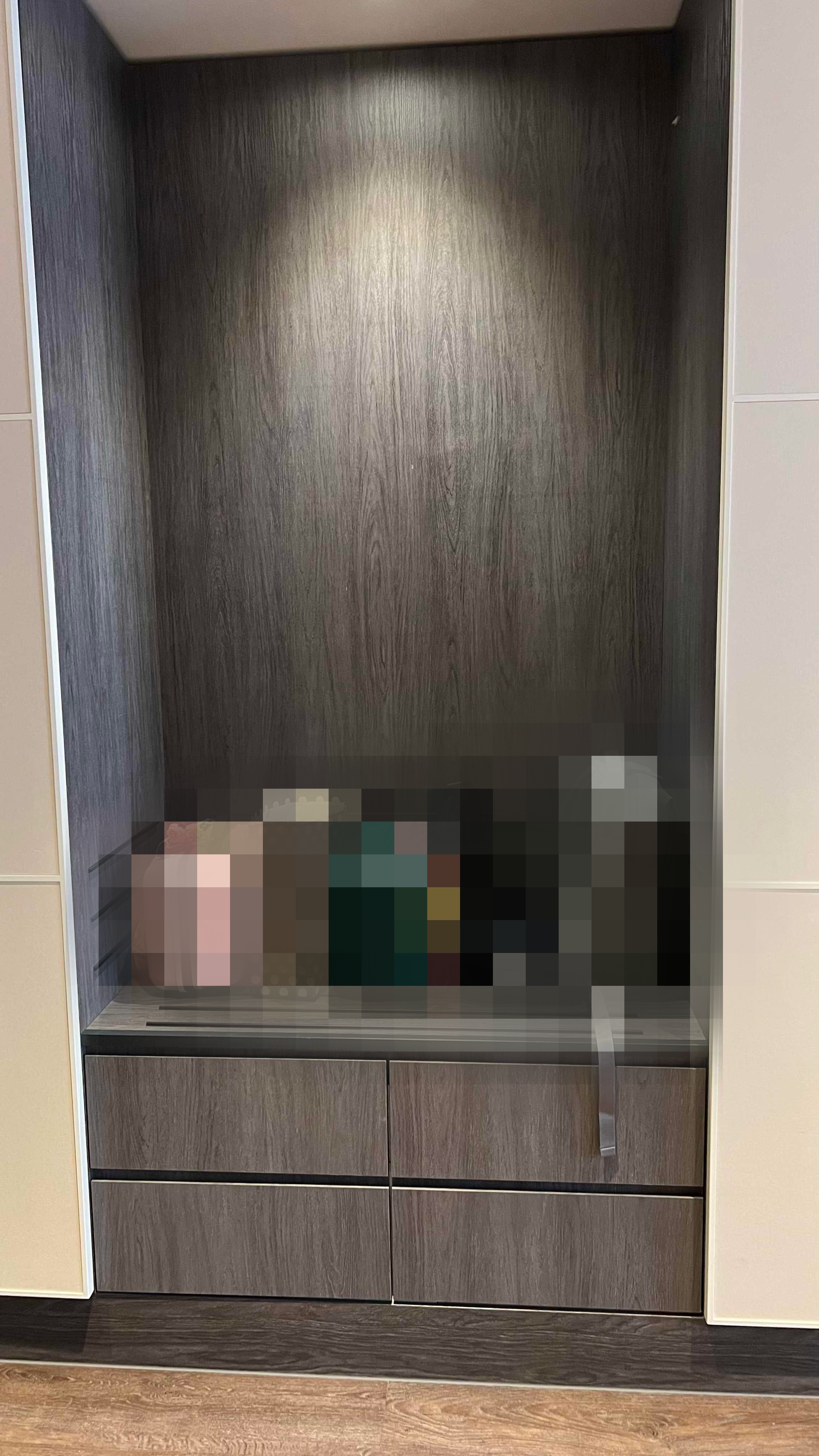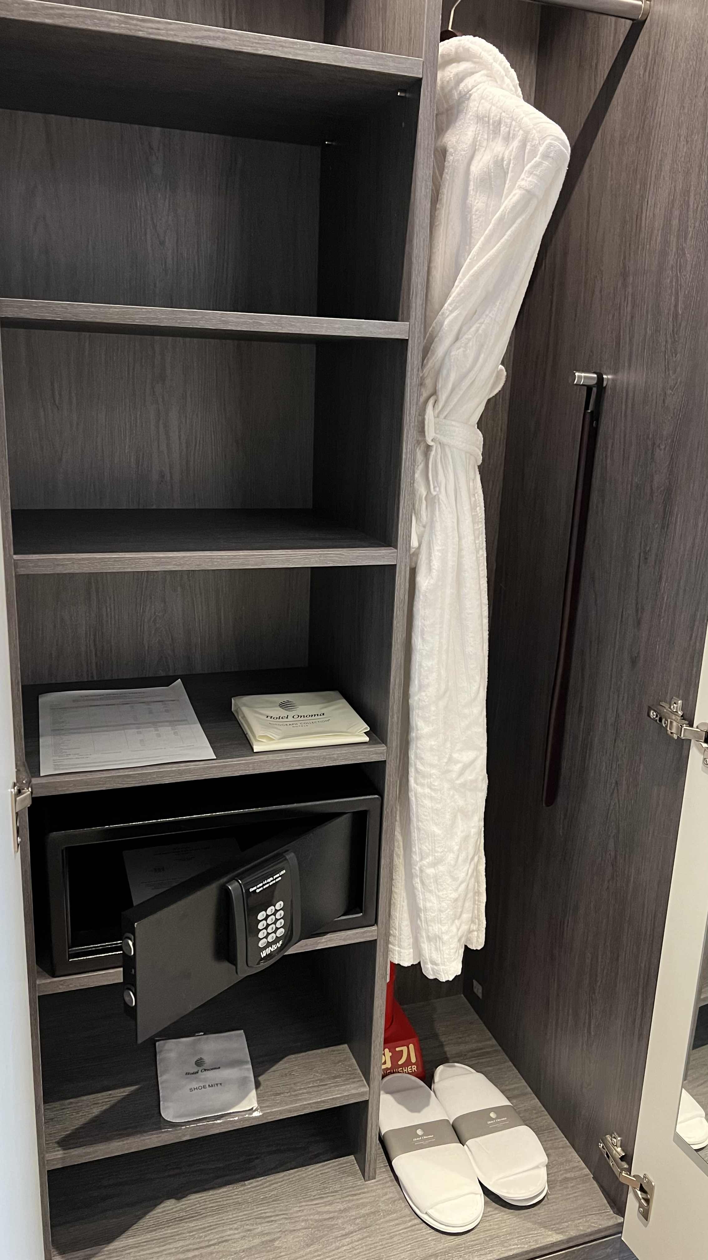 입구 쪽으로는 옷장, 금고, 캐리어를 놓을 수 있는 공간이 있다.