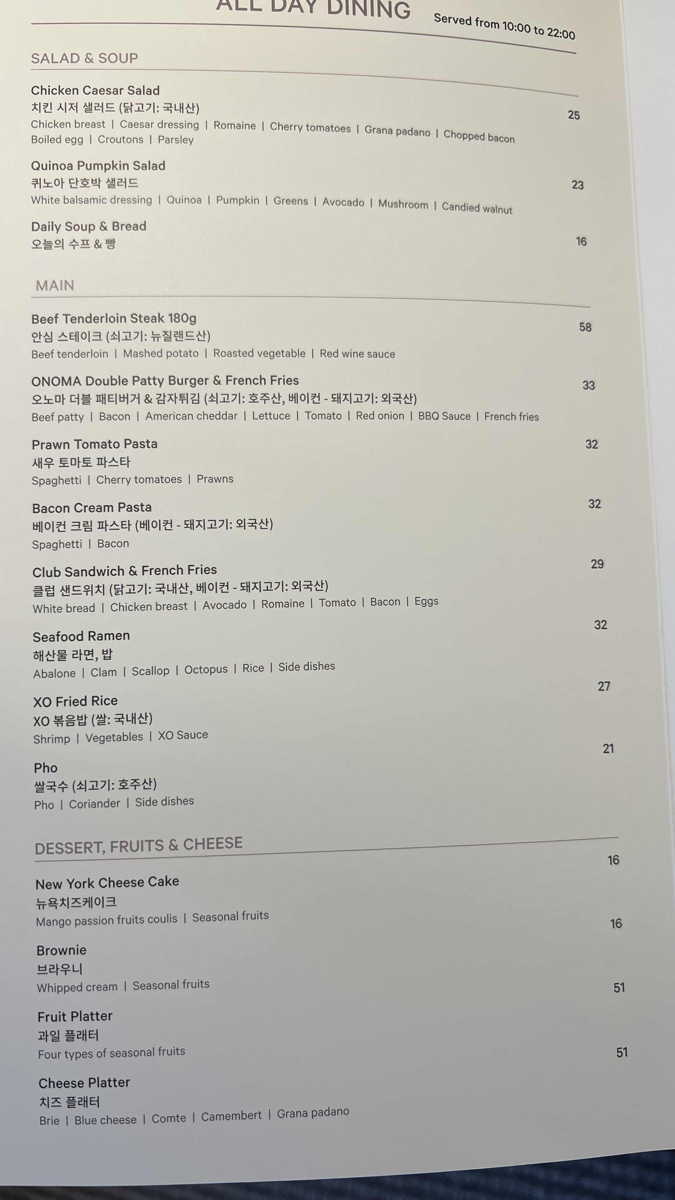 - 인룸다이닝 : 06:30 ~ 22:00(마지막 주문은 22:00)