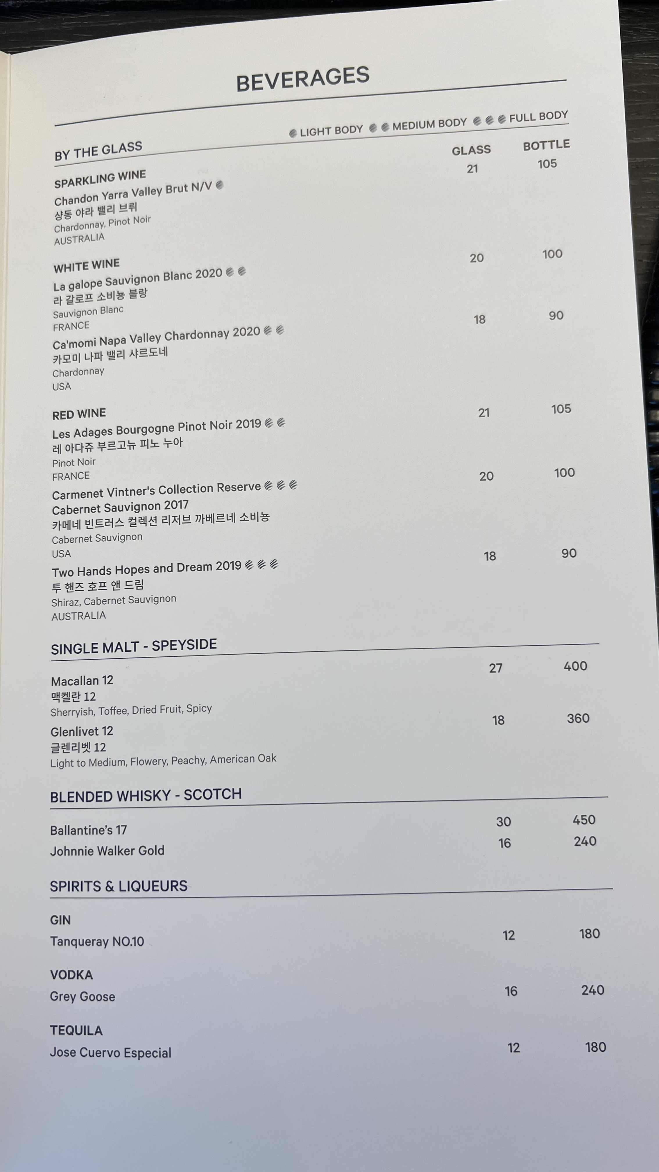석식 18:00 ~ 21:00(98,000원) - 타운하우스 바(7F) : 18:00 ~ 23:00