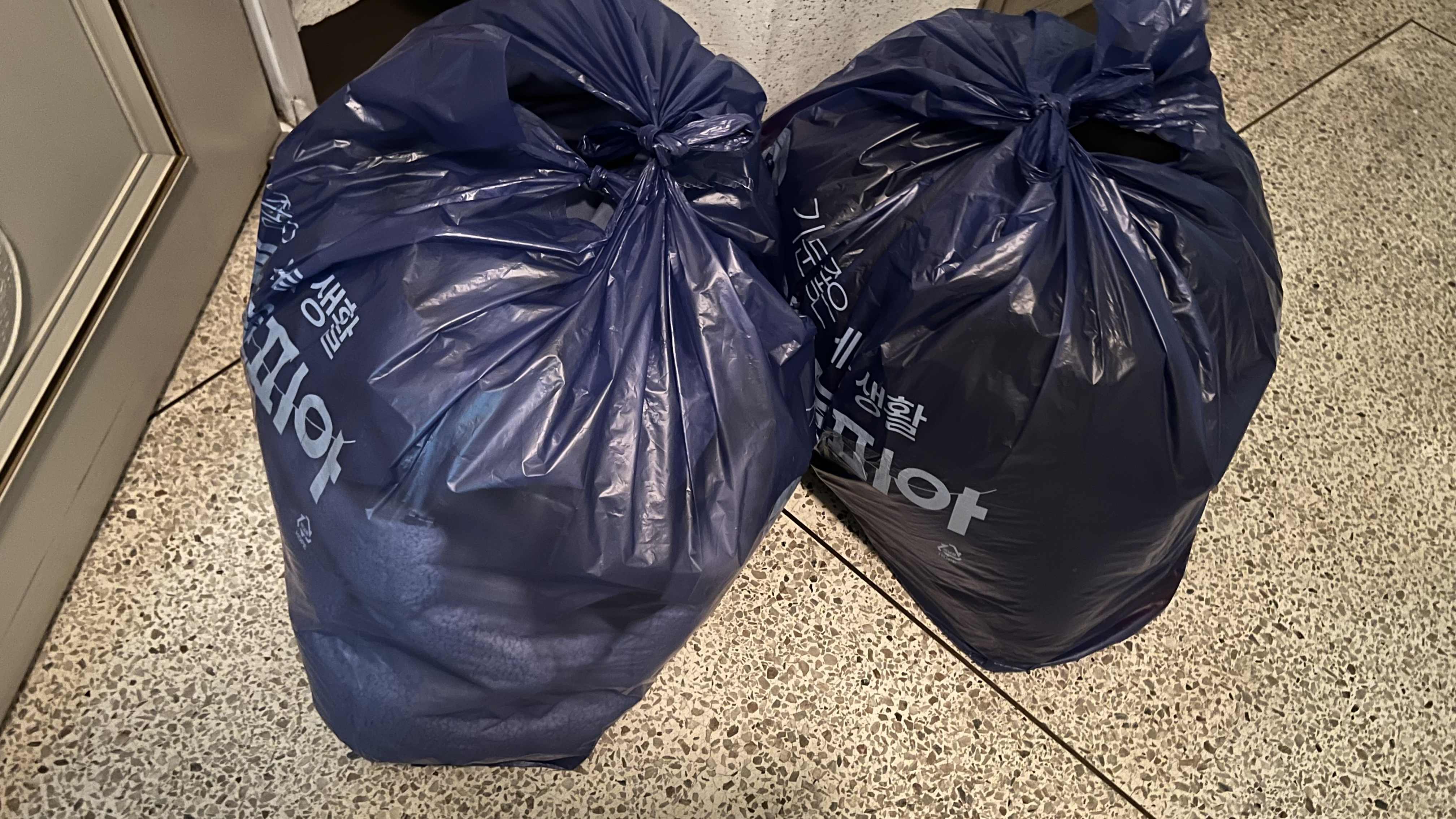 커다란 비닐봉지에 패딩을 넣어서 현관문 앞에 두었다. (왠지 쓰레기 비주얼...OTL)