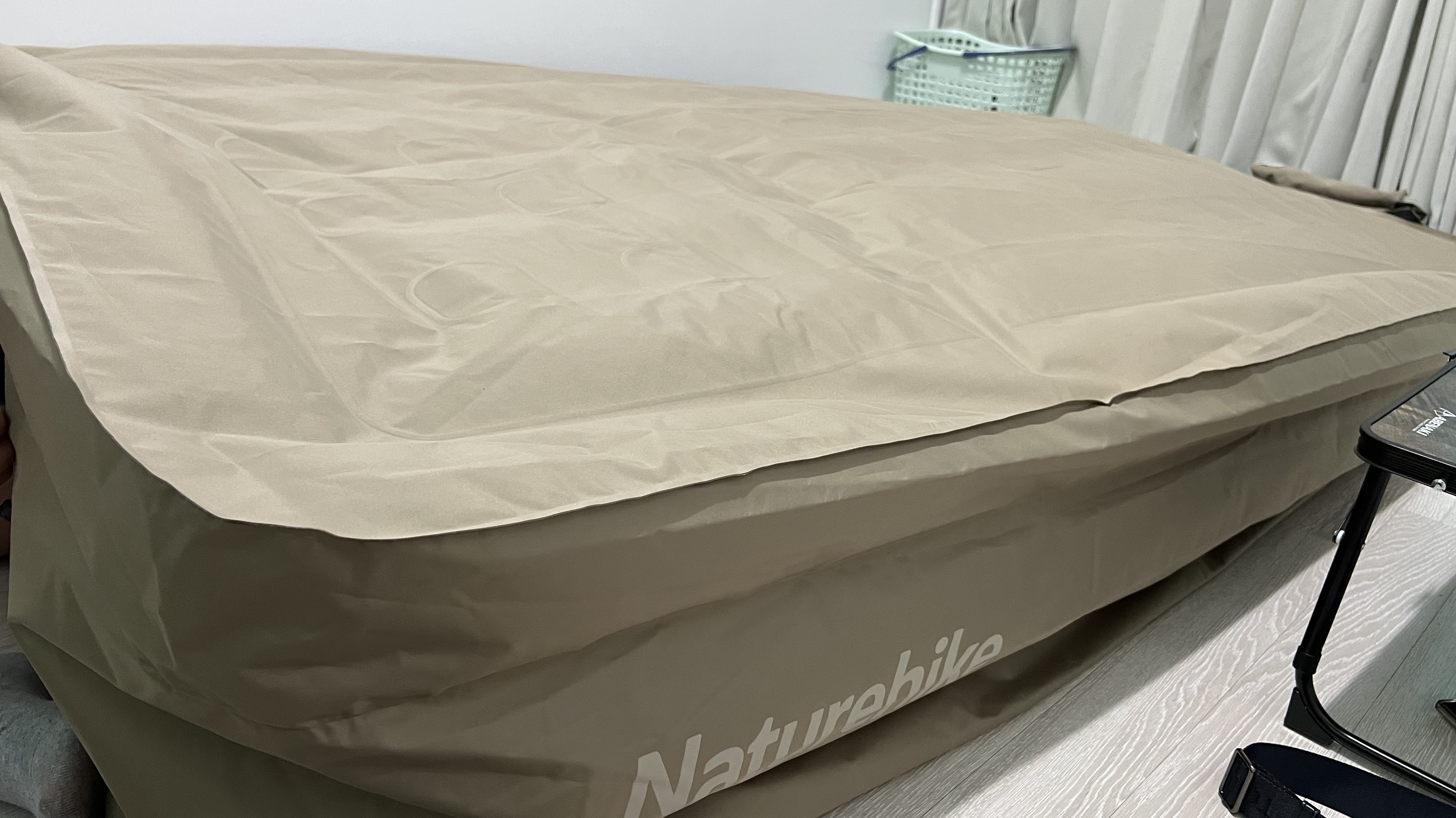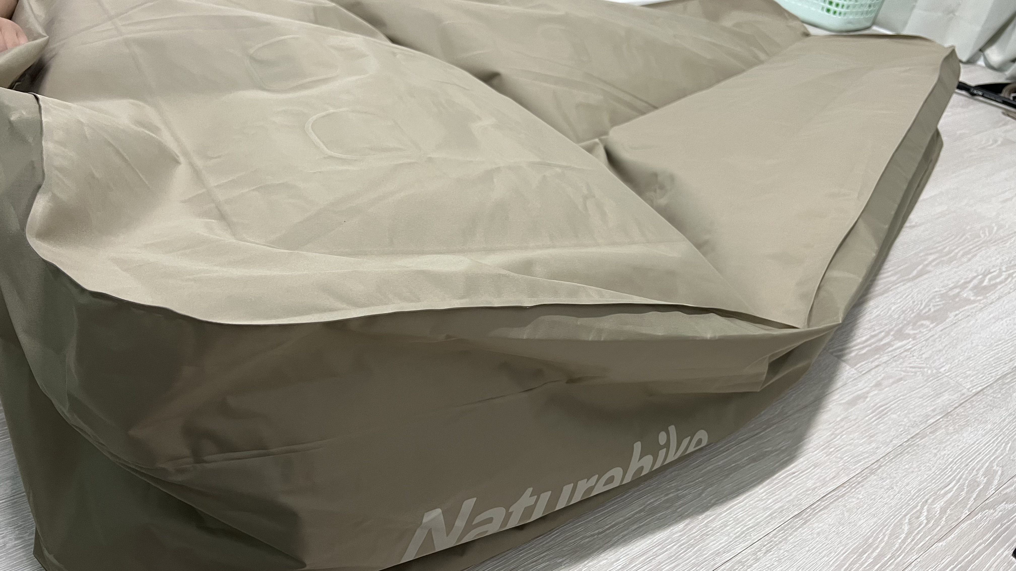 에어매트는 내 의견이 전혀 반영되지 않은 (그래서 보자마자 더 우와+_+ 할 수 있었던) 그의 선택이었는데 네이처하이크(Naturehike) 브랜드의 제품이었다. 사이즈는 더블, 공기를 넣으면 무려 46cm 두께의 매트리스가 된다. 에어매트는 오염 방지 및 이동에 편리하도록 수납 가방에 들어있었는데 생각했던 것보다 훨씬 사이즈가 작아서 놀랐다. (수납가방 사이즈 52 * 20 * 22cm) 이렇게 부피가 작고 무게가 가벼운 휴대성 갑 매트리스라니!