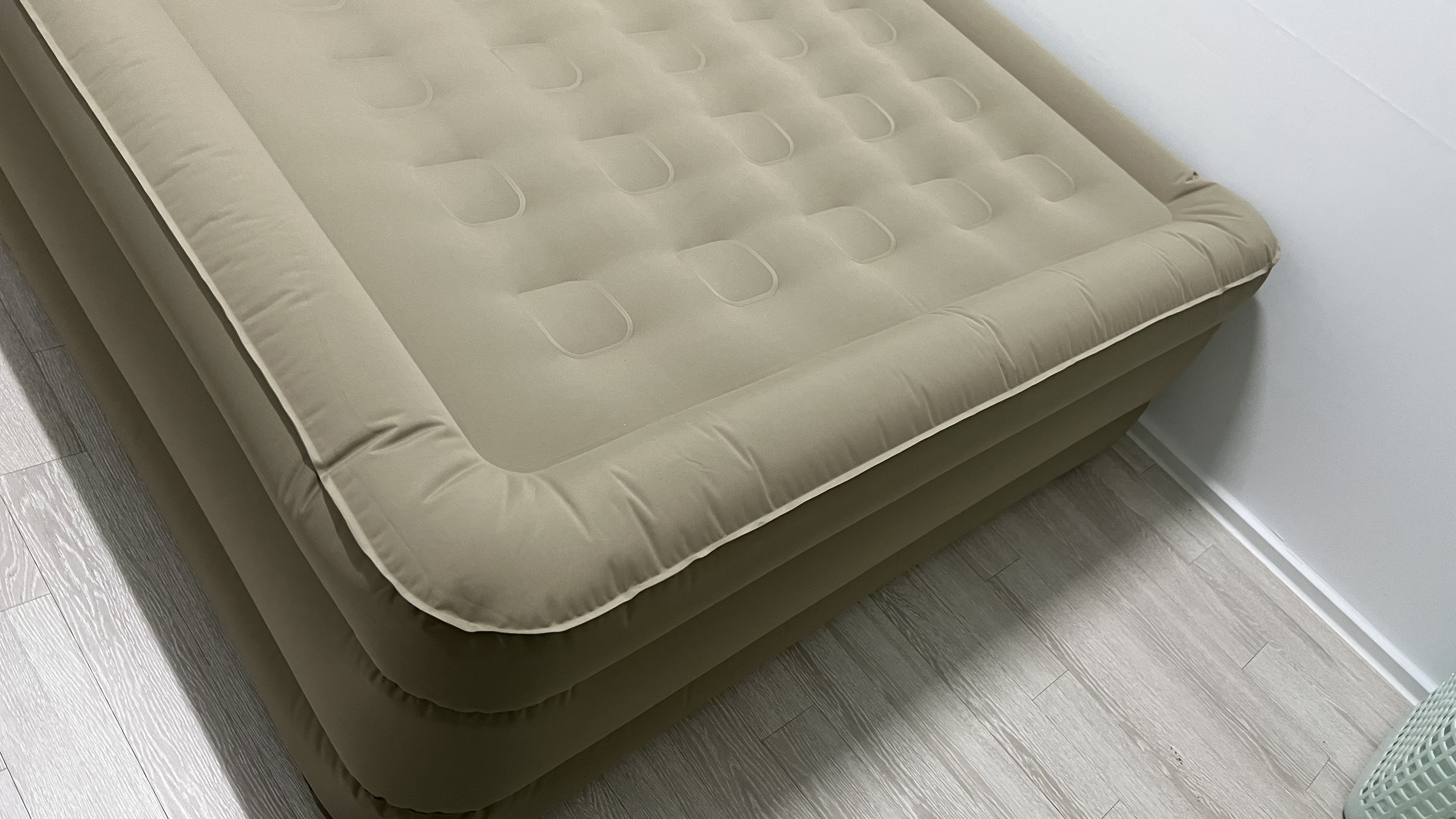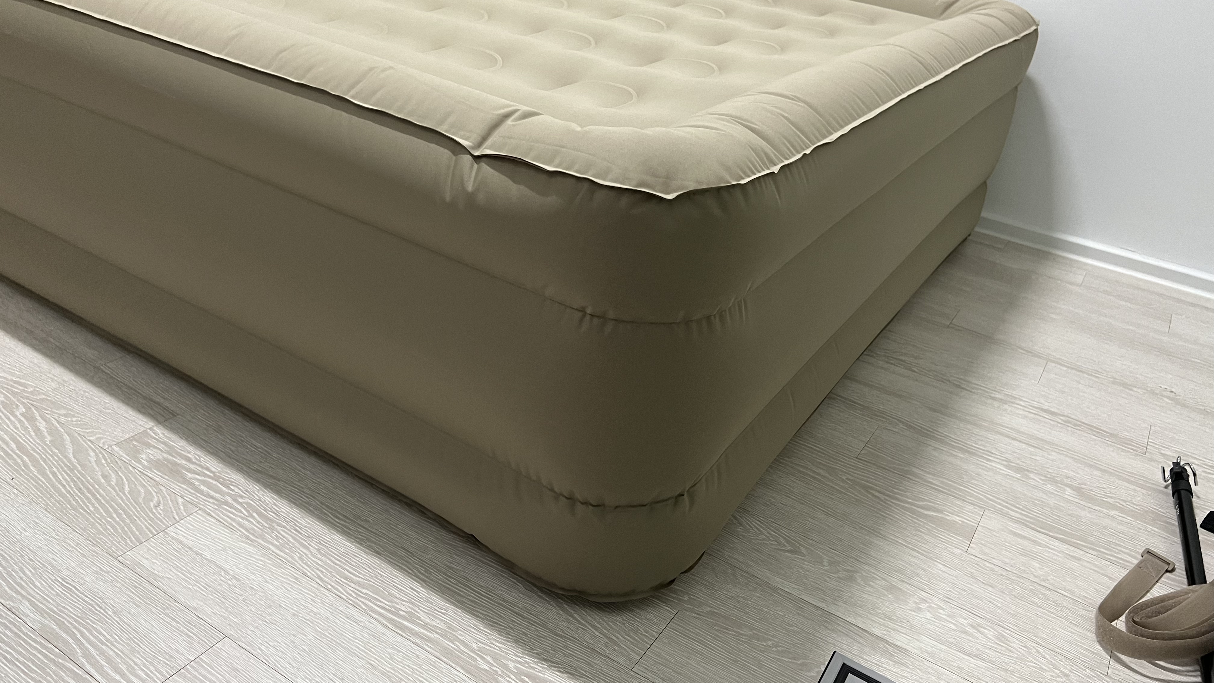 짠! 공기가 주입된 에어 매트리스의 사이즈는 가로 152cm, 세로 200cm, 높이 46cm이다. 정말로 집에 있는 더블 침대를 그대로 옮겨 놓은 것만 같은 사이즈와 푹신함이다.
