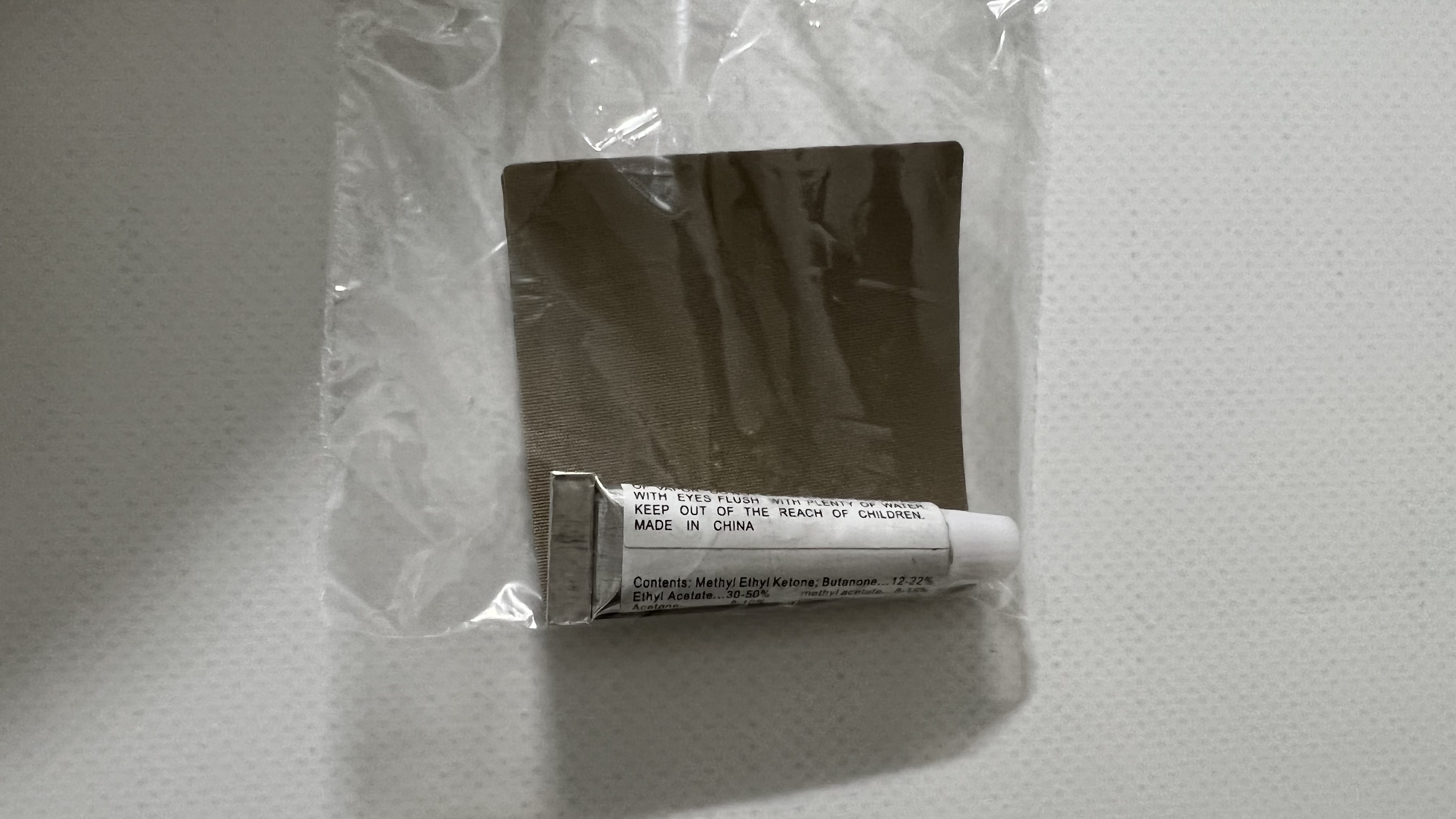 수납가방 안에 있는 지퍼를 열면 셀프 수리가 가능한 수리패치가 동봉되어 있다.
