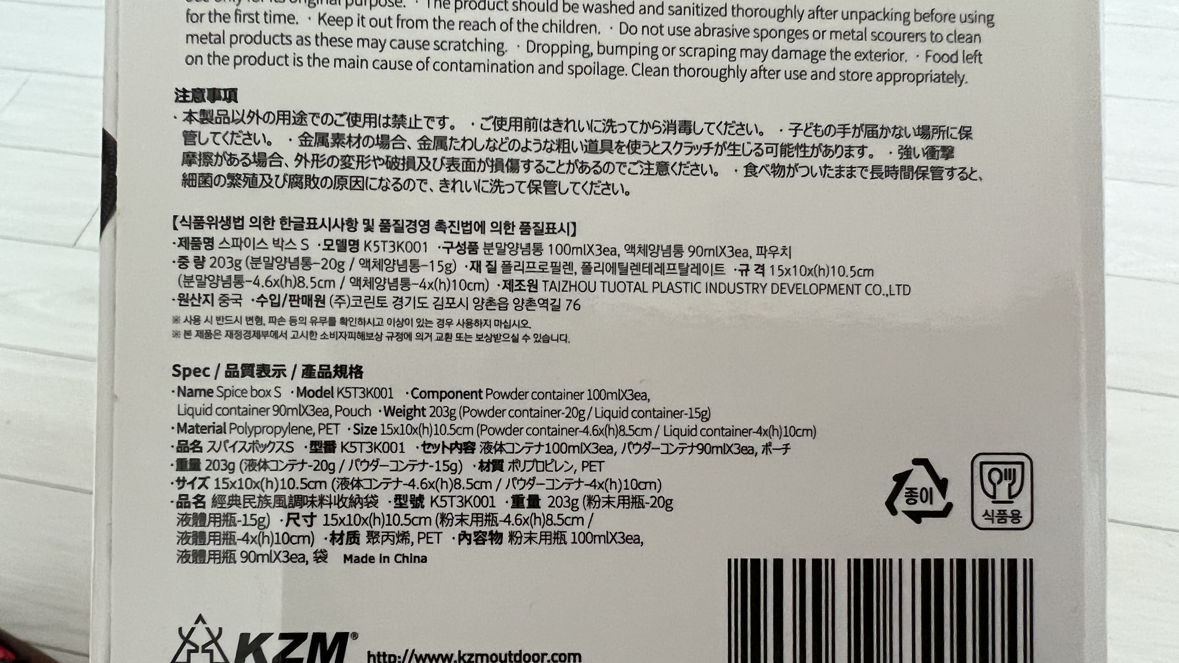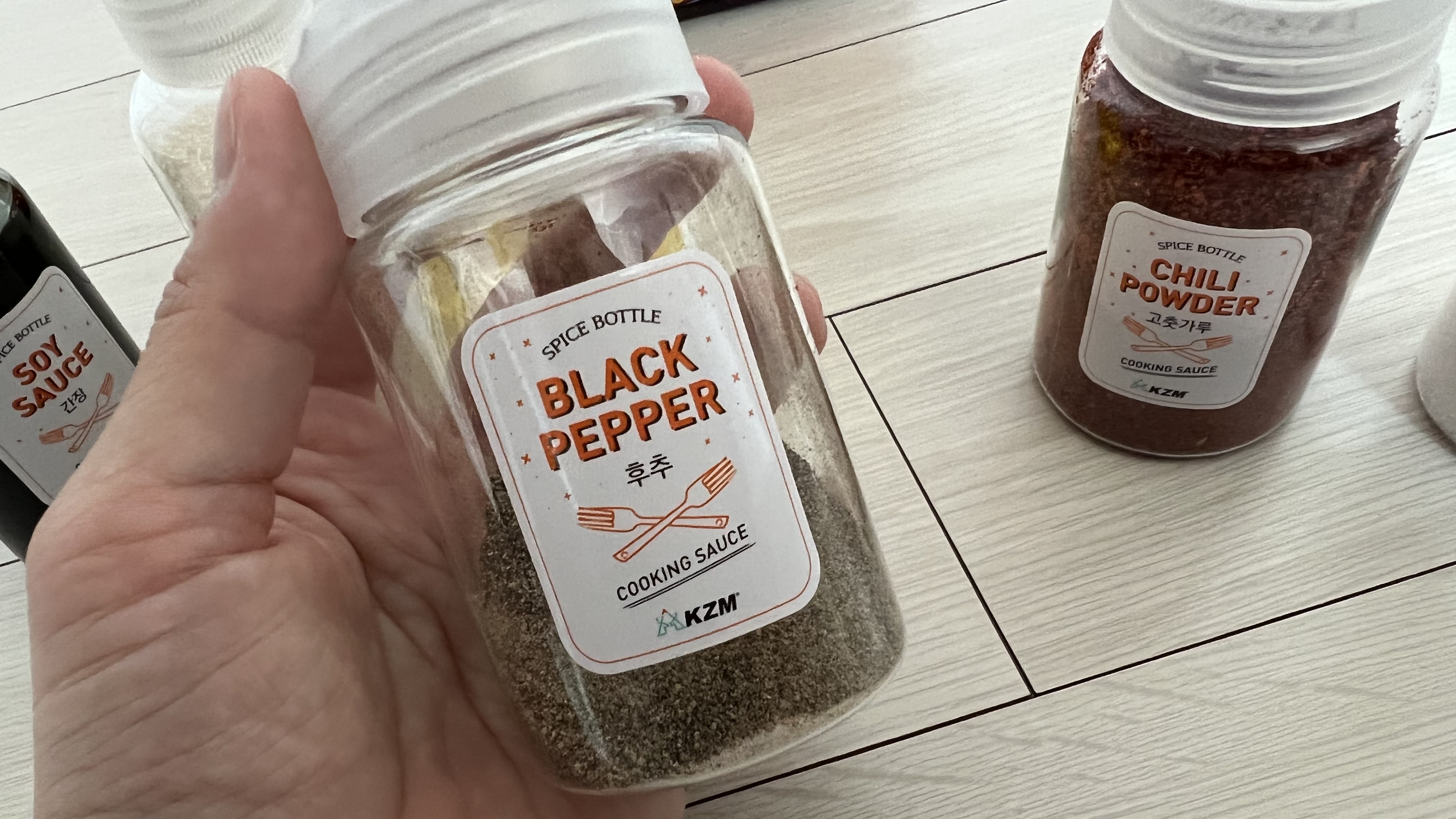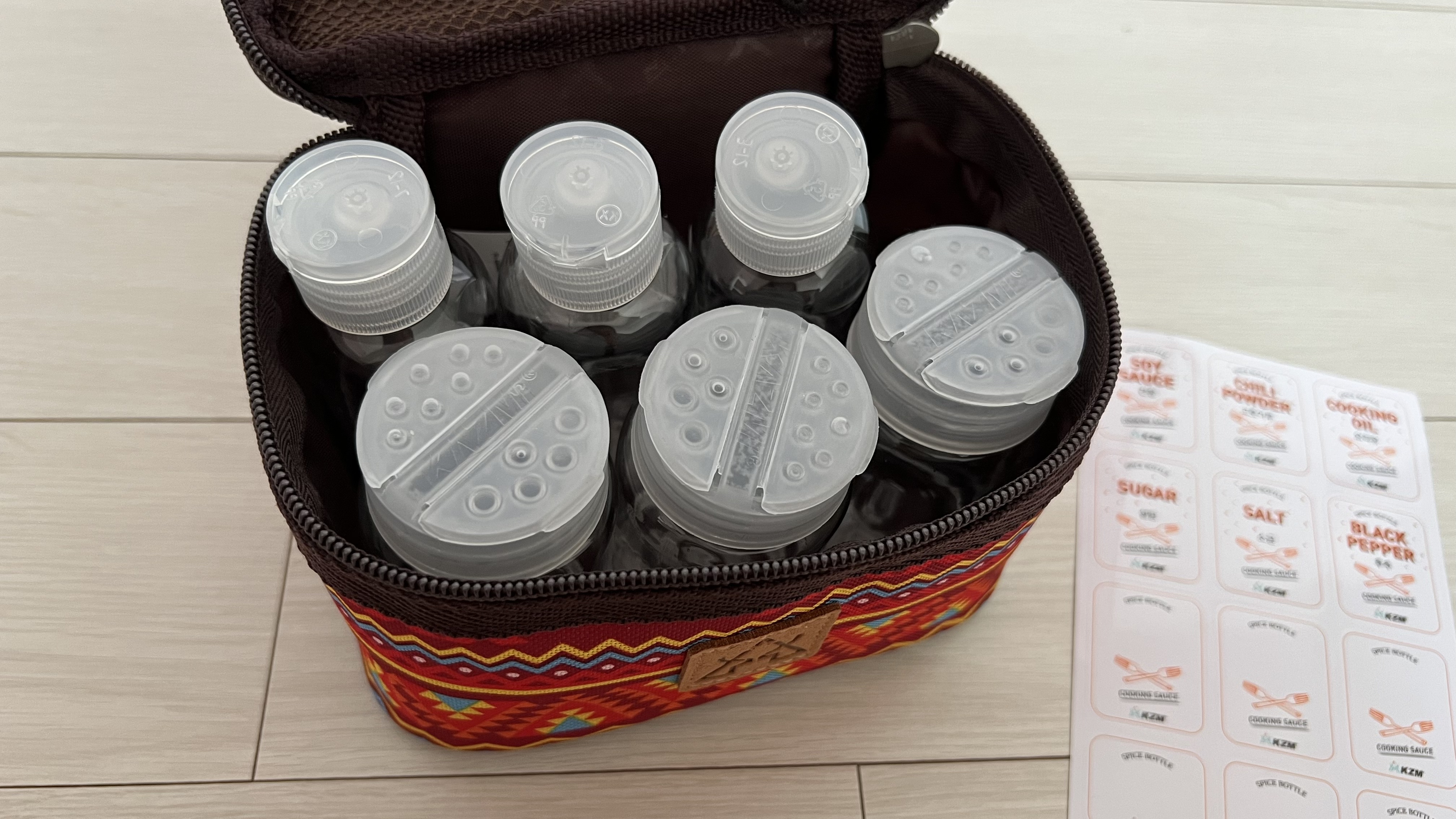 선택한 것은 카즈미(KZM) 브랜드의 스파이스 박스S였다. 2가지 사이즈의 양념통과 파우치 구성으로 보관 및 이동이 간편하고 내부에 메쉬 포켓이 있어서 편리하게 사용이 가능하다고 한다.