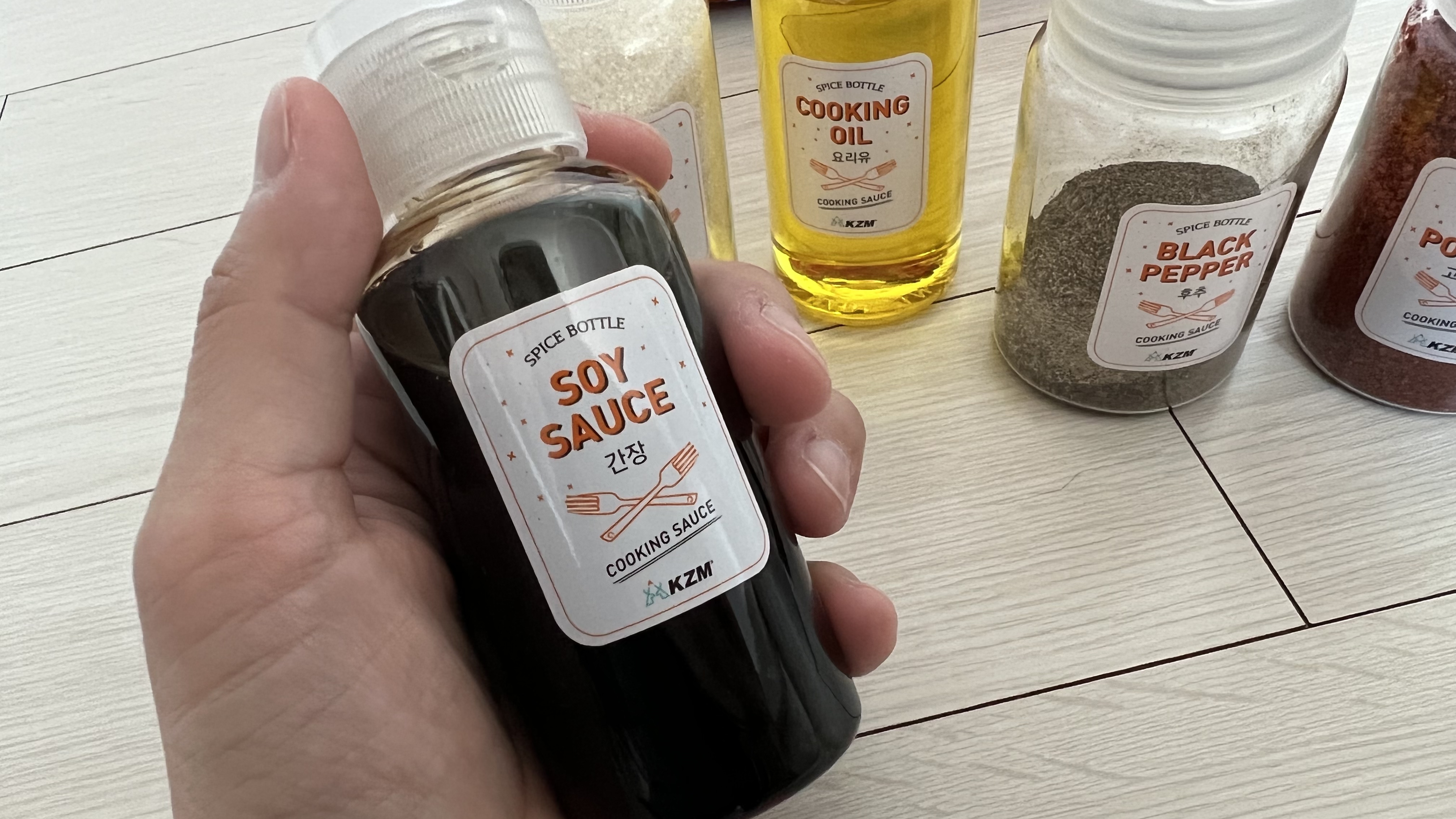 캠핑짐을 챙길 때에 불만이었던 것 중 하나, 주방용품 부피가 너무 들쭉날쭉해서 테트리스 하는게 어렵다는 점이었다. 캠핑용품은 무게도 부피도 최대한 줄이는 것이 좋은데 식용유, 간장, 소금 등 부엌에서 사용하던 조미료들을 그대로 챙기려니 항상 뒤죽박죽 엉망이라는 생각이 들었었다. 그래서 캠핑이 조금 익숙해졌다고 느껴질 무렵, 캠핑짐을 조금이라도 더 줄여보자는 미션 해결책의 일부로 양념통 세트를 주문했다.