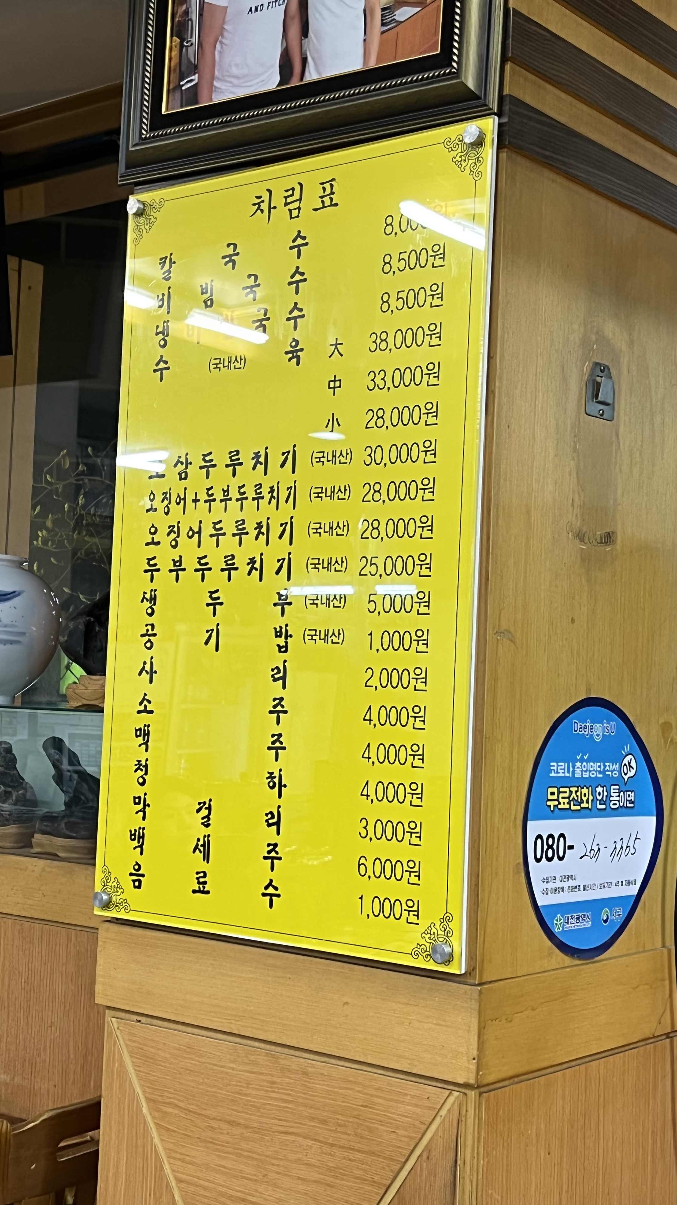 수육 대 38,000원 / 중 33,000원 / 소 28,000원