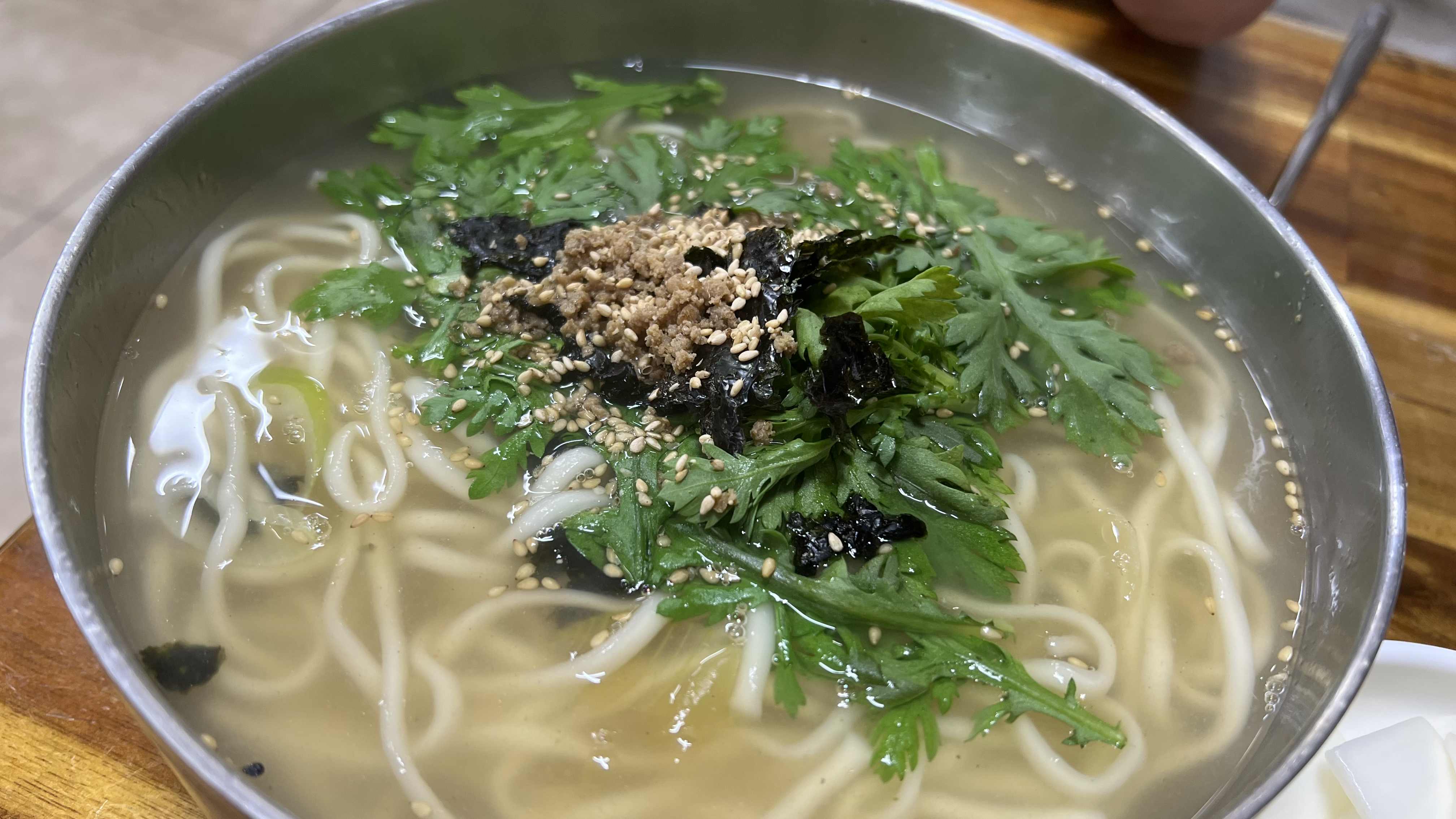 그리고 먹자마자 '이거 진짜 맛있는데?' 했던 칼국수! (엄지척👍🏻) 왜 대전에 오면 칼국수를 꼭 먹어야 한다고 했는지 바로 이해했다. 멸치와 다시마 조개로 육수 맛을 냈다고 하는 뜨끈하고 시원한 국물도 좋았고, 쑥갓과 김가루와 함께 먹는 면도 모두 모두 좋았다. 백점 만점에 백점 주고 싶은 칼국수였다.
