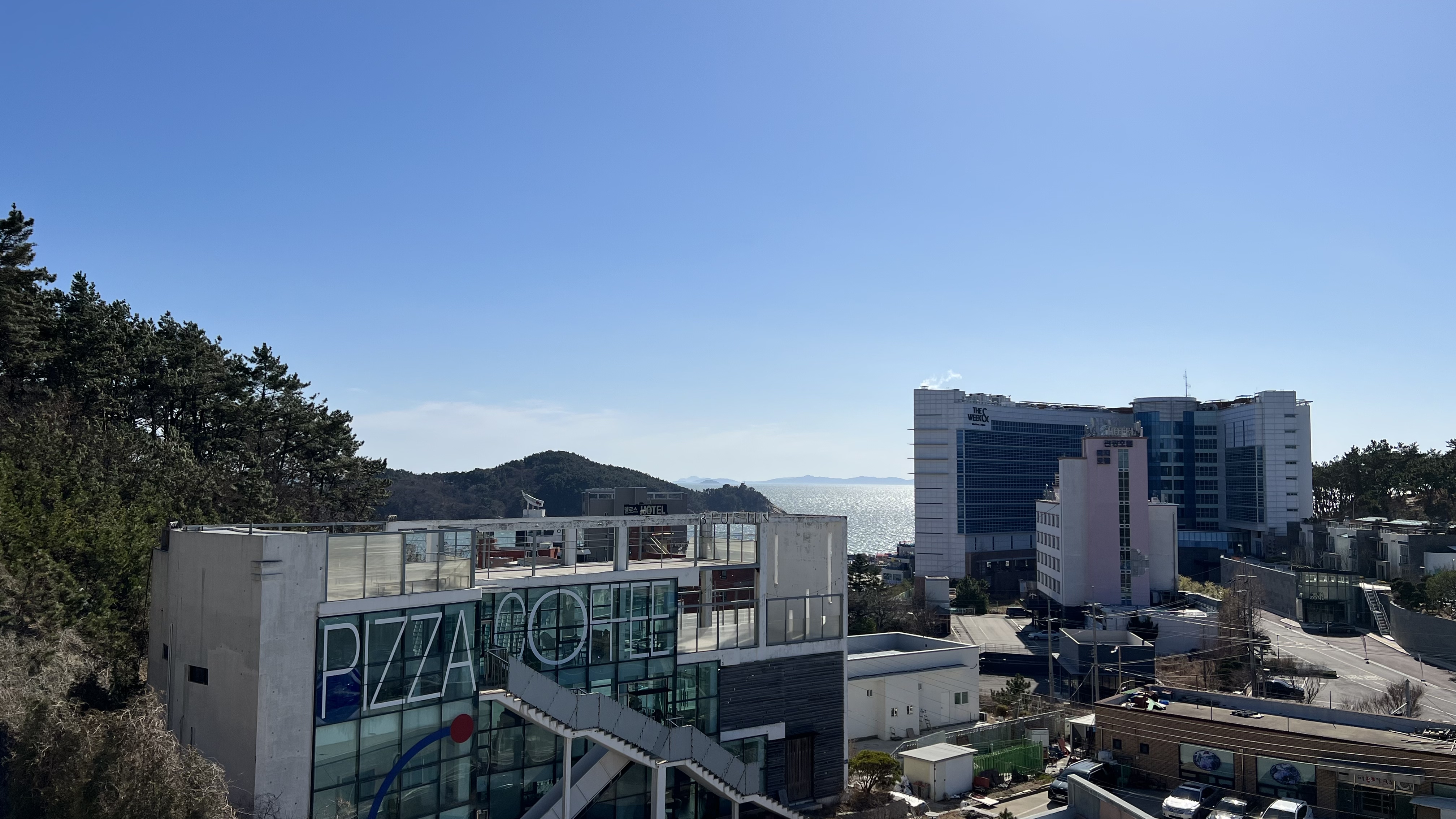 날이 춥고 바람이 많이 부는 날이어서 테라스에는 사람이 없었다. 하지만 봄이 되면 이 곳도 사람들로 가득 차서 앉을 자리가 없을 것이란 확신이 들었다. 바다 바로 앞이 아니라서 바다를 조망하는 데에는 무리가 있었지만, 높은 지대에 위치해 있다보니 개방감은 나쁘지 않았다.