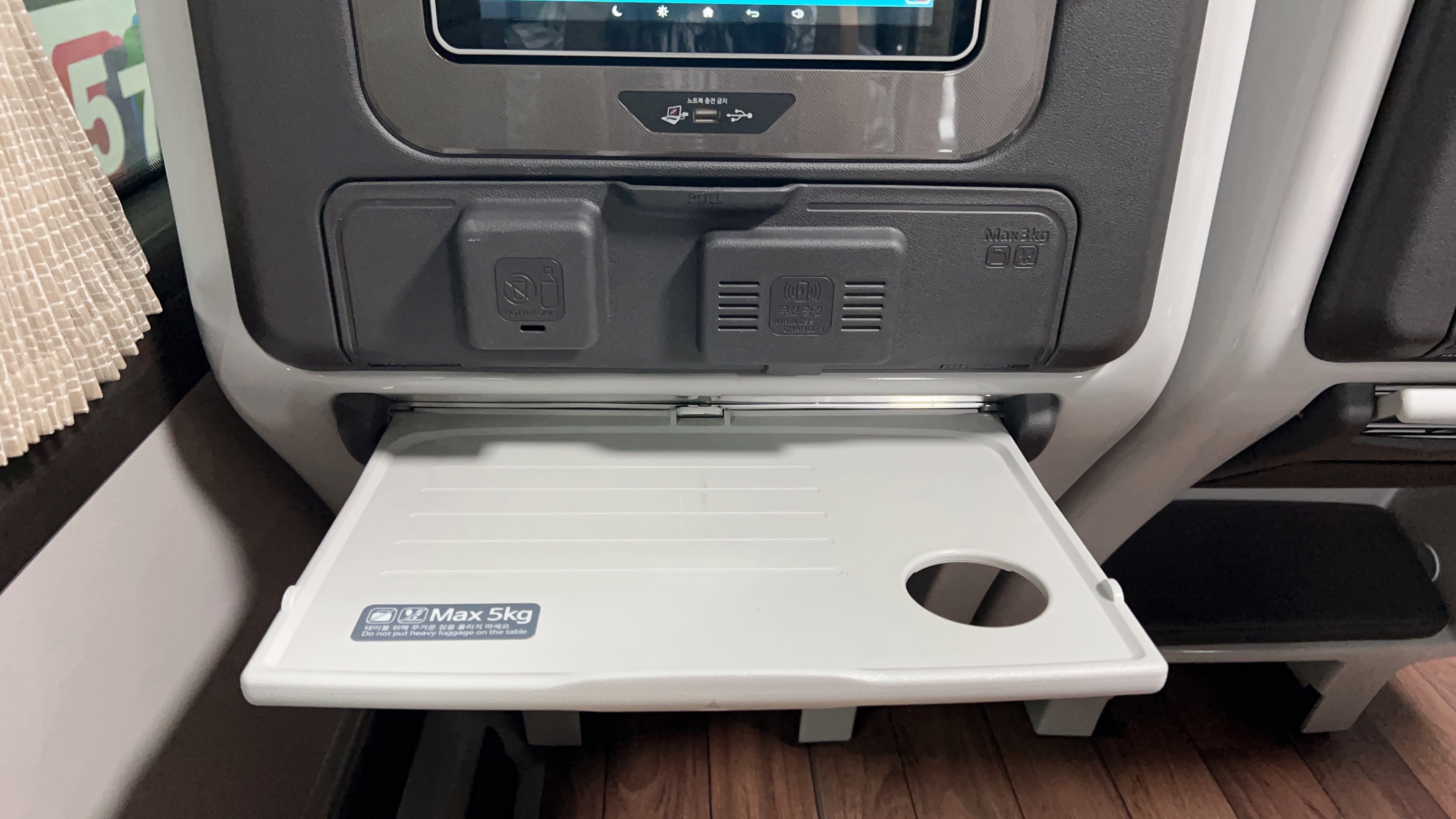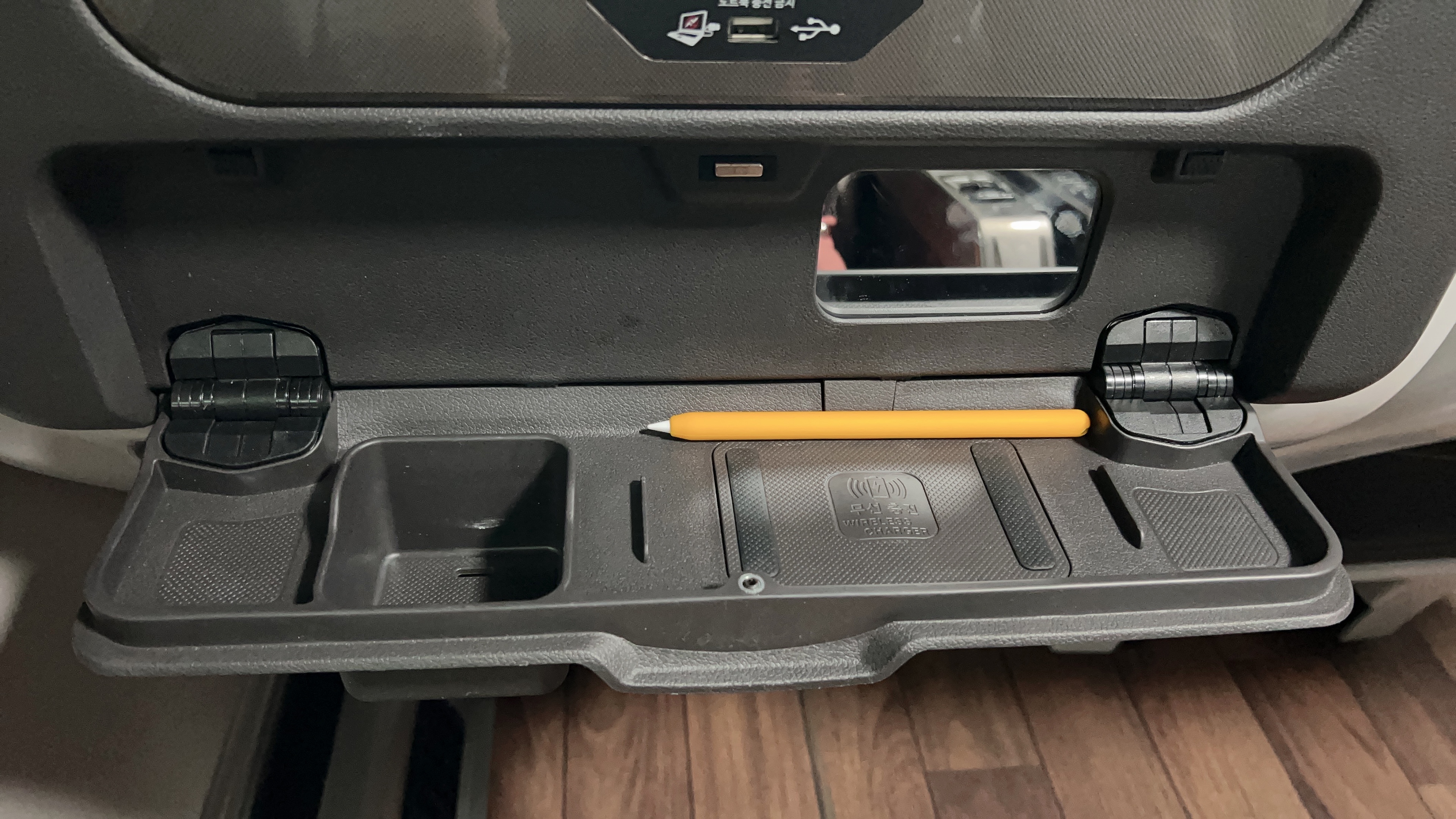좌석마다 LED 모니터가 설치되어 있어서 이동 중에 다양한 컨텐츠를 즐길 수 있다. 상단에 개인 조명이 붙어있는 것도 신기했다. 그 외 컵홀더, 옷걸이, 개인 소지품을 놓을 수 있는 테이블, 메모를 위한 펜 등도 구비되어 있었다.
