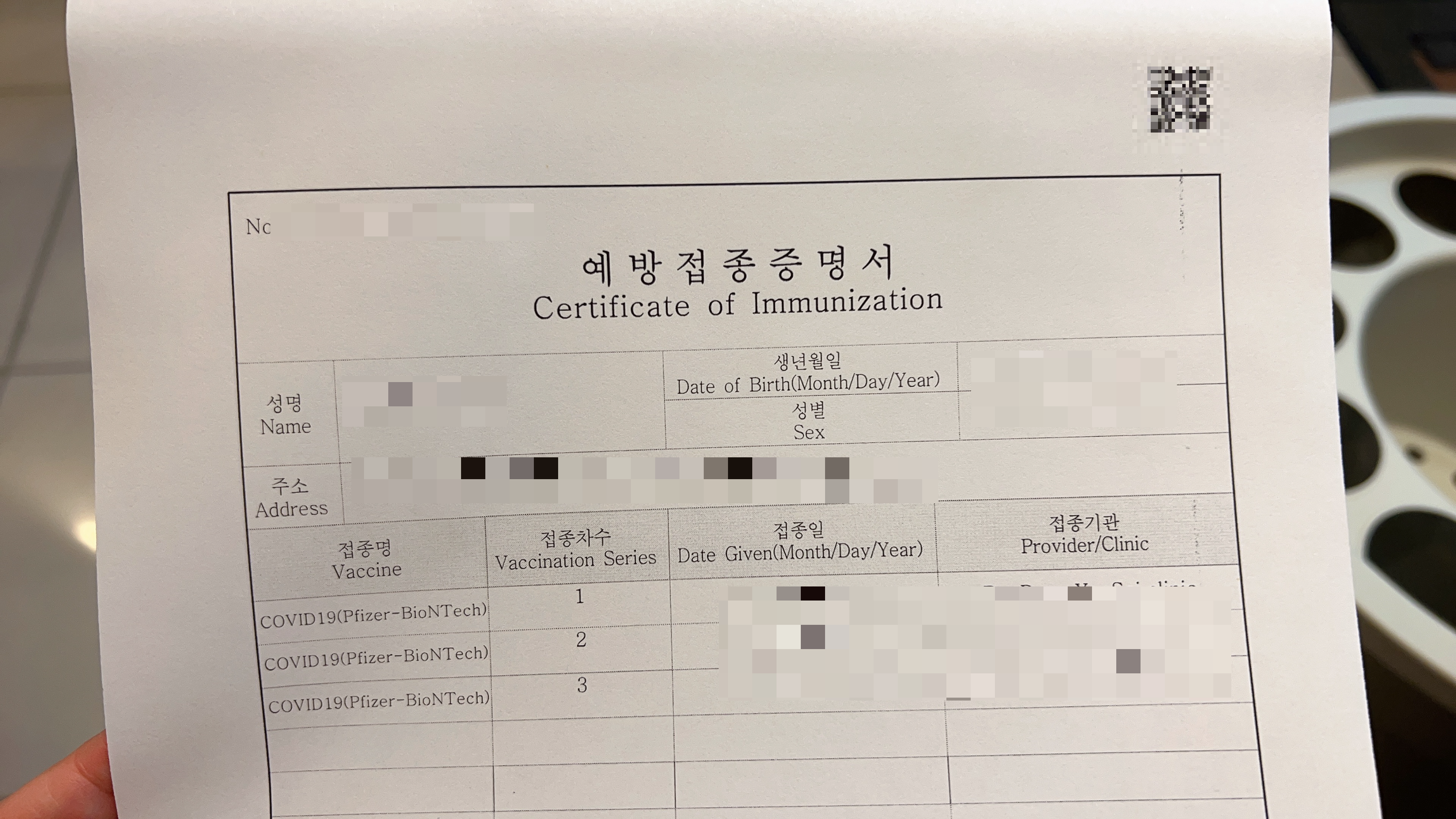 그리고 백신 접종 후에 병원에서 바로 영문으로 된 예방접종 증명서도 받을 수 있었다. 하아... 코로나 서류 드디어 해결... 이거 때문에 한 3~4일 동안 아무것도 못하고 병원에 문의하고 인터넷에 검색하고... 너무 힘들었다. 그래도 잘 해결됐으니까 일단은 다행이다.