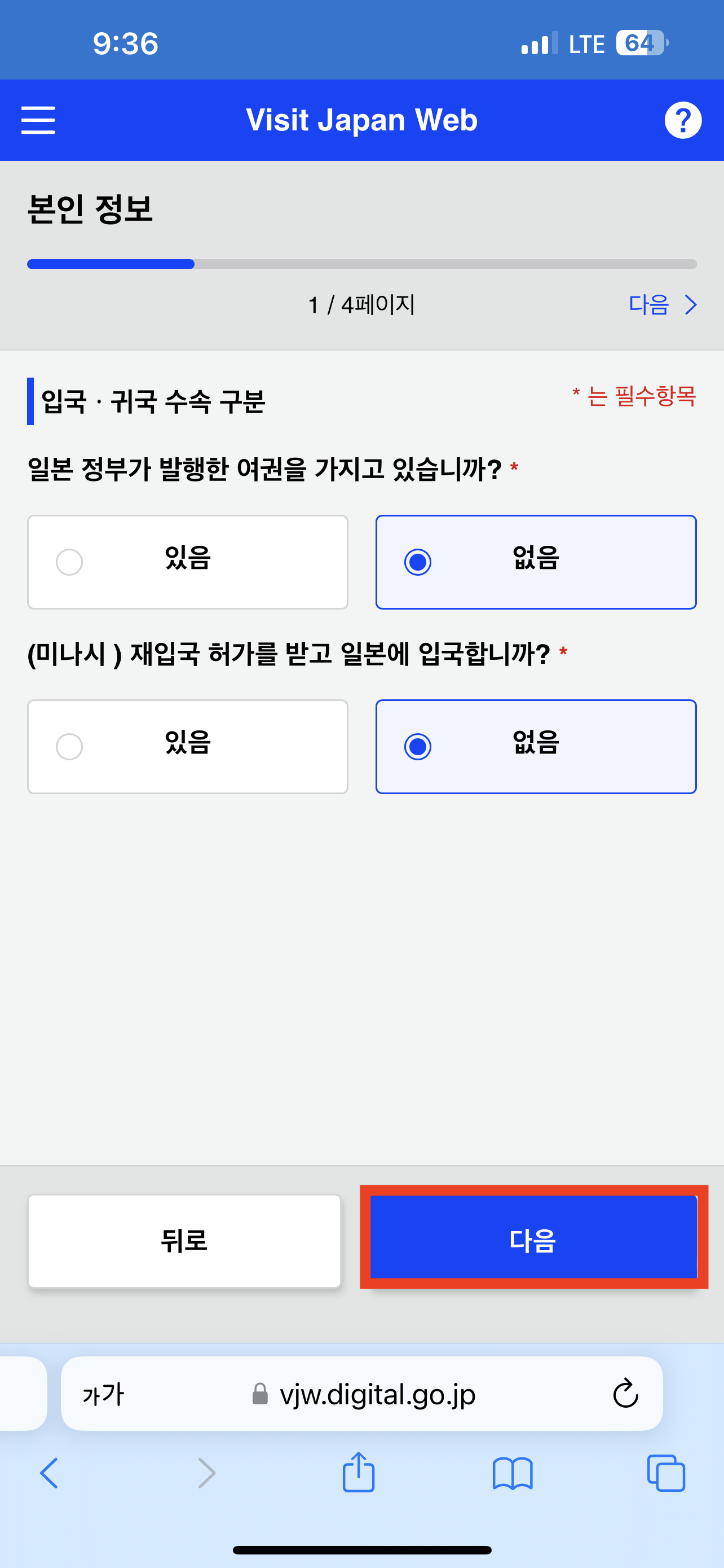 검역 수속(패스트트랙)을 모두 마쳤다면 이번에는 입국심사 준비를 해보도록 하자. 해외여행 갈 때에 비행기 타면 작성해야 하는 종이 두 장이 있는데, 요걸 온라인으로 미리 해두면 종이 작성