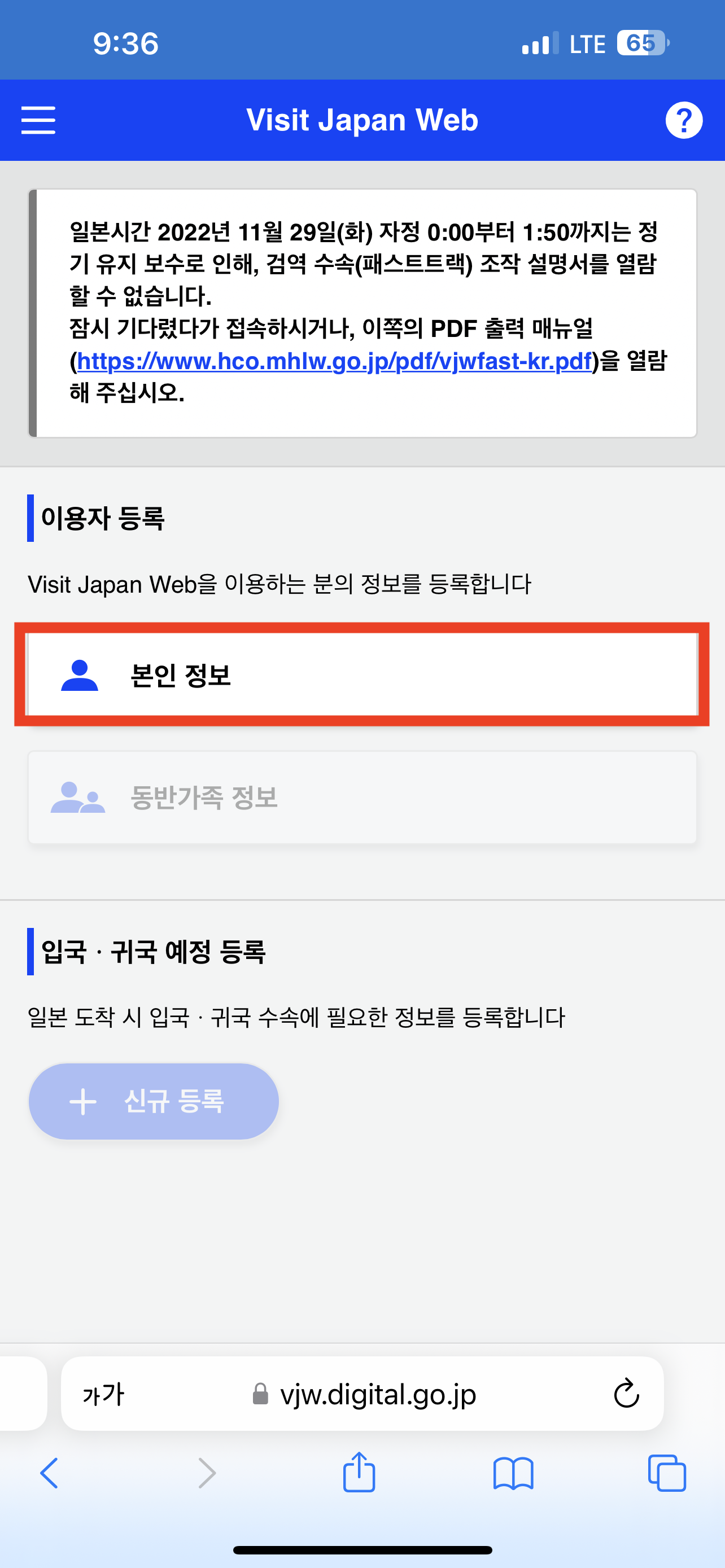 지난 포스팅에서 Visit Japan Web 회원가입, 이용자 등록하는 방법에 대해서 설명했다. 이번 포스팅에서는 입국 예정 등록과 검역 수속(패스트트랙) 등록하는 방법을 안내하도록 하겠다. 입국을 하