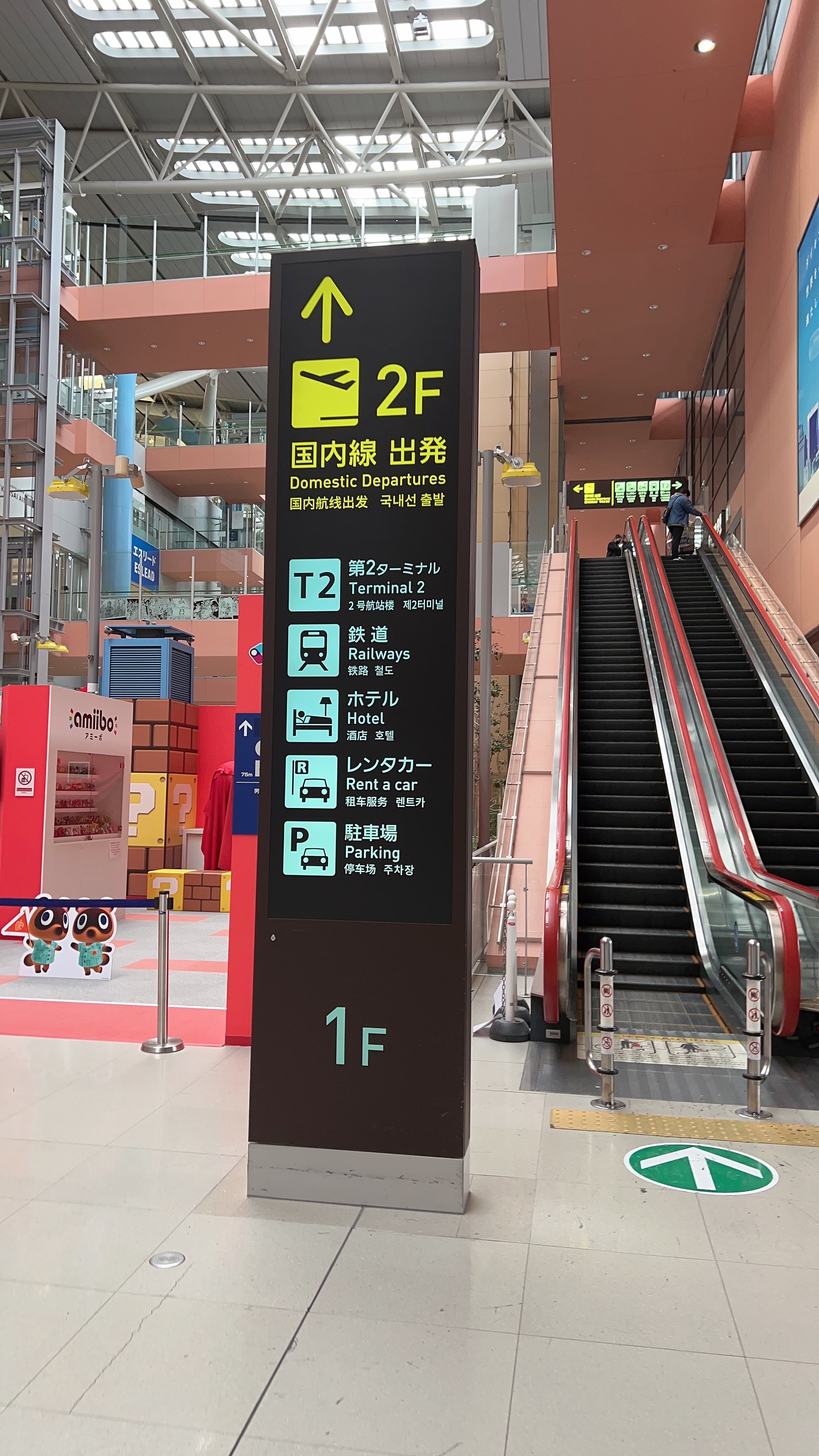 간사이 공항에서 입국 수속을 마치고 나오면 바로 양쪽으로 에스컬레이터가 있는데, 왼쪽 에스컬레이터(아래 사진에 보이는 저 곳!)를 이용해서 올라간다. 좌우가 헷갈린다면 철도 아이콘과 함께 Railways라고 쓰여있는 방향으로 이동하면 된다.