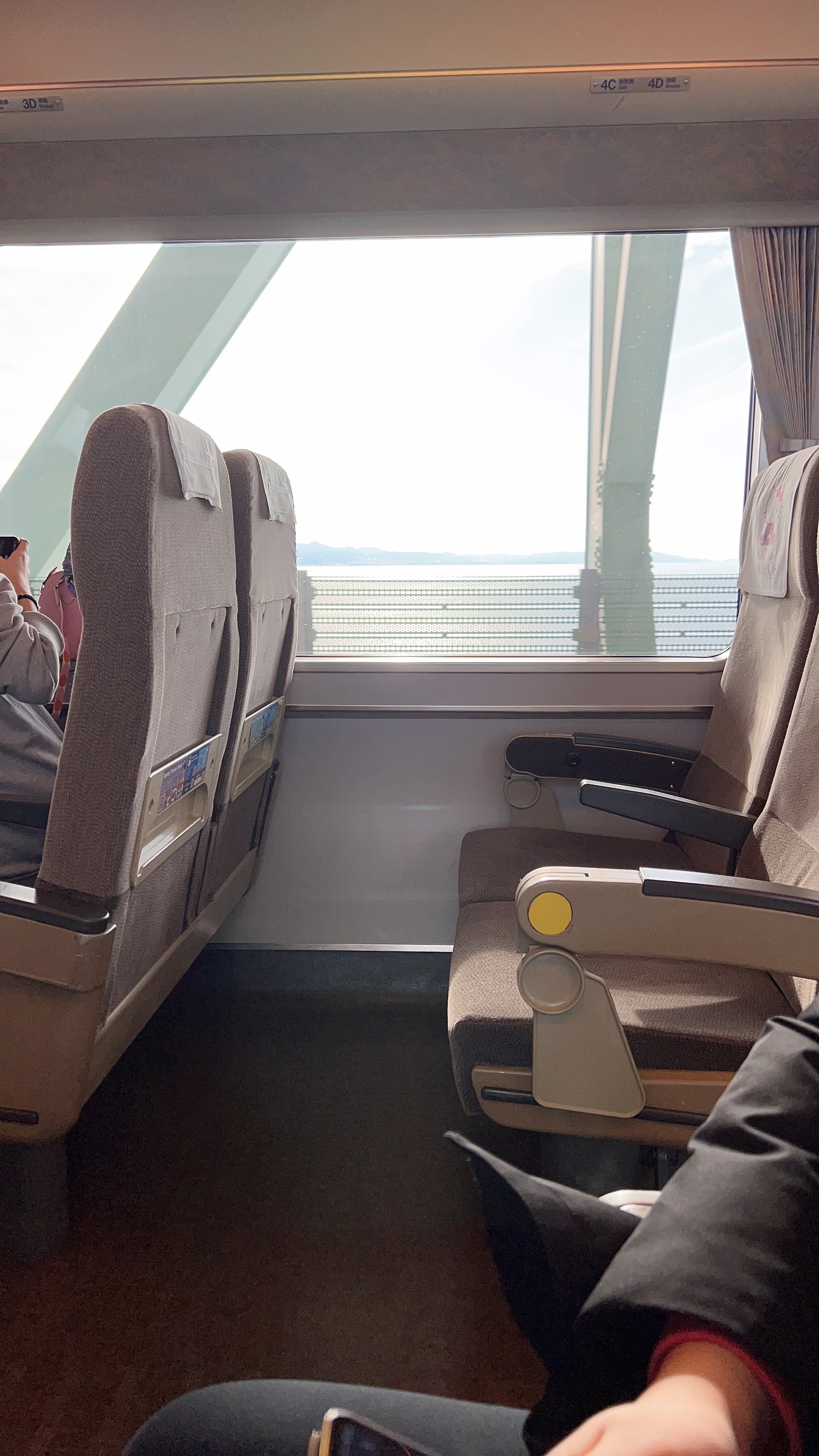 가보지는 않았지만 내부에 화장실도 있다고 하니, 간사이 공항에서 교토에 갈 때 정말 편리하게 이용할 수 있는 교통수단 중 하나가 아닌가 싶다. 열차가 출발하고 나는 창밖을 구경하며 끊임없이 사진을 찍었다. 그리고 그는 가는 내내 쿨쿨 잠만 잤다...🫠