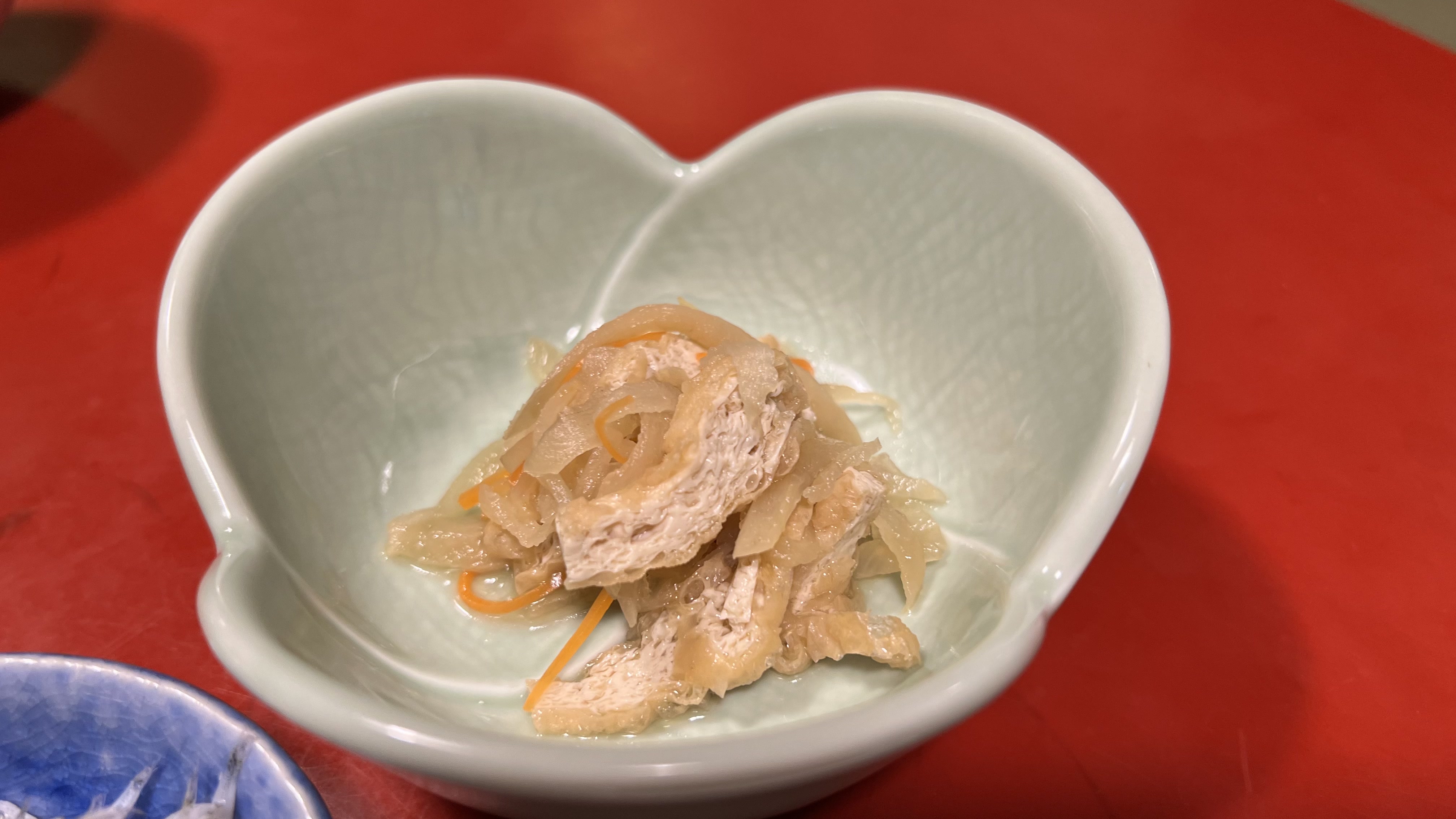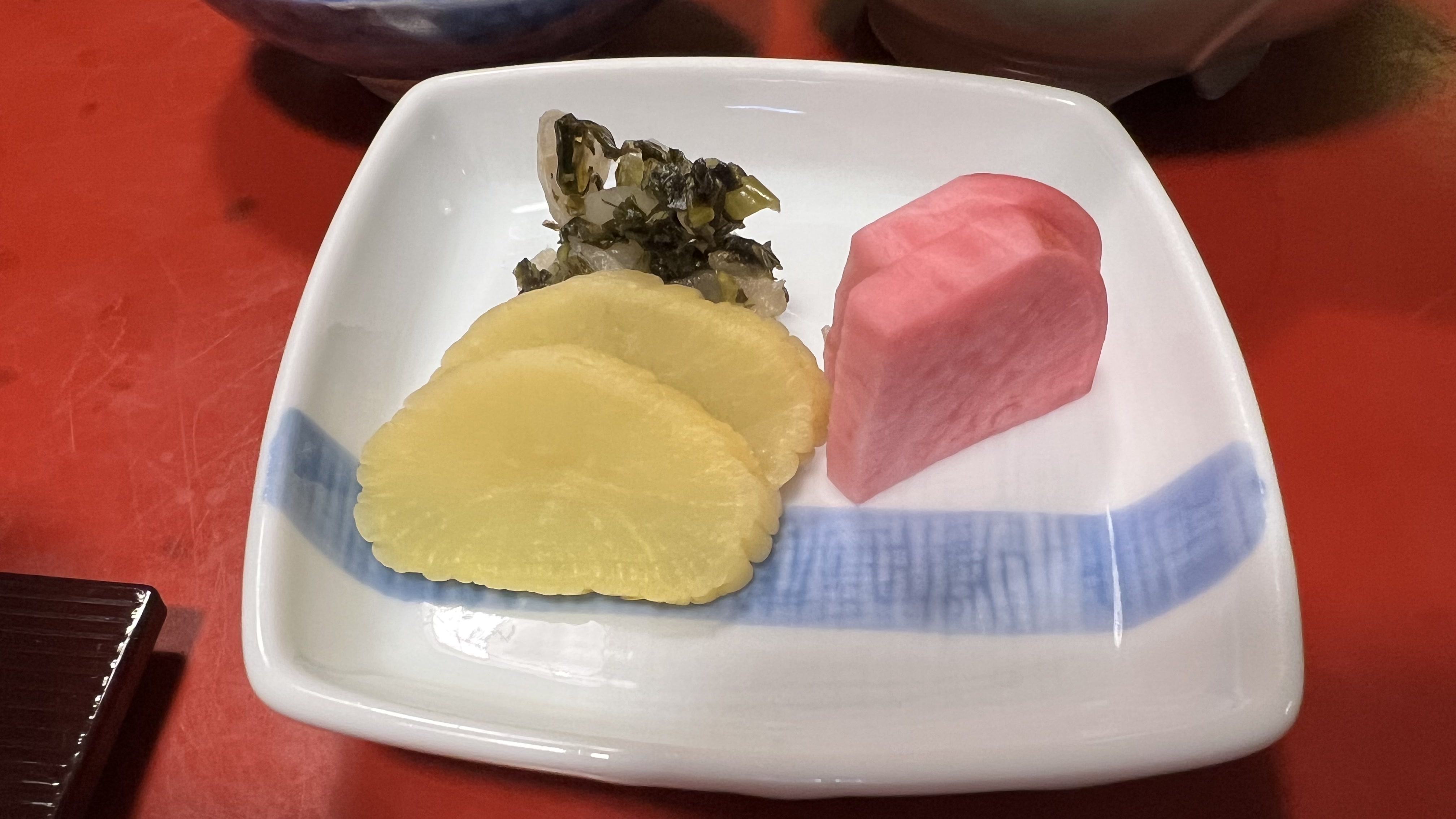 조식의 시작은 우메보시와 따끈한 차 한 잔이었다. 우메보시는 매실을 소금에 절여서 만든 일본식 매실 장아찌인데, 와카야마현에서 유래한 대표적인 일본 음식이라고 한다. 일본의 우메보시는 맛있게 먹는 반찬의 개념이 아니라 밥 맛을 돋우기 위한 도구로 이용되어, 우리나라 장아찌처럼 먹는 것을 상상하면 안된다. 밥 한 공기에 딱 한개만 집어서 조금씩 먹는 방식으로 먹어야 한다. 일본의 우메보시는 너무 시큼해서 나는 한입 베어물고 두 번 다시 젓가락을 그 쪽으로 보내지 않았다-_-;