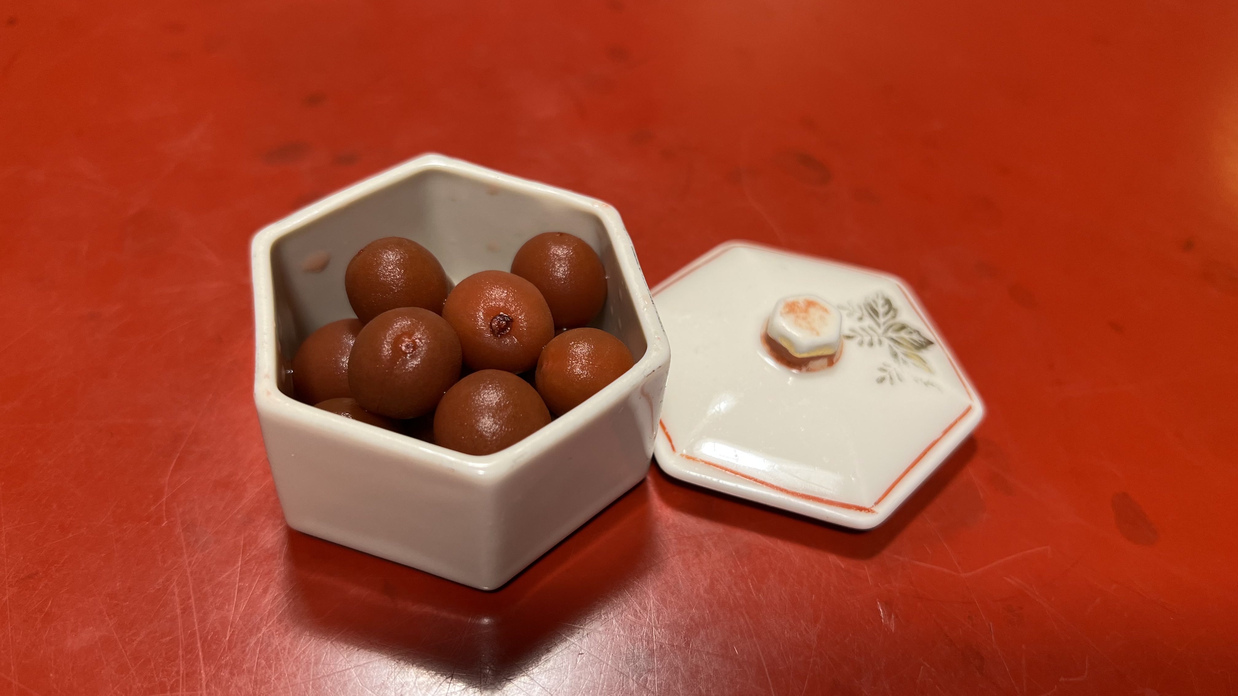 조식의 시작은 우메보시와 따끈한 차 한 잔이었다. 우메보시는 매실을 소금에 절여서 만든 일본식 매실 장아찌인데, 와카야마현에서 유래한 대표적인 일본 음식이라고 한다. 일본의 우메보시는 맛있게 먹는 반찬의 개념이 아니라 밥 맛을 돋우기 위한 도구로 이용되어, 우리나라 장아찌처럼 먹는 것을 상상하면 안된다. 밥 한 공기에 딱 한개만 집어서 조금씩 먹는 방식으로 먹어야 한다. 일본의 우메보시는 너무 시큼해서 나는 한입 베어물고 두 번 다시 젓가락을 그 쪽으로 보내지 않았다-_-;