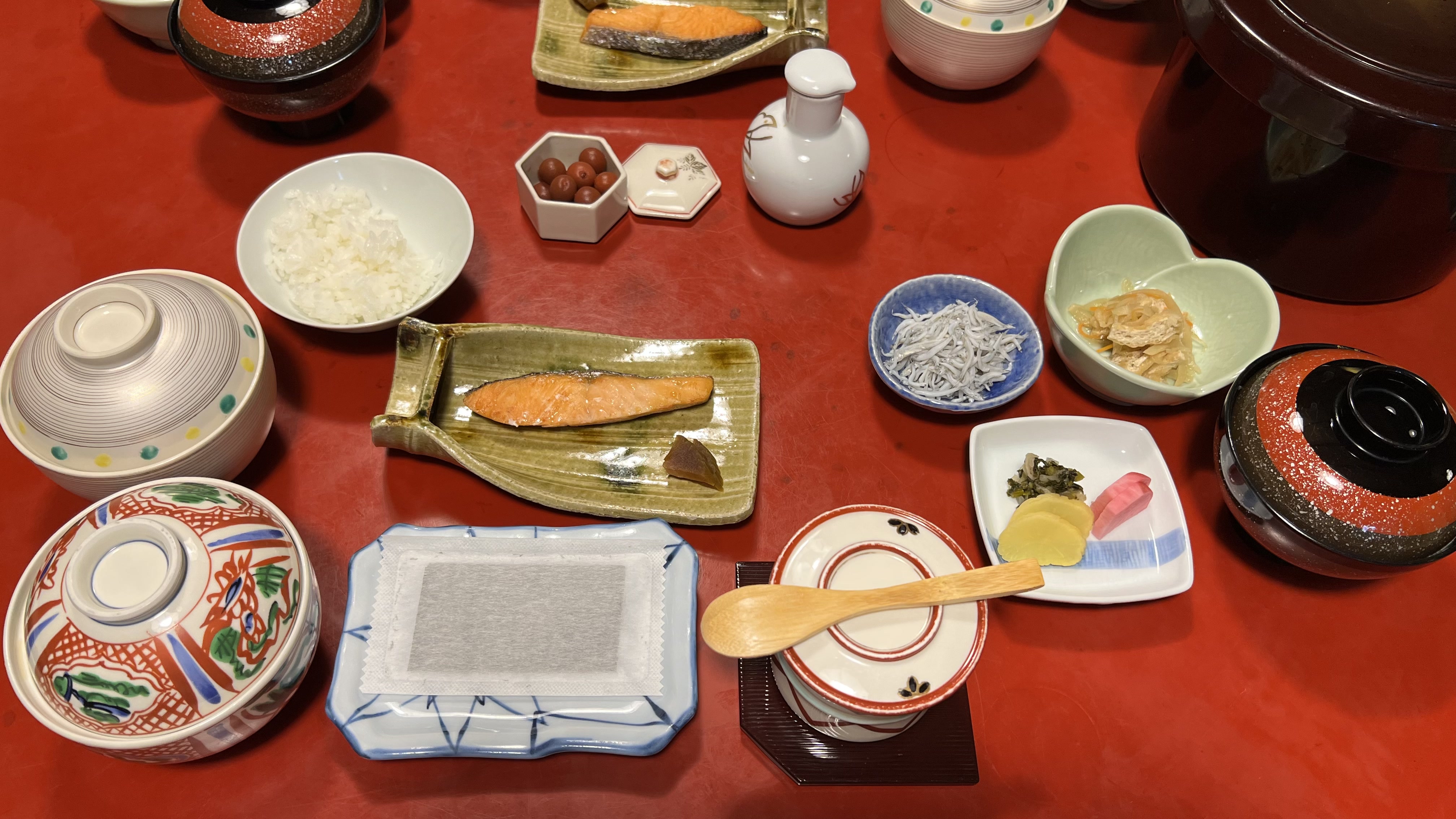 세이코로 료칸의 조식은 코스나 뷔페 방식이 아니라 한꺼번에 한 상이 차려지는 방식으로 제공된다.