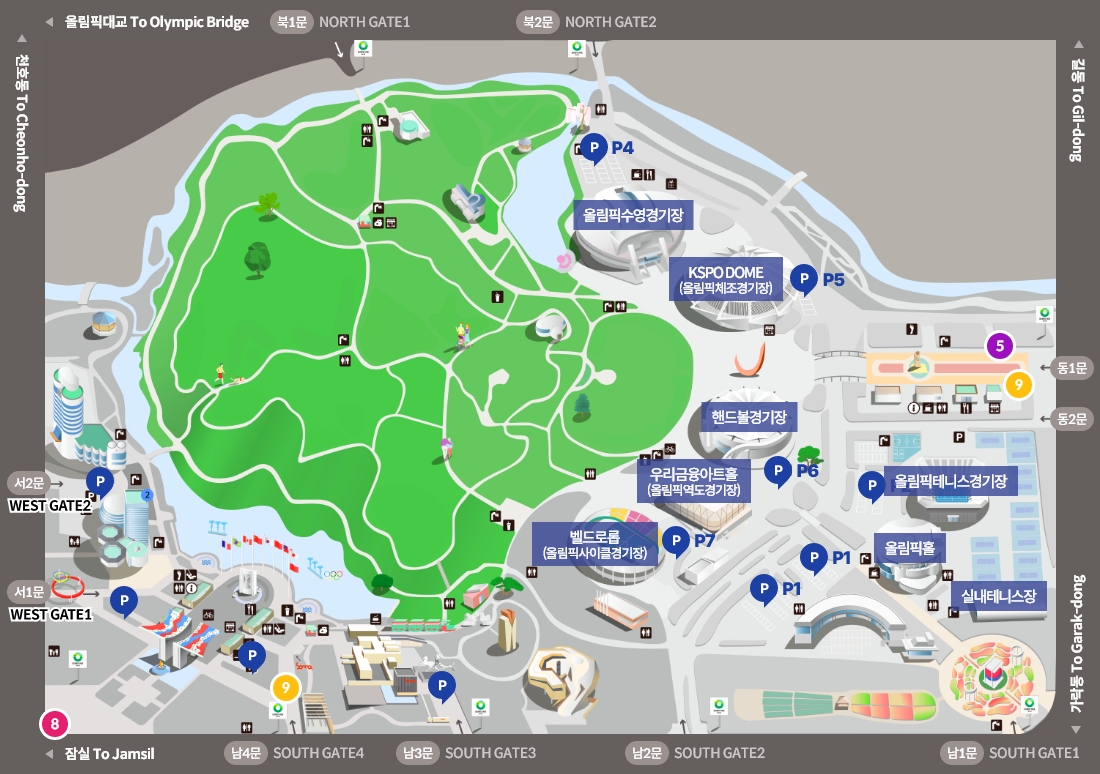 올림픽 공원 교통 및 주차안내(출처: 올림픽공원 공식 홈페이지)