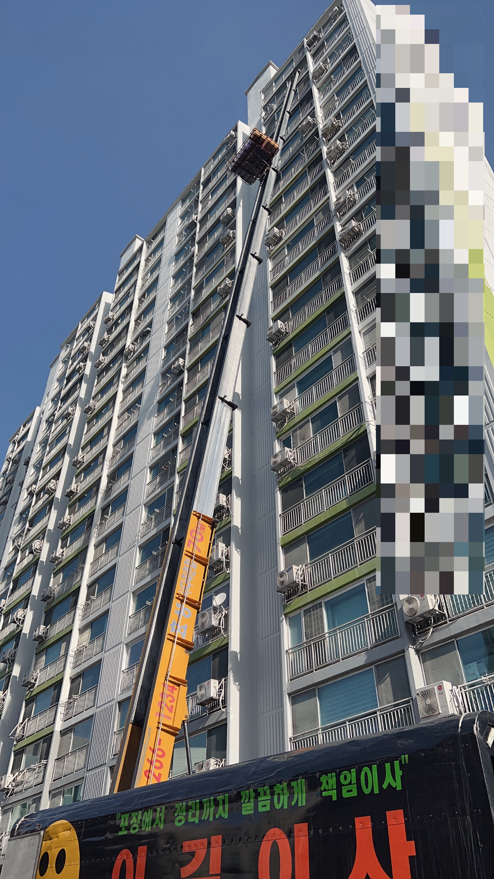우리는 용인에서 서초로 이사를 했는데, 이사 가는 곳은 일단 아파트 단지가 아닌 주상복합 아파트여서인지... 구조적으로 사다리차를 이용할 수 없는 곳이라고 했다. 그래서 짐을 내릴 때에만 사다리차를 불렀다. 사다리차를 이용하니 높은 곳에 있던 짐들이 순식간에 아래로 내려와서 5톤 트럭에 차곡차곡 쌓였다.