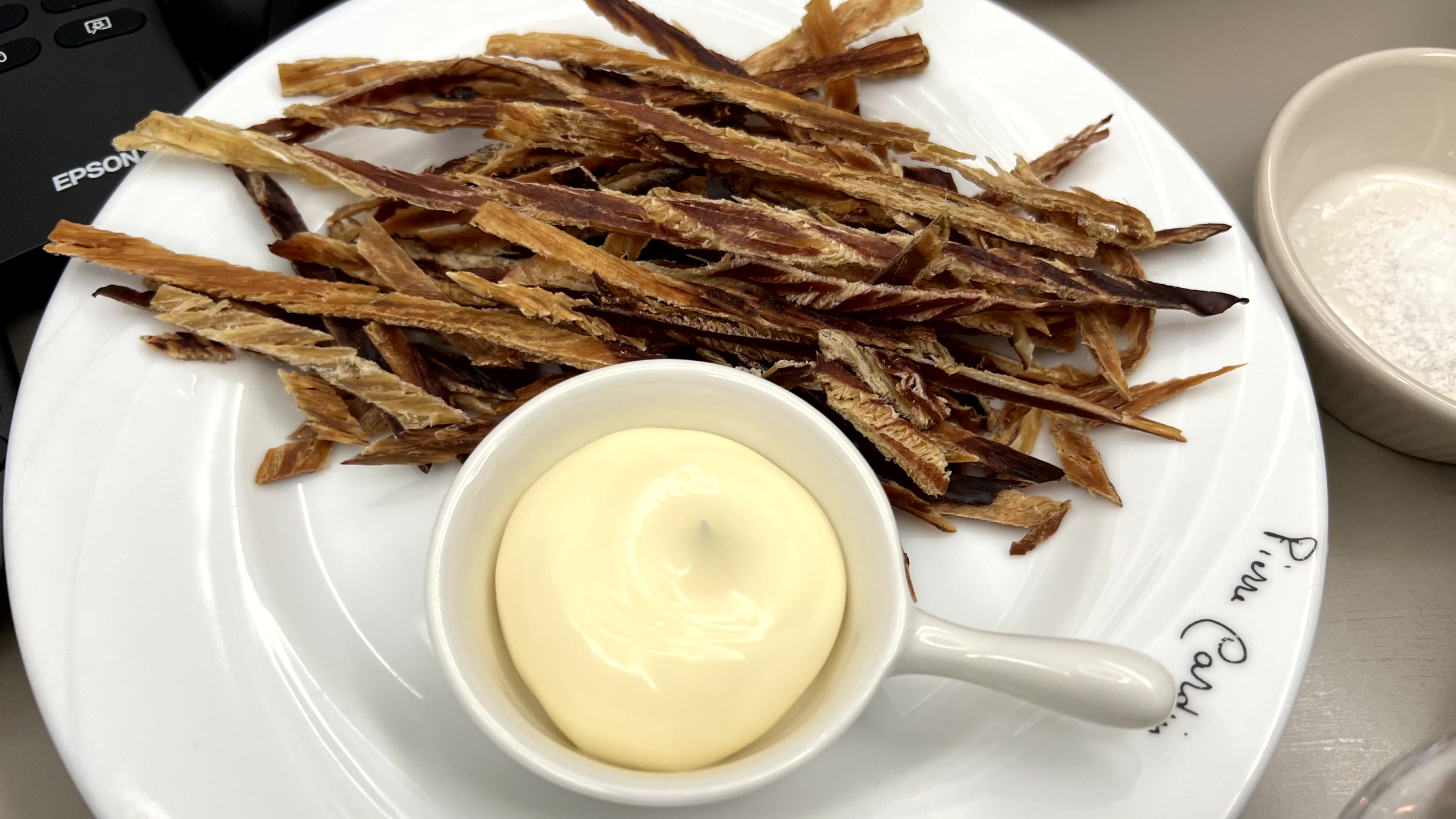 그런데 음식은 맛이 있었는데, 약간의 문제가 있었다. 의자에 붙여놓은 테이프가 벗겨져서 내 츄리닝 바지에 끈끈이가 붙은 것이다.