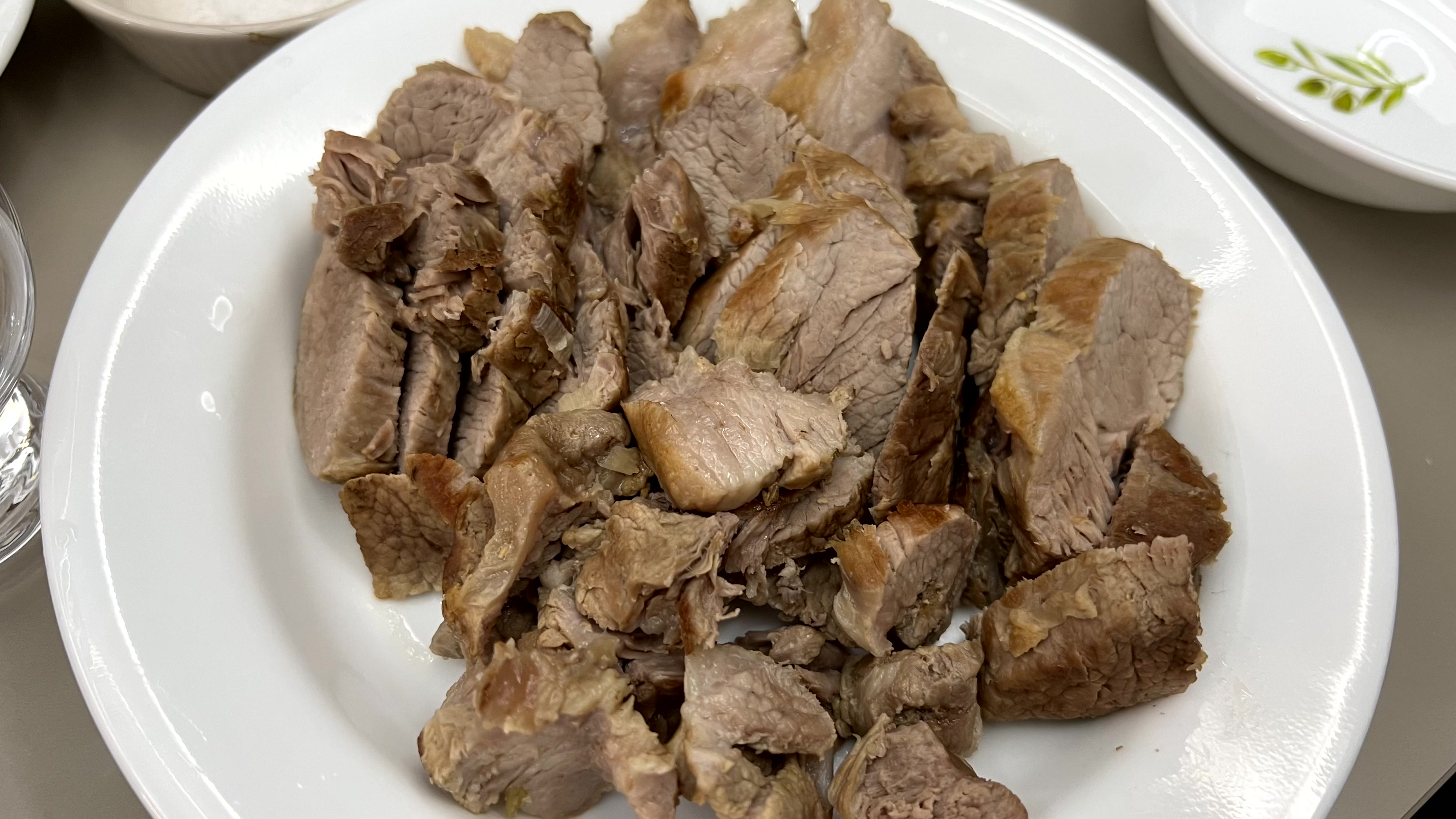 그런데 음식은 맛이 있었는데, 약간의 문제가 있었다. 의자에 붙여놓은 테이프가 벗겨져서 내 츄리닝 바지에 끈끈이가 붙은 것이다.