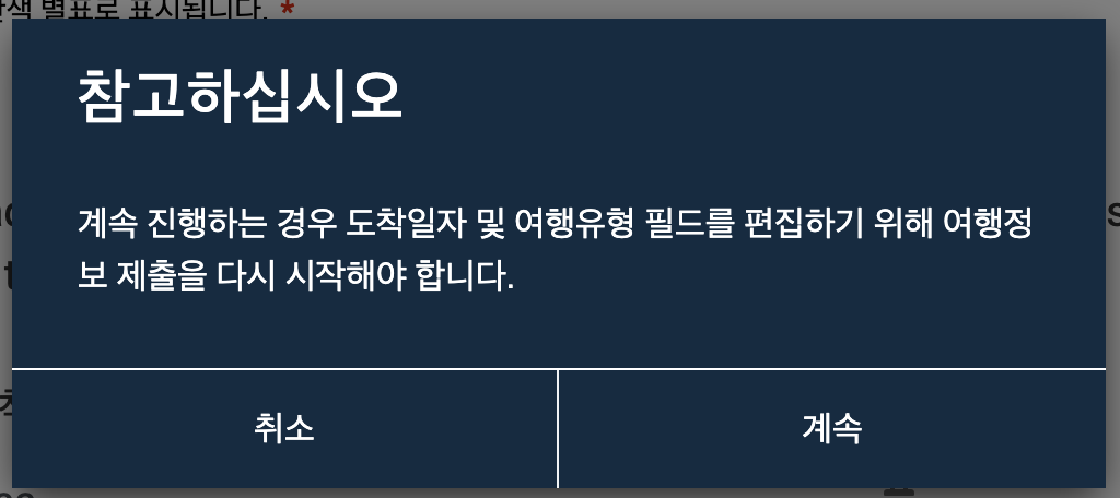 중간에 화면을 넘어갈 때 내용을 한 번 더 확인하라는 팝업이 뜬다.
