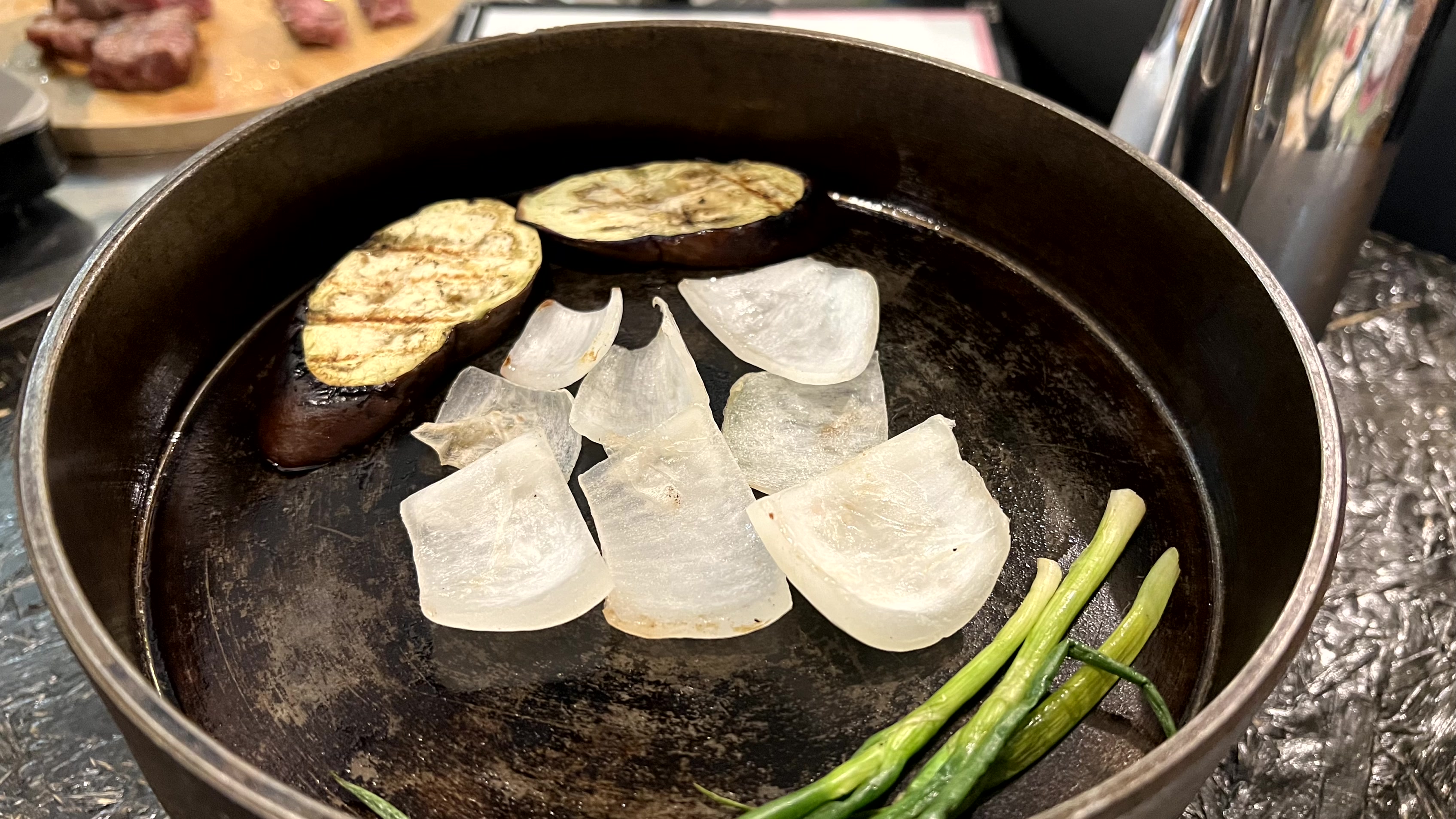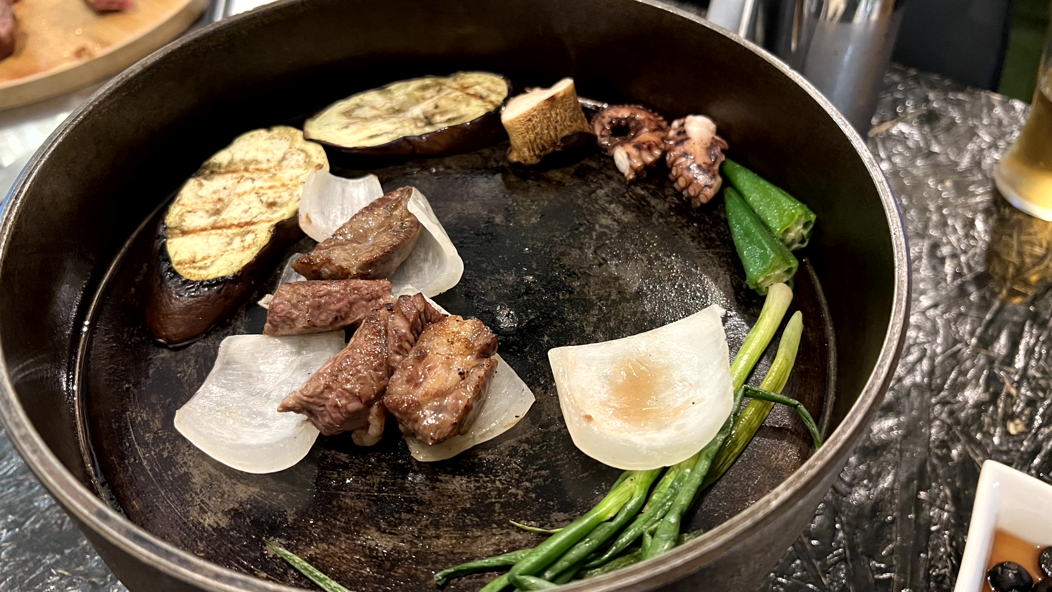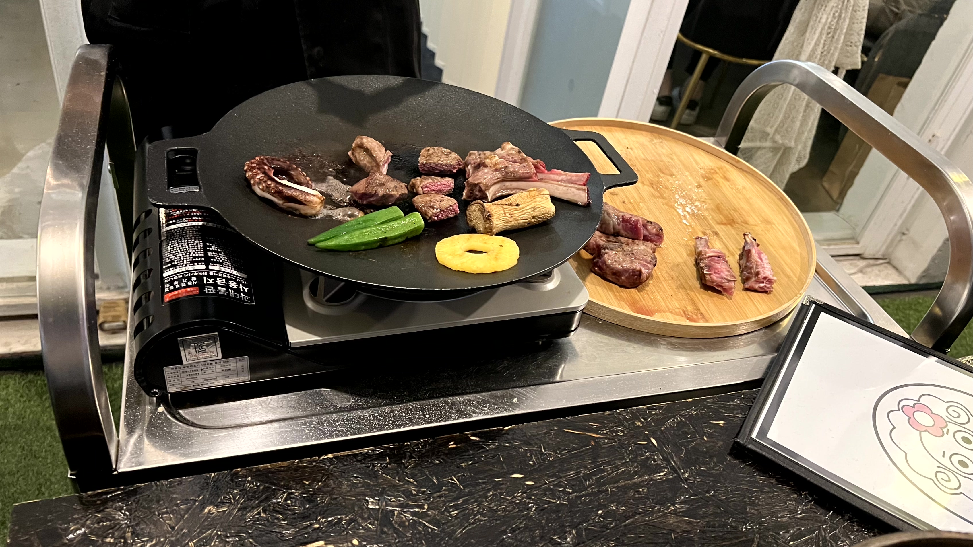 다 구워진 고기는 우리 테이블 위에 있는 팬 위에 옮겨 주신다. 우리는 그걸 맛있게 먹기만 하면 돼... 넘나 편한 것...!
