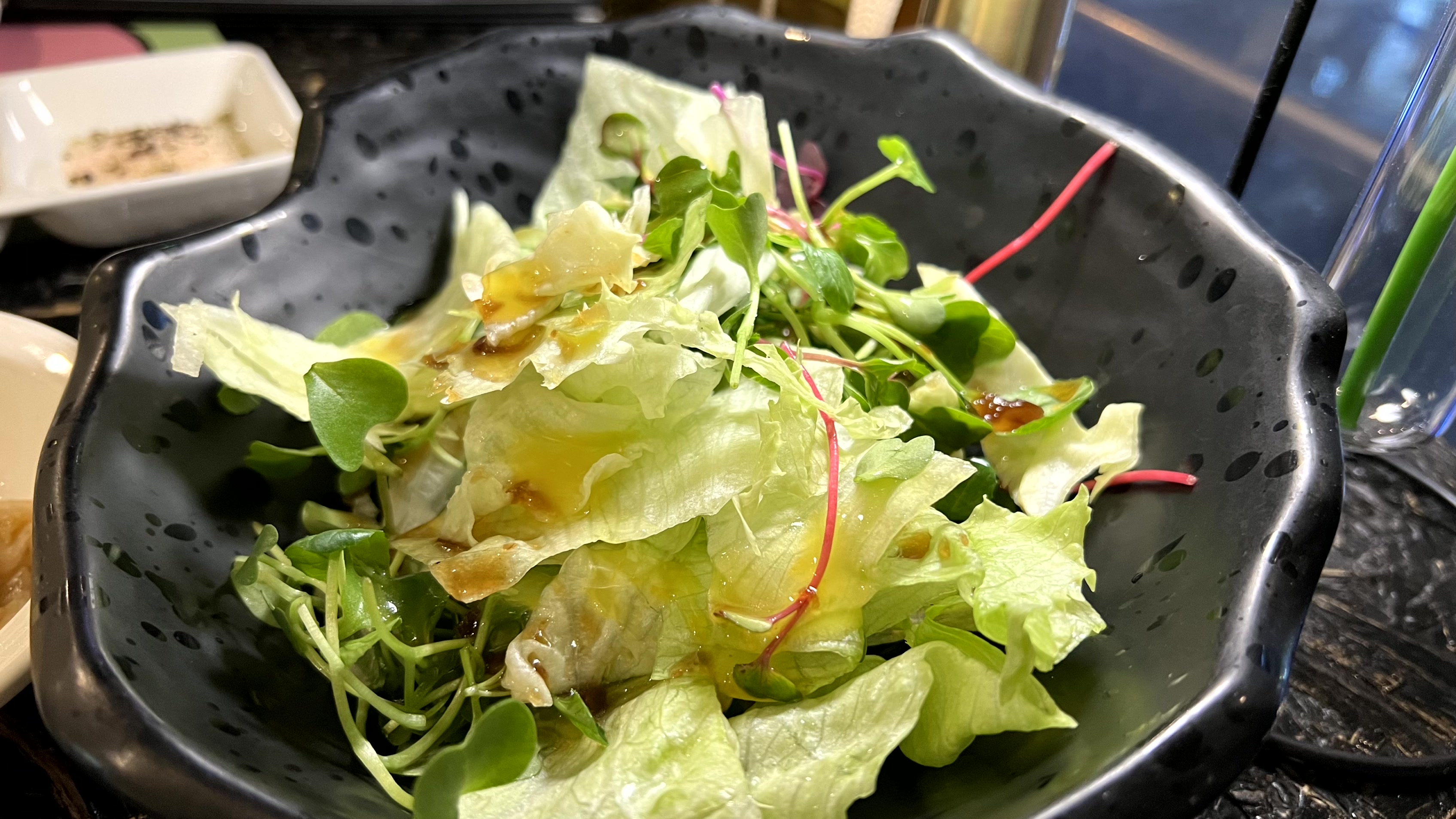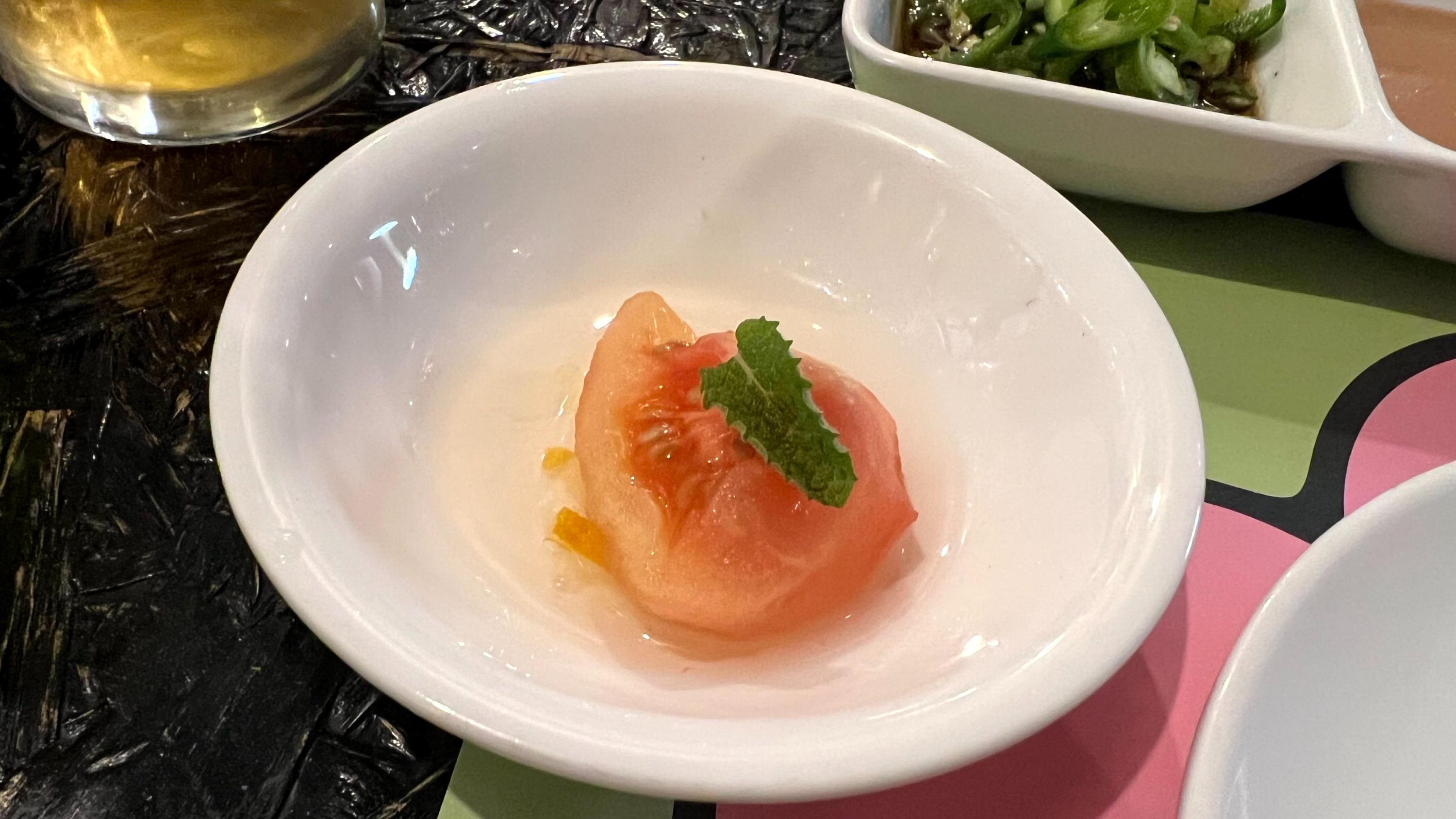 우리가 자리에 앉자 샐러드를 추가로 가져다주셨다. 그리고 고기를 먹기 전에 에피타이저로 토마토 유자를 주셨는데, 숟가락으로 떠 먹으니 새콤 달콤 입맛을 돋구는 데 효과적이었다.