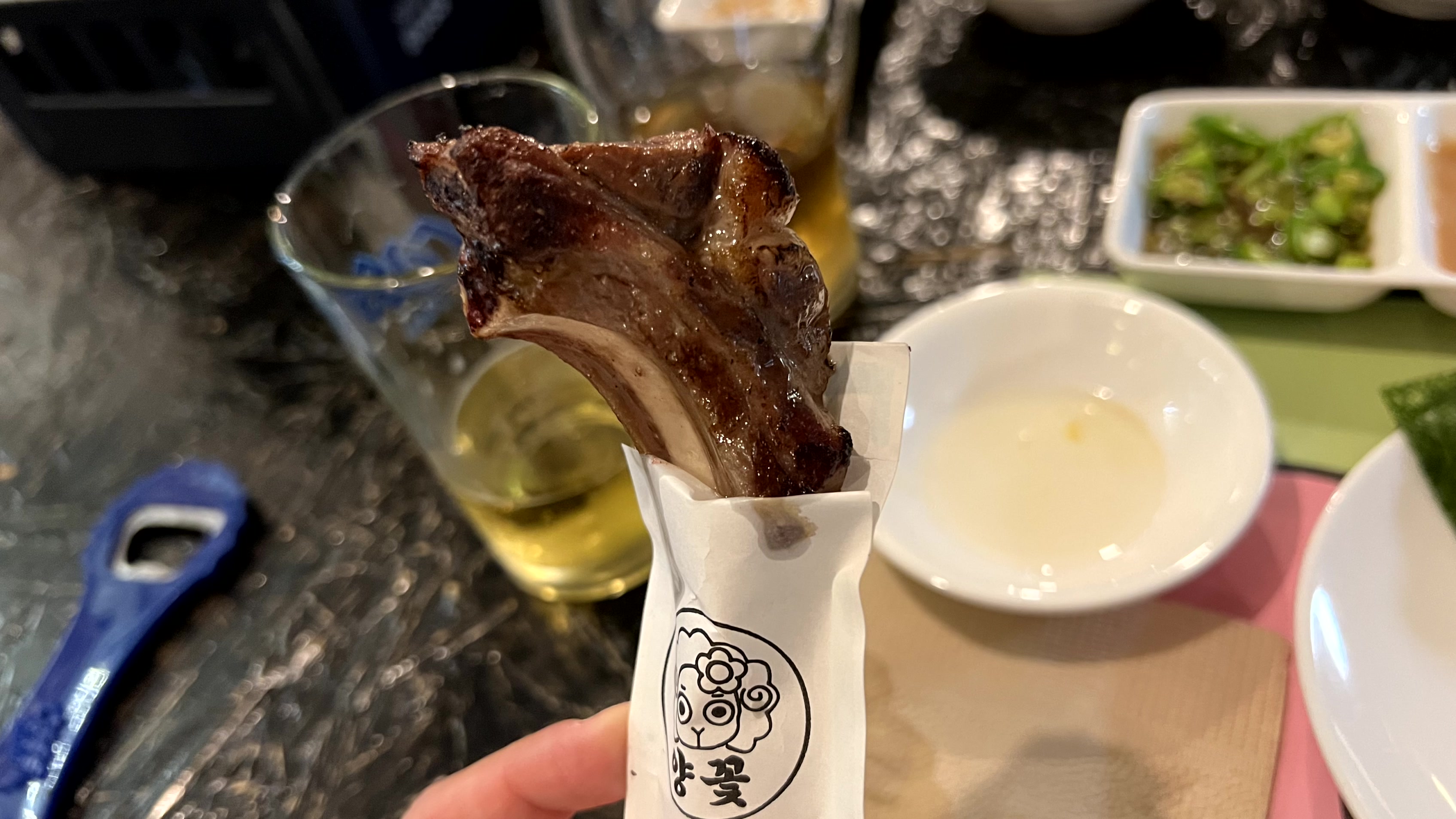 양갈비도 먹기 편하도록 끝부분을 종이에 말아서 챙겨 주신다. (감동)