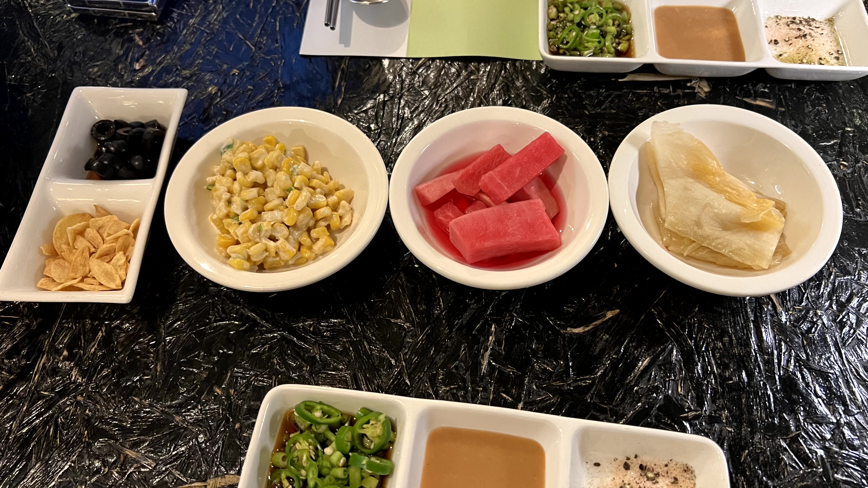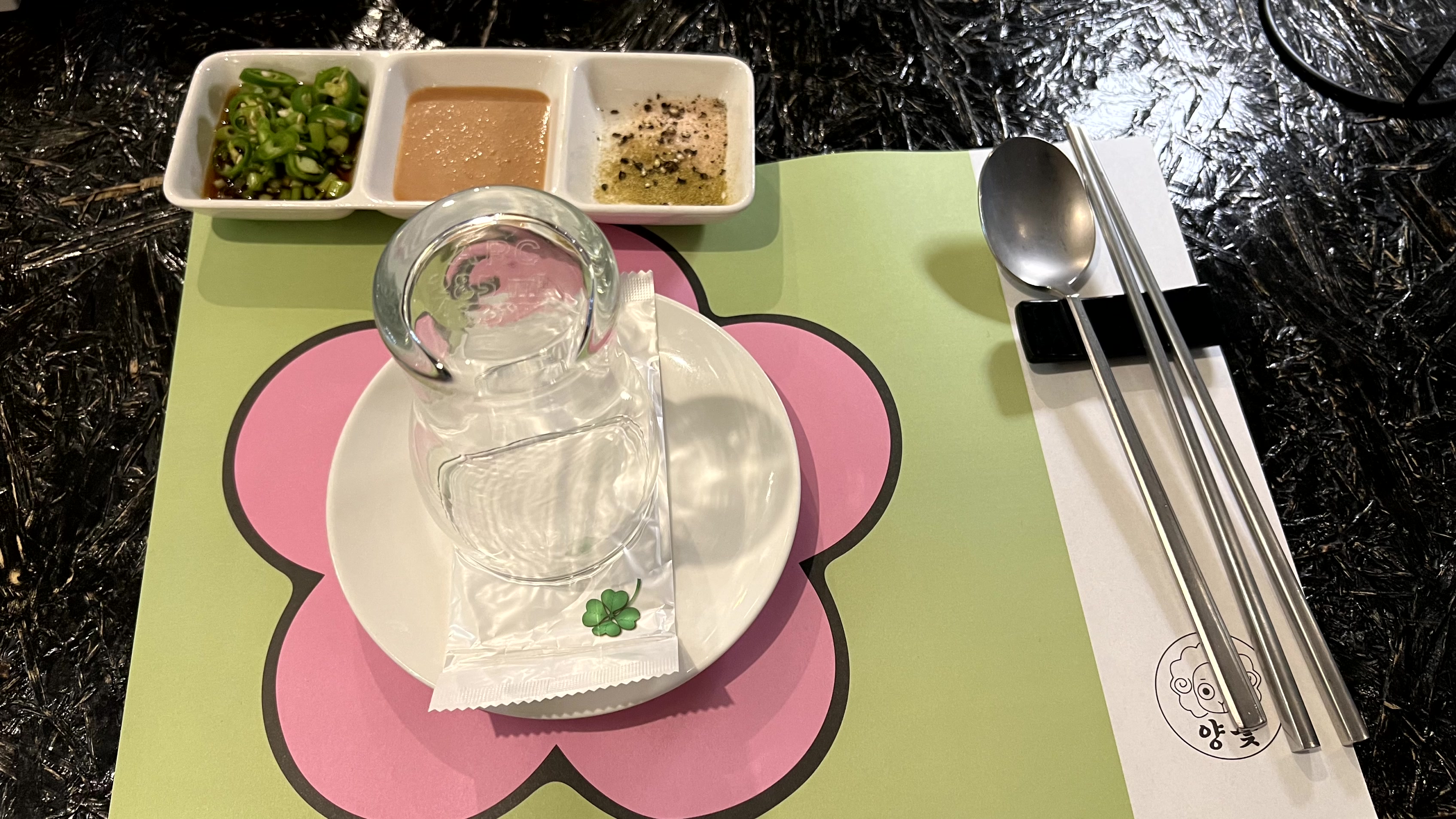 사이드 메뉴 갯수대로 앞접시를 더 가져다 주시는 것도 센스! 한 시간 정도 머무른 것 같은데 정말 배부르고 맛있었던 만족스러운 저녁식사였다. 이렇게 둘이 배터지게 먹으면 12만원 정도... 금액이 저렴한 편은 아니어서 아무때나 방문할 수는 없을 것 같지만, 그래도 오랜만에 지인을 만나거나 회사에서 회식을 한다고 하면, 양갈비 오마카세 전문점 양꽃을 자신있게 추천할 것 같다.