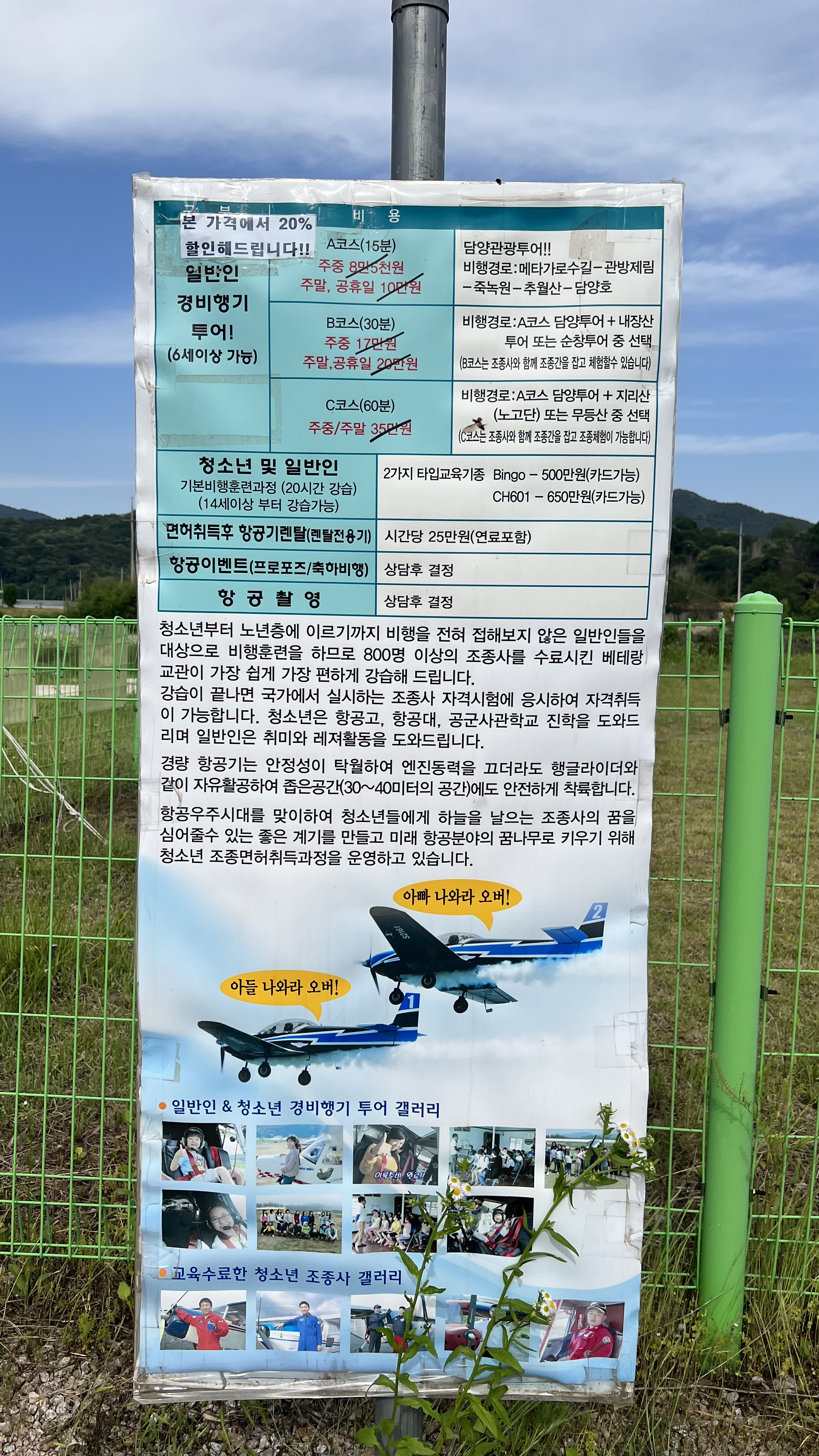 2023.06.04 - [| 국내 | 놀거리 정보/액티비티] - | 담양 | 에어로 마스터 경비행기 투어