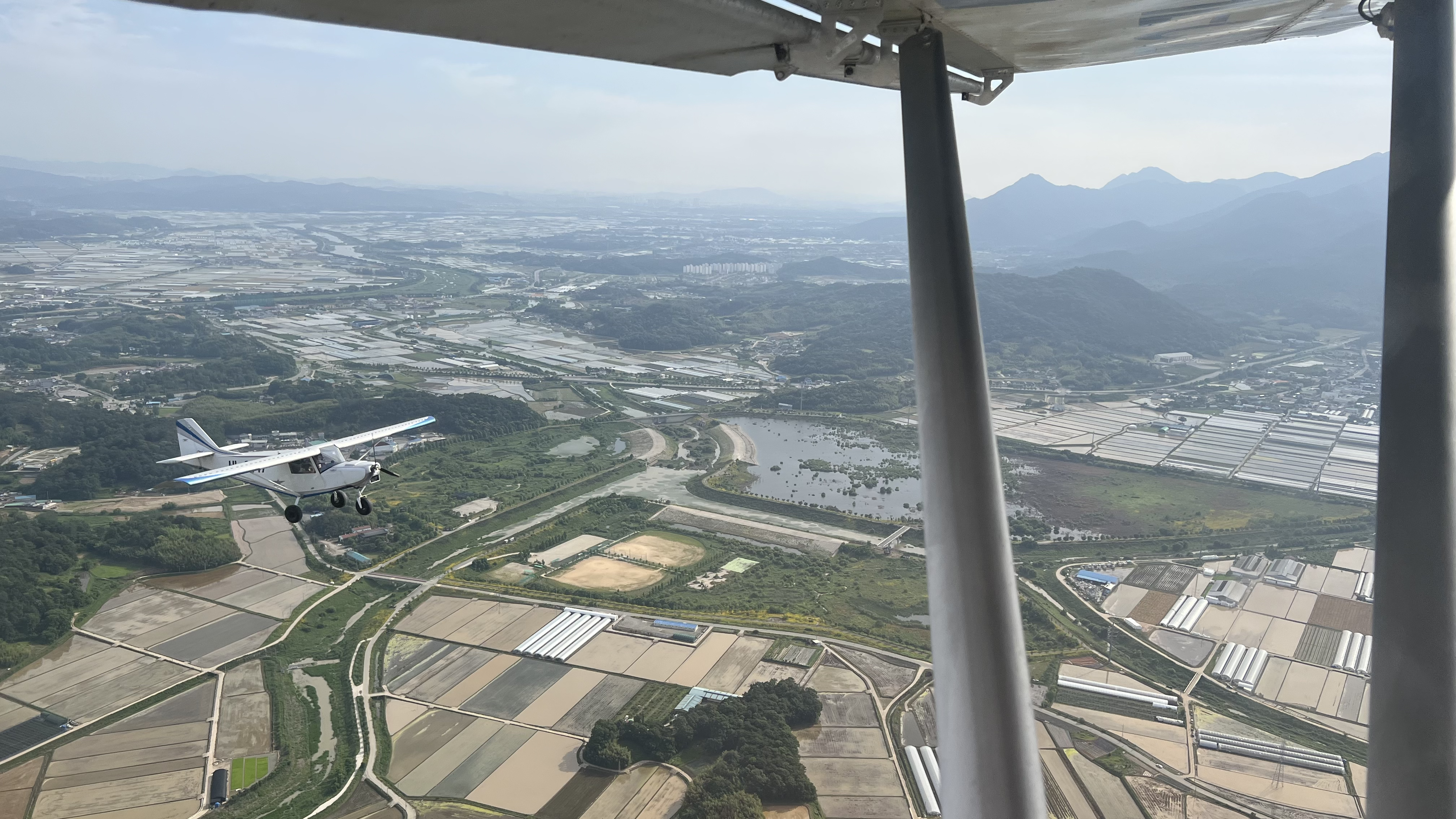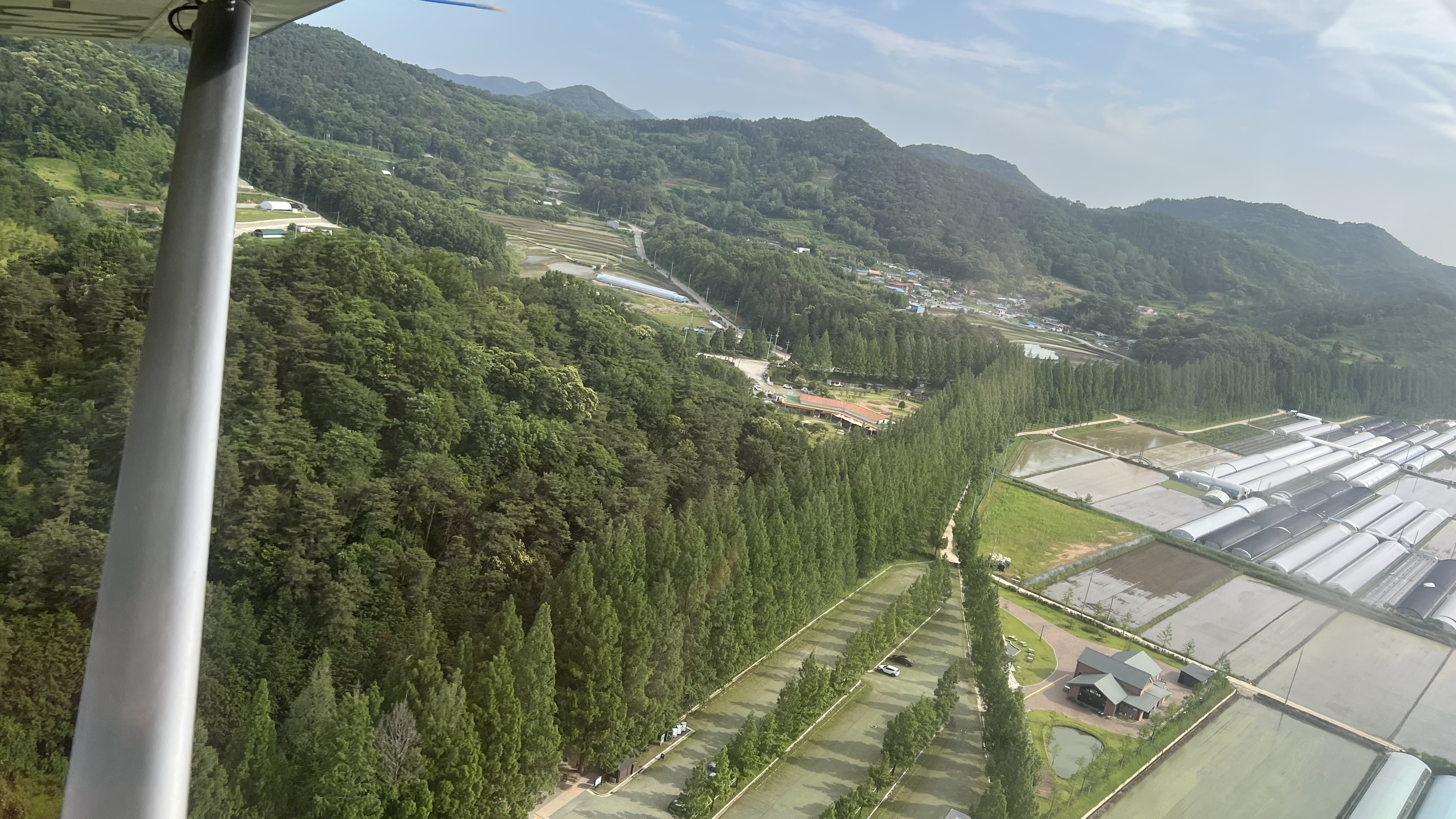 순식간에 뜬 비행기가 하늘로 높게 올라갈수록 아래에 있는 건물과 나무들이 미니어처처럼 작아 보였다. 단양에서 패러글라이딩 하던 순간이 떠올랐다. 우와~ 역시 하늘을 나는 건 언제나 즐겁구나 😎 정말 친절한 교관님께서 담양 이곳저곳을 설명해주셔서 비행하는 내내 신기하고 즐거웠다.