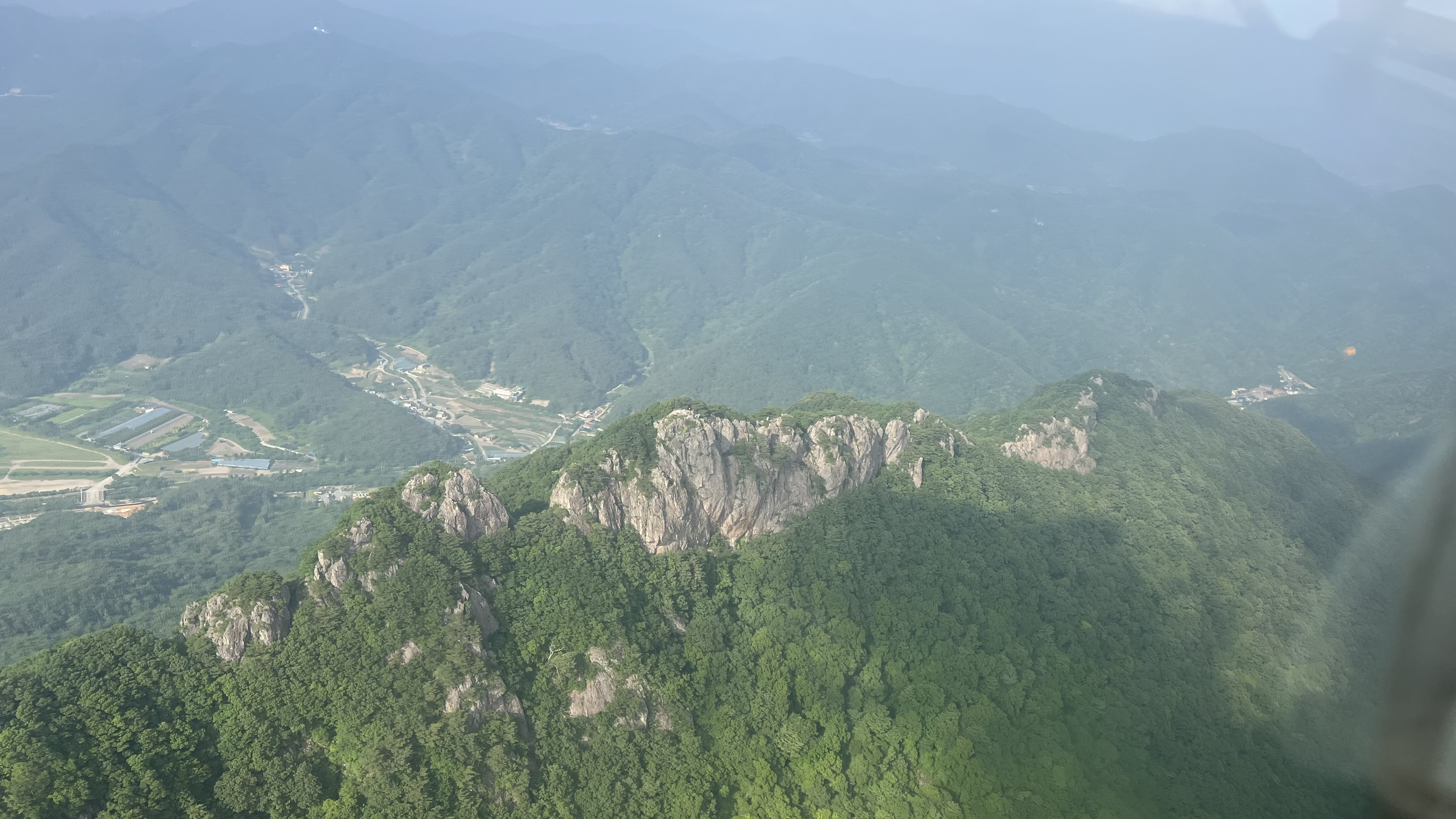 ▼ 내장산의 봉우리 모습이다. 단풍철이 되면 단풍 구경을 하러 온 사람들로 봉우리가 가득 찬다고 한다. 가을에 단풍 진 모습도 아름답고, 겨울에 눈이 쌓인 모습도 절경이라고 한다. 눈이 쌓이면 마치 알프스 산맥을 닮았을 것 같아서 겨울에도 경비행기를 타러 한 번 더 방문해야 겠다고 생각했다.