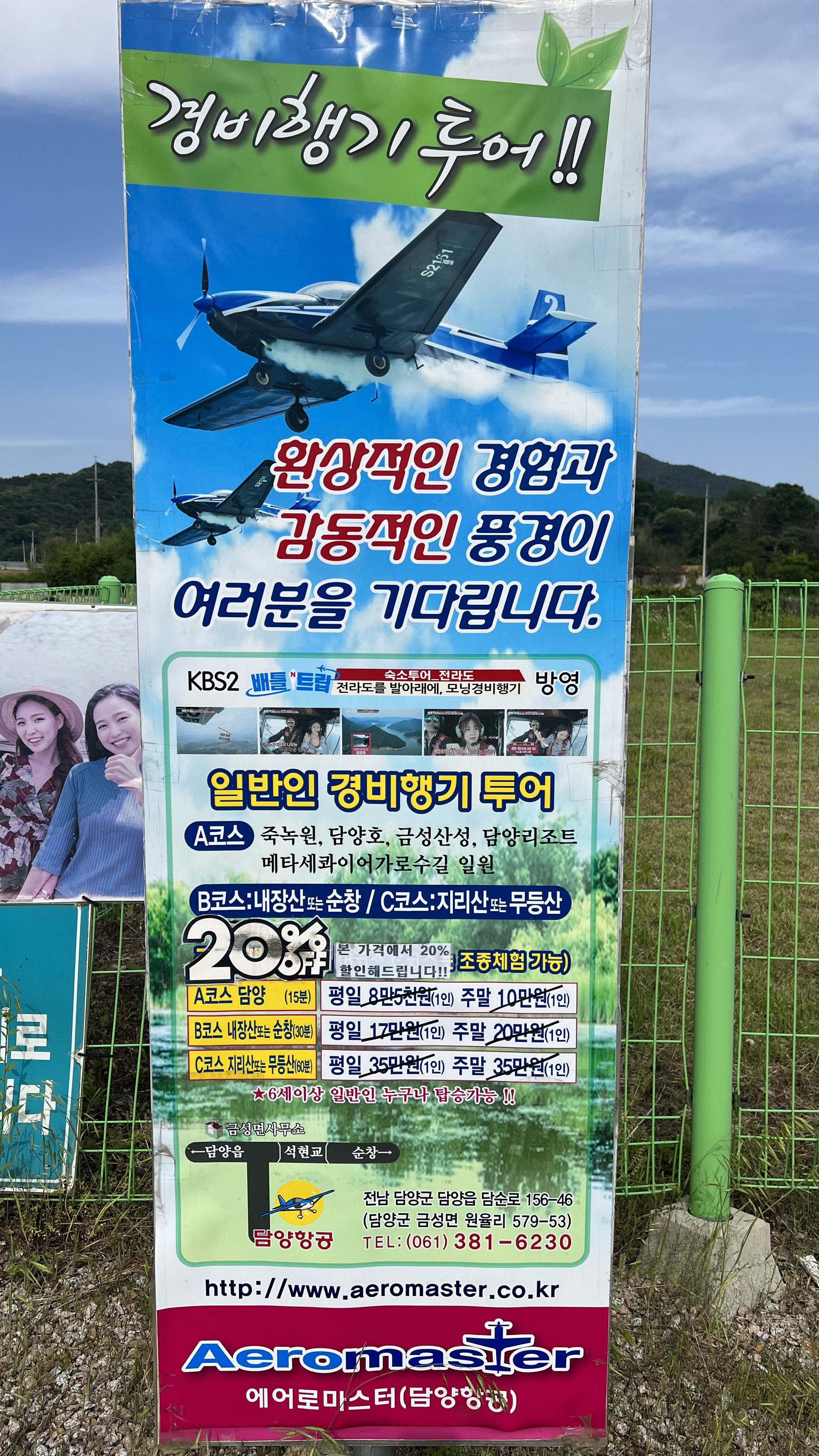 2023.06.04 - [| 국내 | 놀거리 정보/액티비티] - | 담양 | 에어로 마스터 경비행기 투어