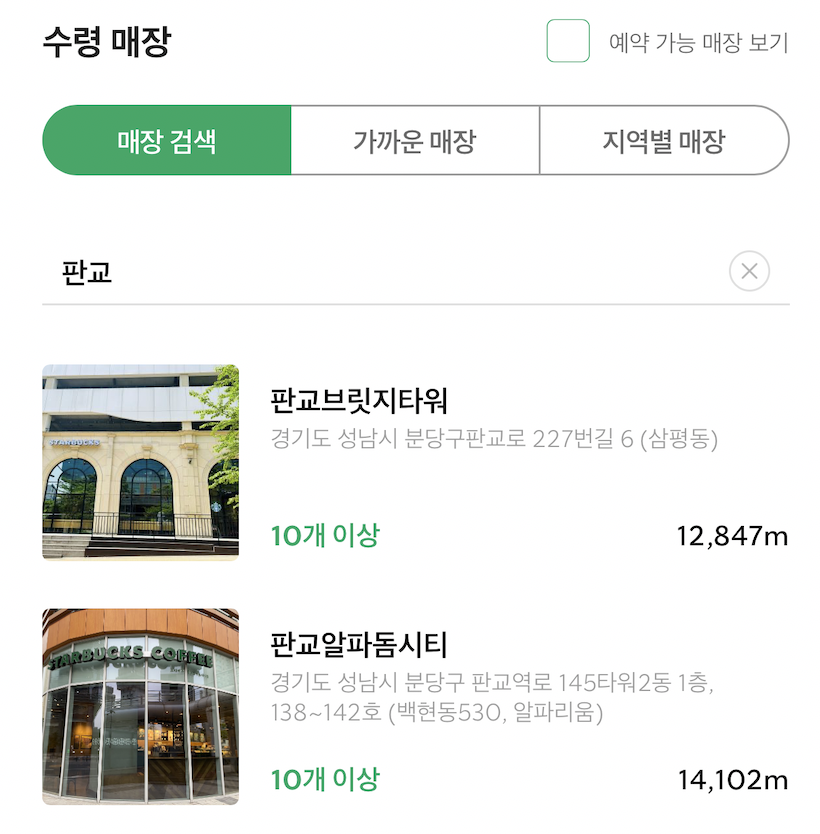 수령 매장은 회사 근처인 판교역 근처 스타벅스를 선택했다. 최종 예약 내용을 확인한 후에 완료 버튼을 누르면 끝! 지금은 수령기간이 아니라서 바코드 확인이 안되는데, 수령 기간이 되면 바코드가 활성화된다고 한다. 바코드만 확인되면 증정품 대리 수령도 가능하다고 하니 편리한 것 같다.