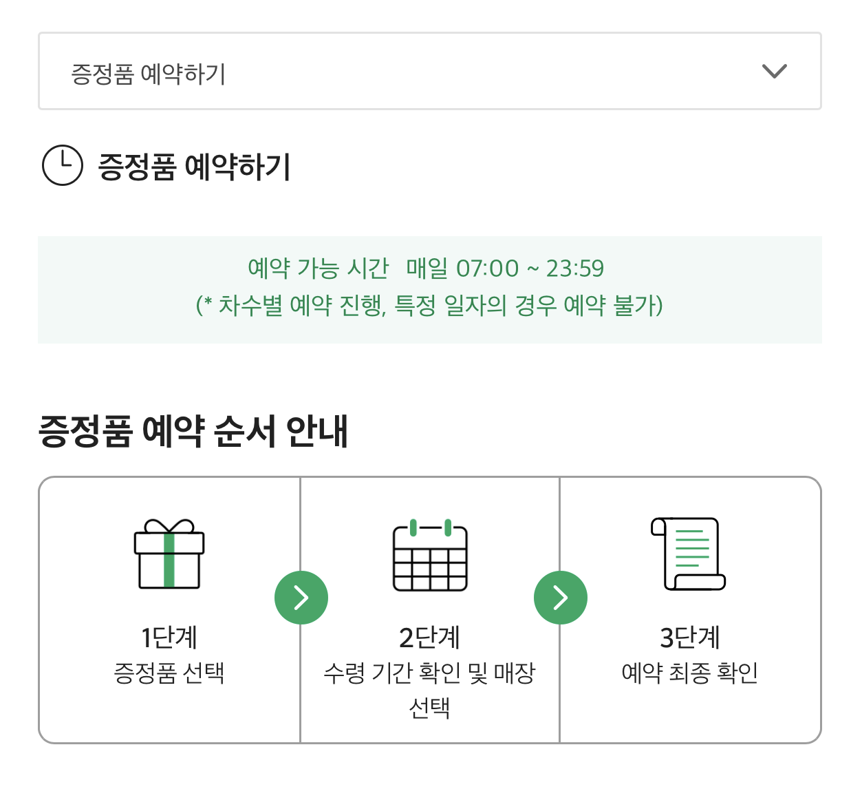 증정품을 예약하는 방법은 3단계로 이루어진다.