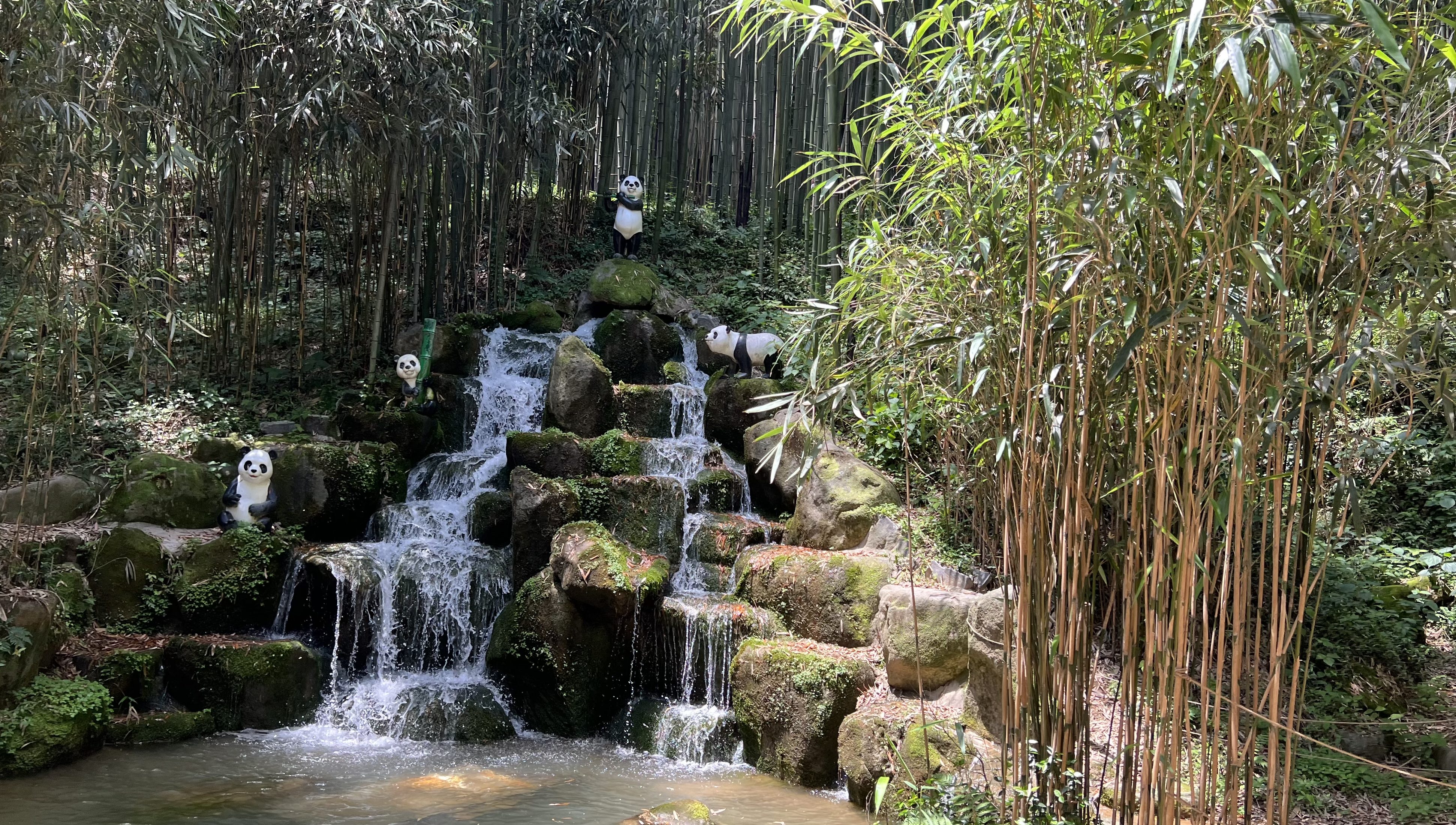 걷다가 중간에서 작은 계곡? 폭포?를 발견했다. 물이 떨어지는 것을 보고 있으니 시원한 기분이 들었다. 함께 있는 팬더 모형들도 귀여워 사람들이 이 곳에서 기념 사진을 많이 찍었다. 우리도 따라서 찍었다-_-v
