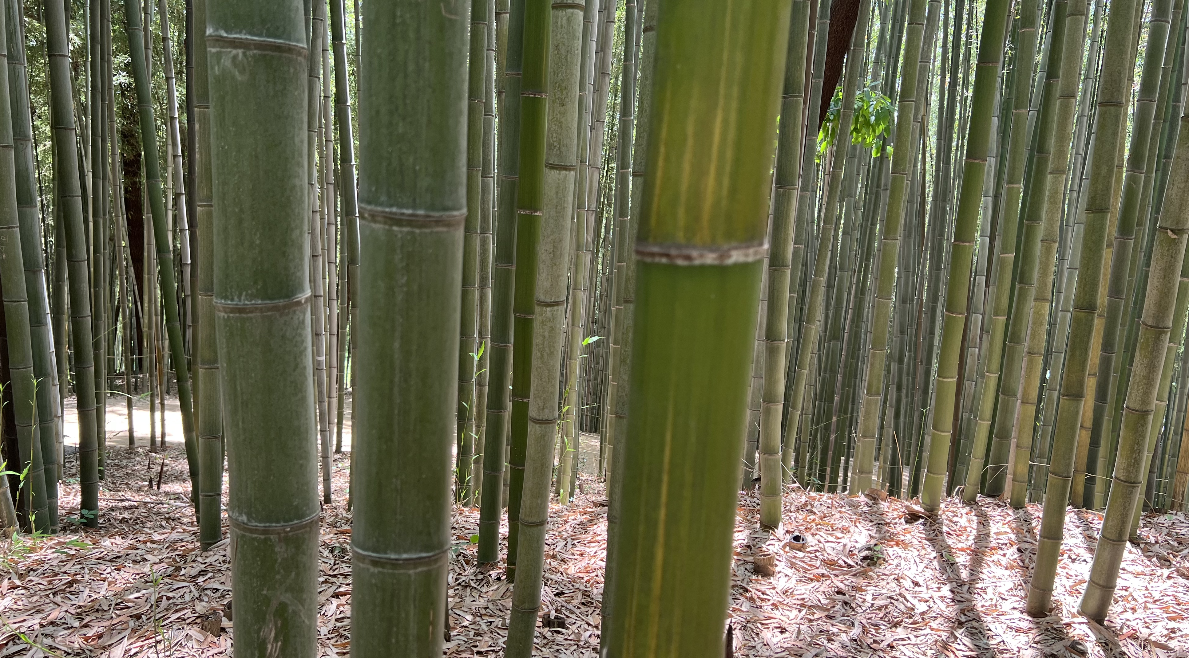 대나무숲 안과 밖의 온도는 4~7도 정도 차이가 난다고 한다. 그런데도 날이 많이 더워서, 경사면을 걸으니 땀이 났다. 비가 오는 것보다는 백배, 천배 나은 상황이지만 그래도... 더운 건 힘들다...ㅜㅜ