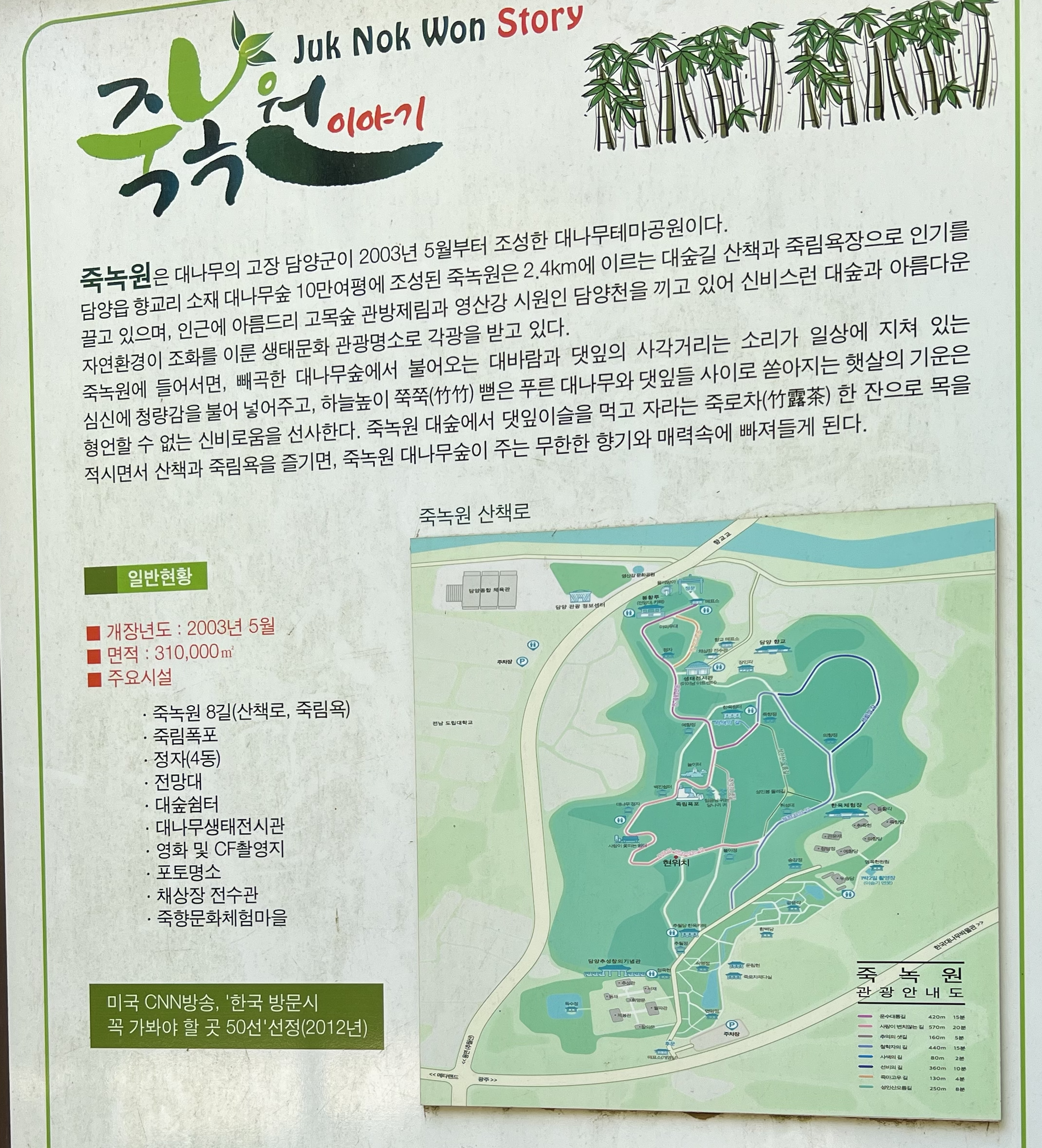 2023.06.05 - [| 국내 | 놀거리 정보/관광 명소] - | 담양 | 죽녹원 현황, 입장요금, 산책코스 소개(+죽림욕 효능)