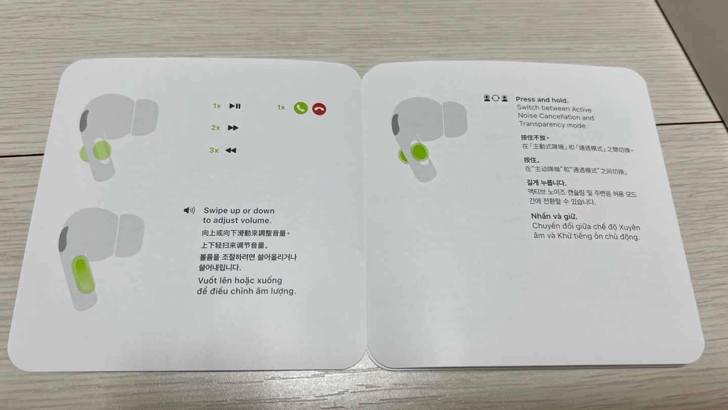 나는 에어팟 프로가 처음이라서 가이드북을 꼼꼼히 읽어보며 사용법을 익혔다.