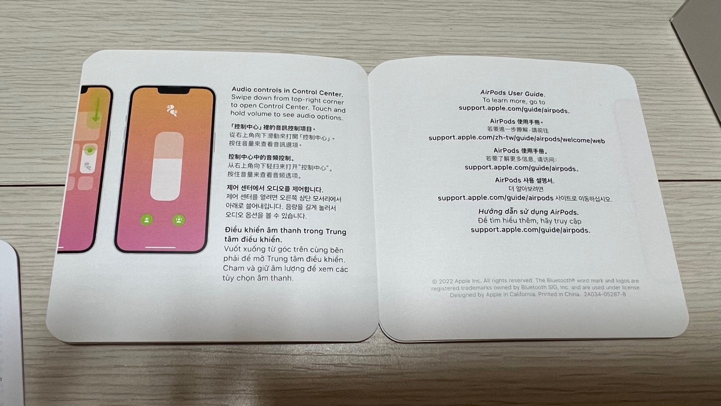 에어팟 프로 박스를 열면 여러 나라 언어로 이루어진 가이드북이 들어있다.