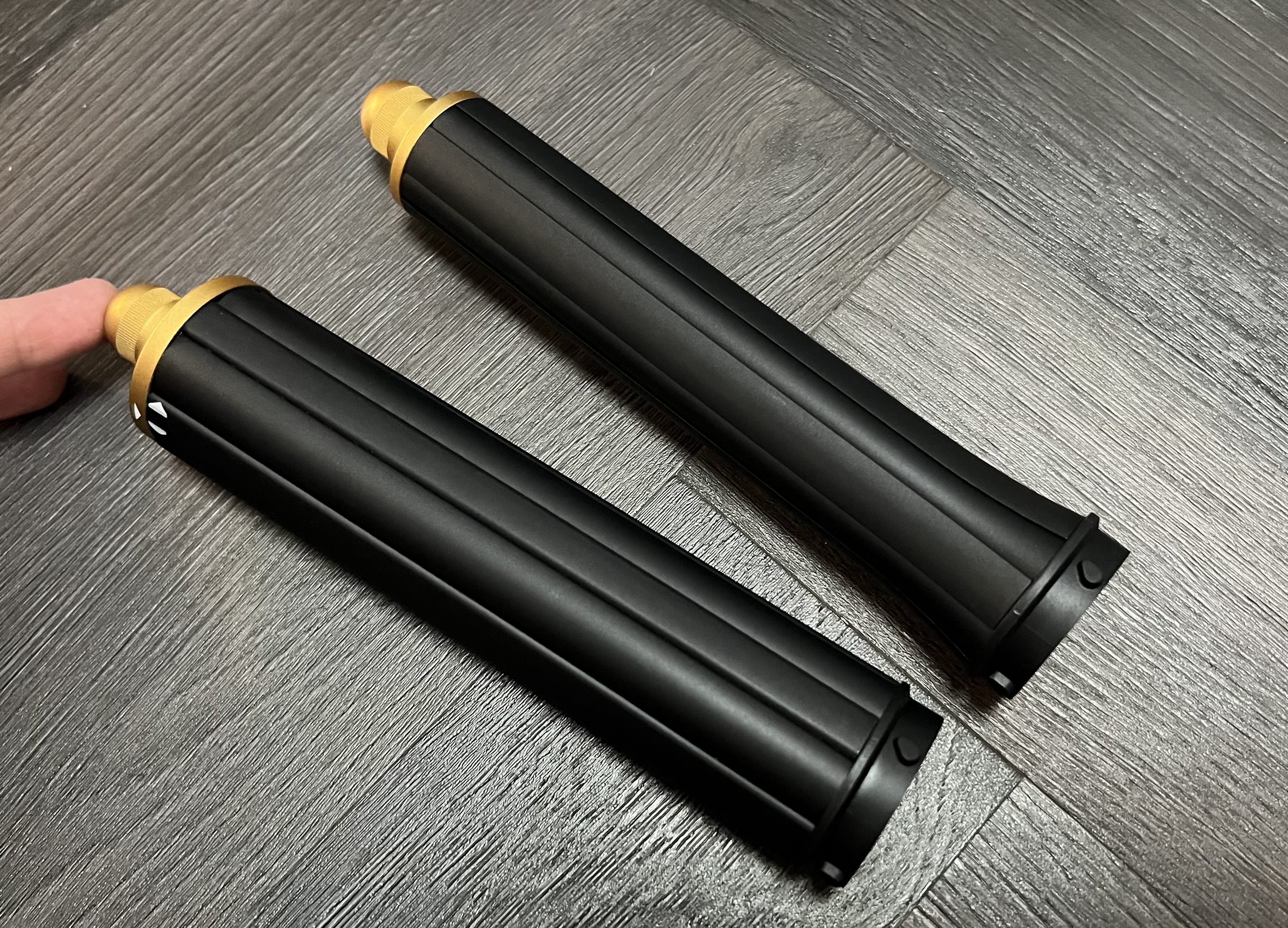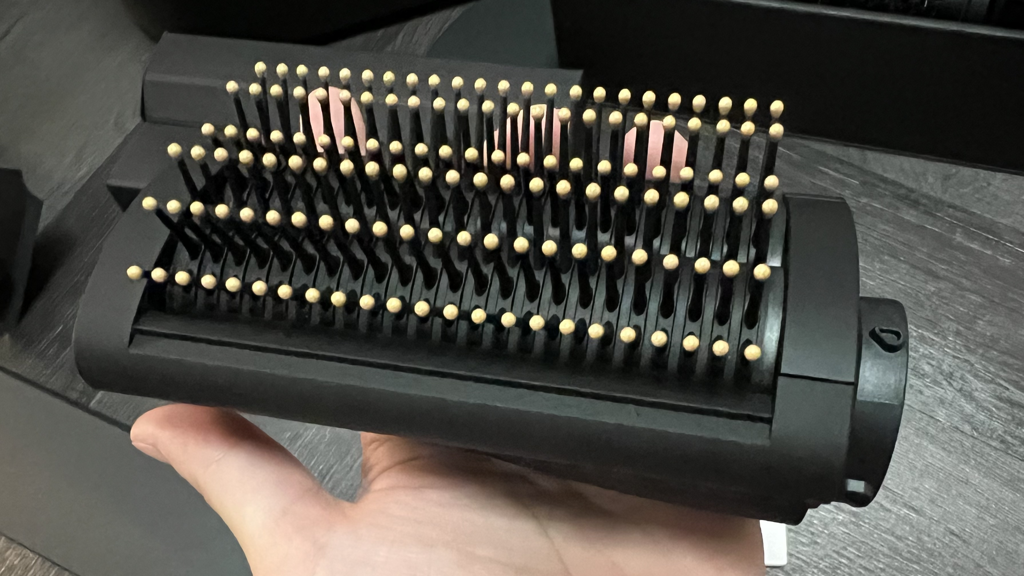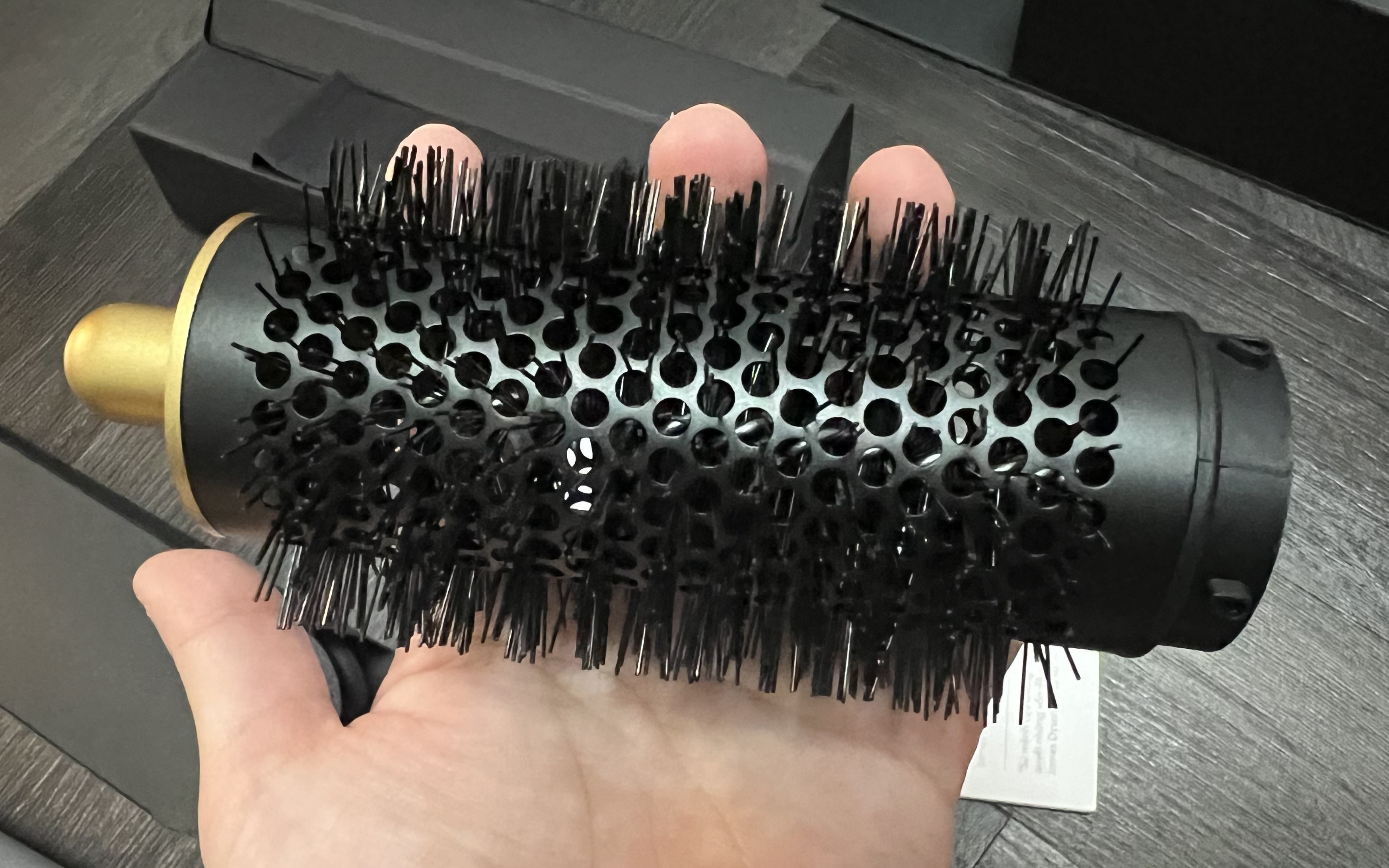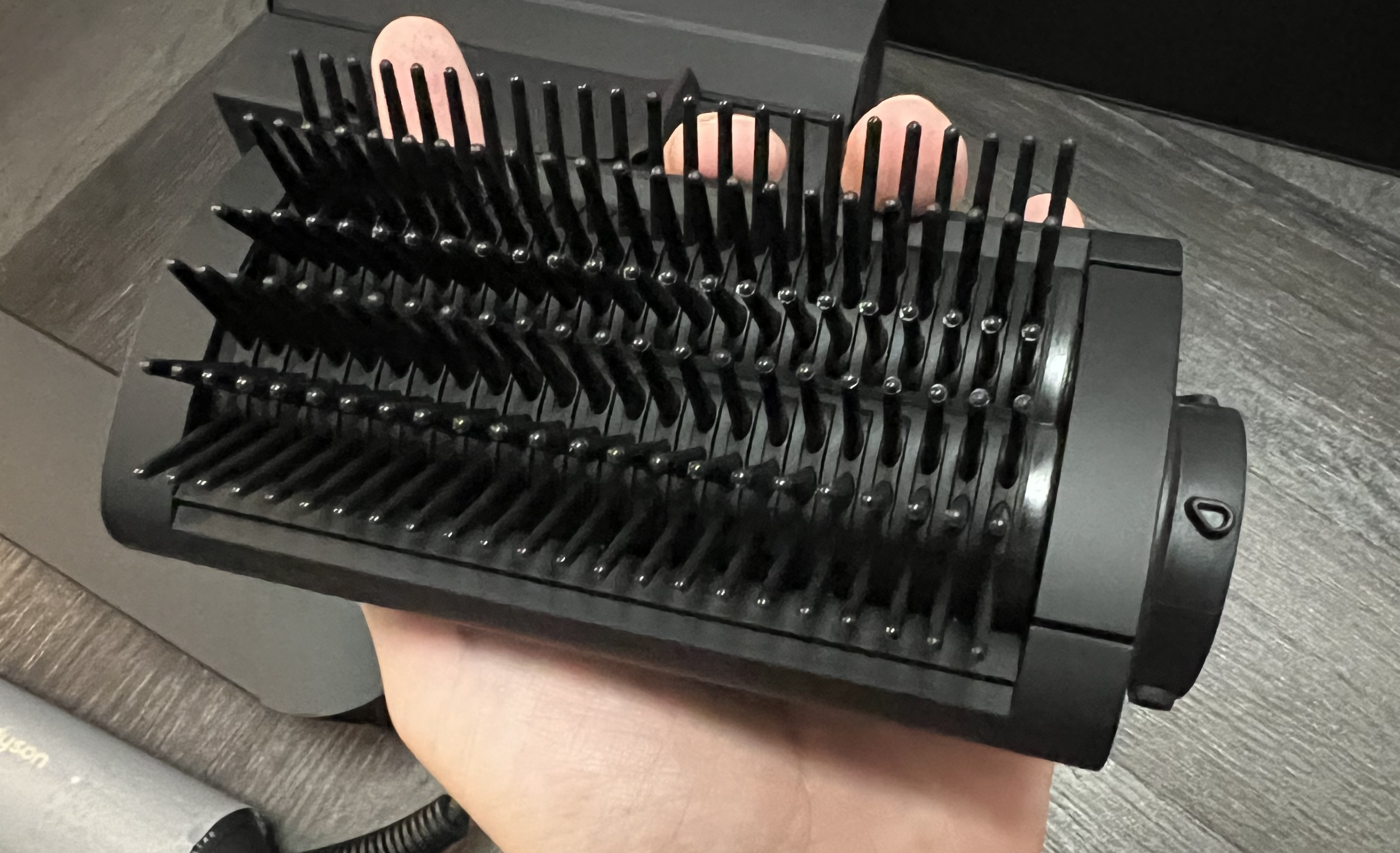먼저 다이슨 에어랩의 브러시 두 종류가 들어 있는데 각각 소프트 스무딩 브러시(왼쪽), 하드 스무딩 브러시(오른쪽)이다. 본인의 헤어 상태에 따라 적절한 것을 골라서 사용하면 된다. 브러시는 매끄러운 스트레이트 스타일을 연출하고 싶을 때 쓴다.